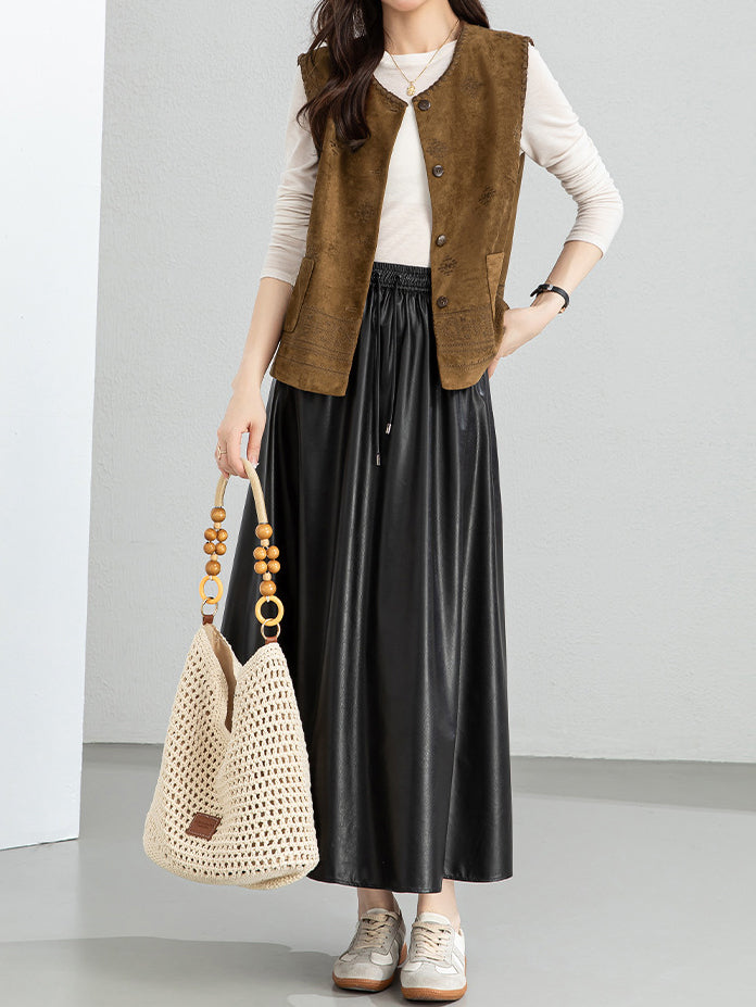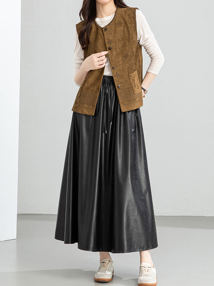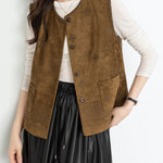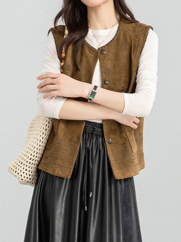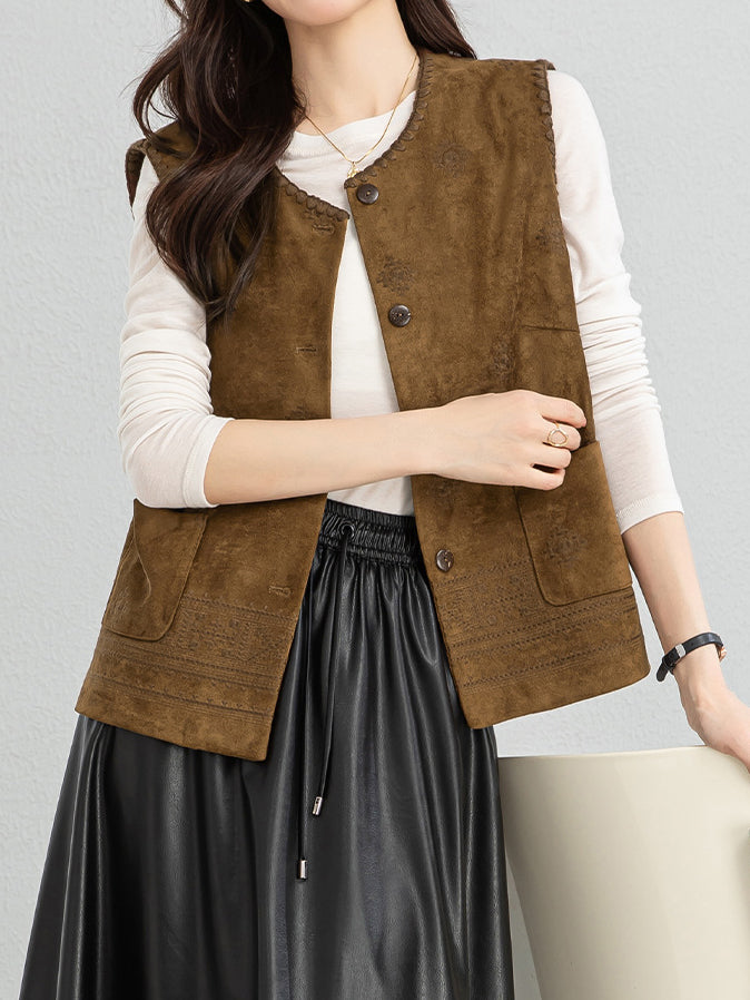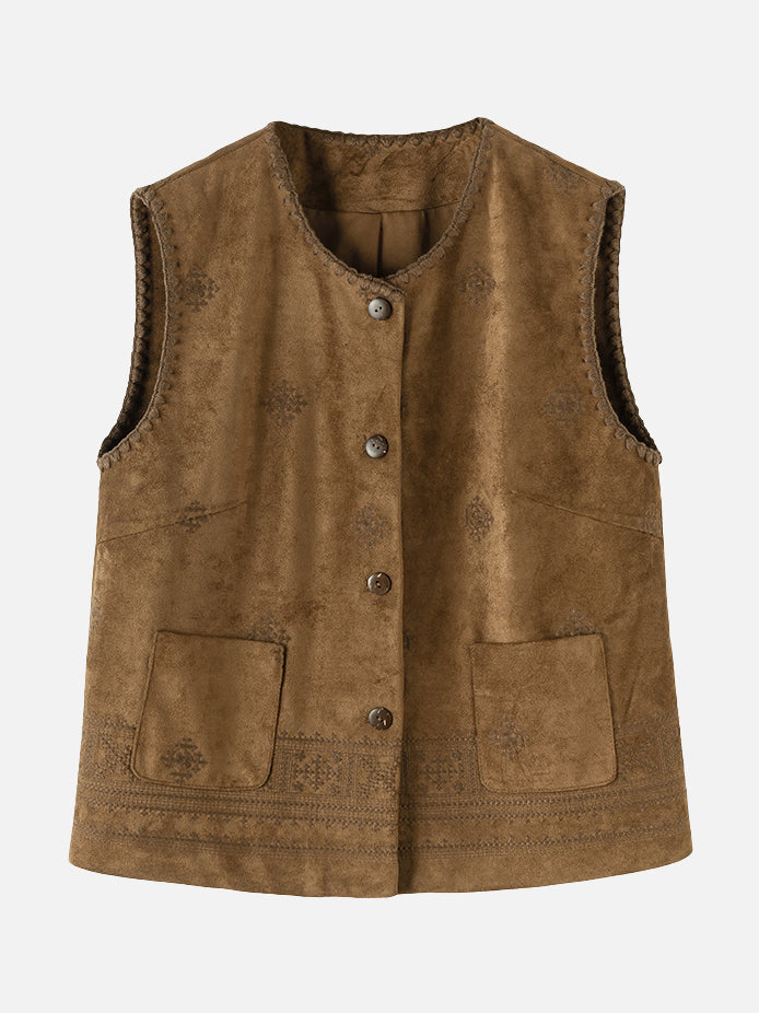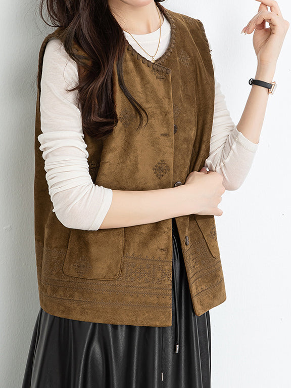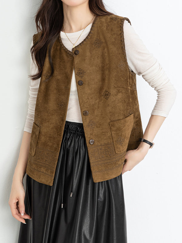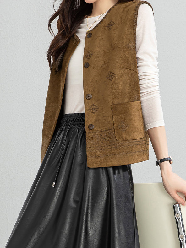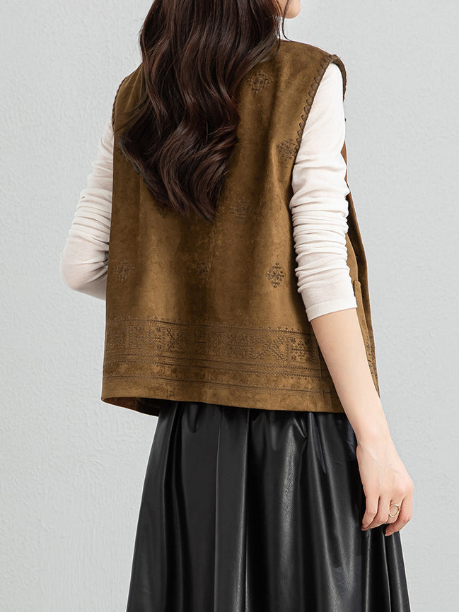 Ethnic pattern suede gilet (suitable for matching outfits)