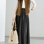 Eco-leather long flared skirt (suitable for set-ups)