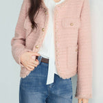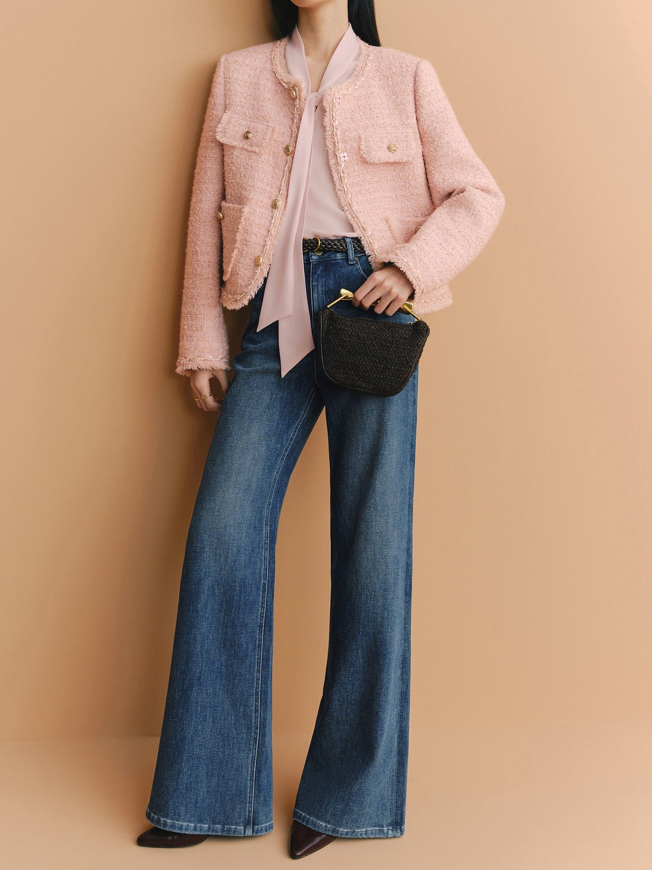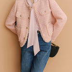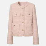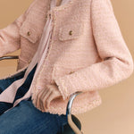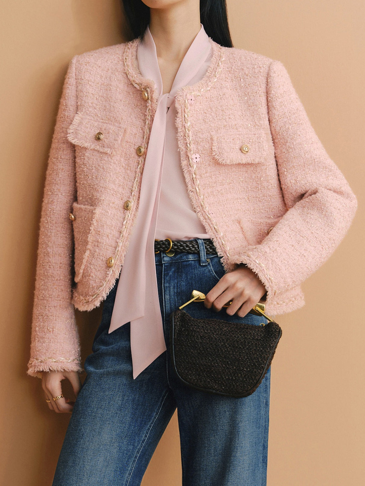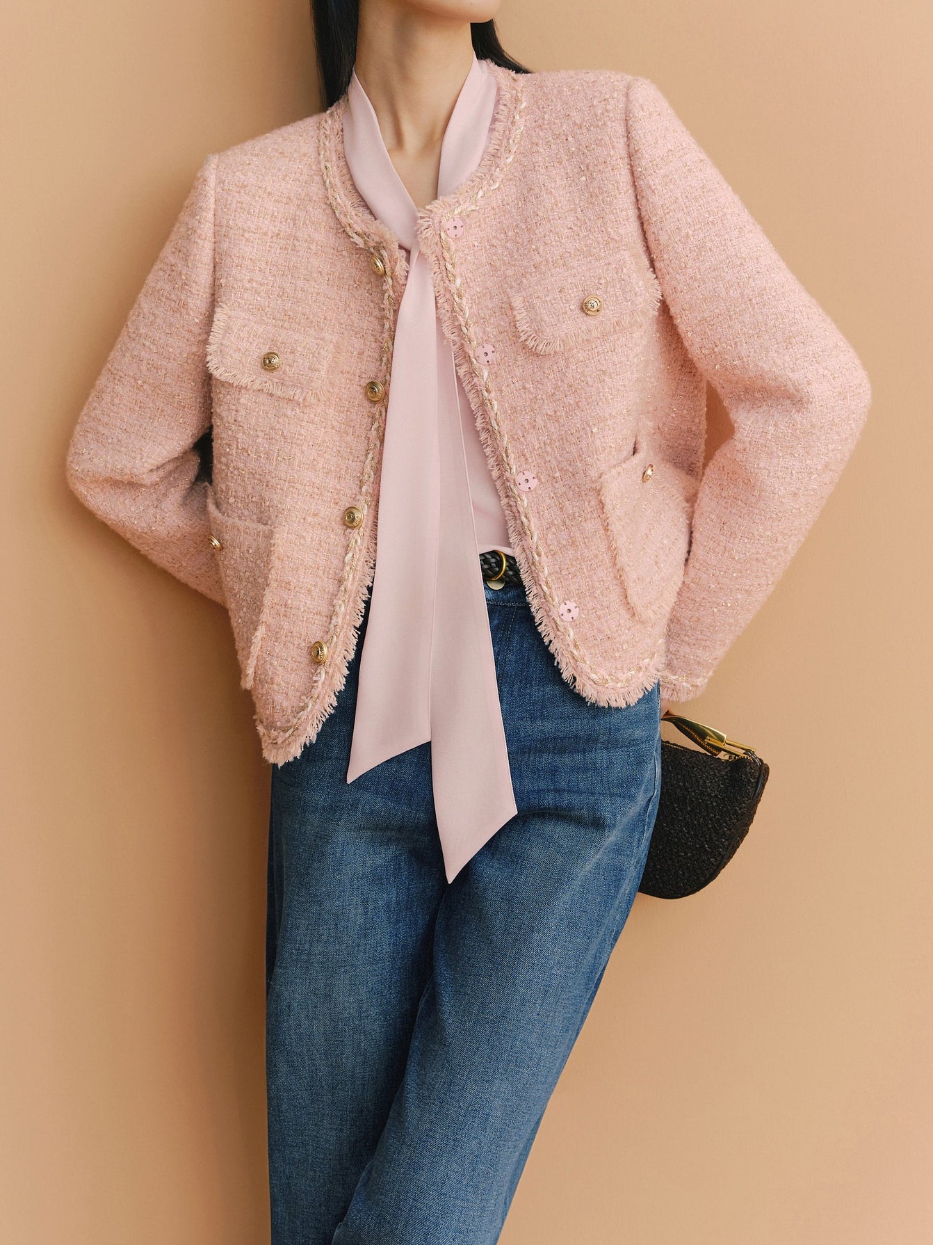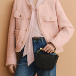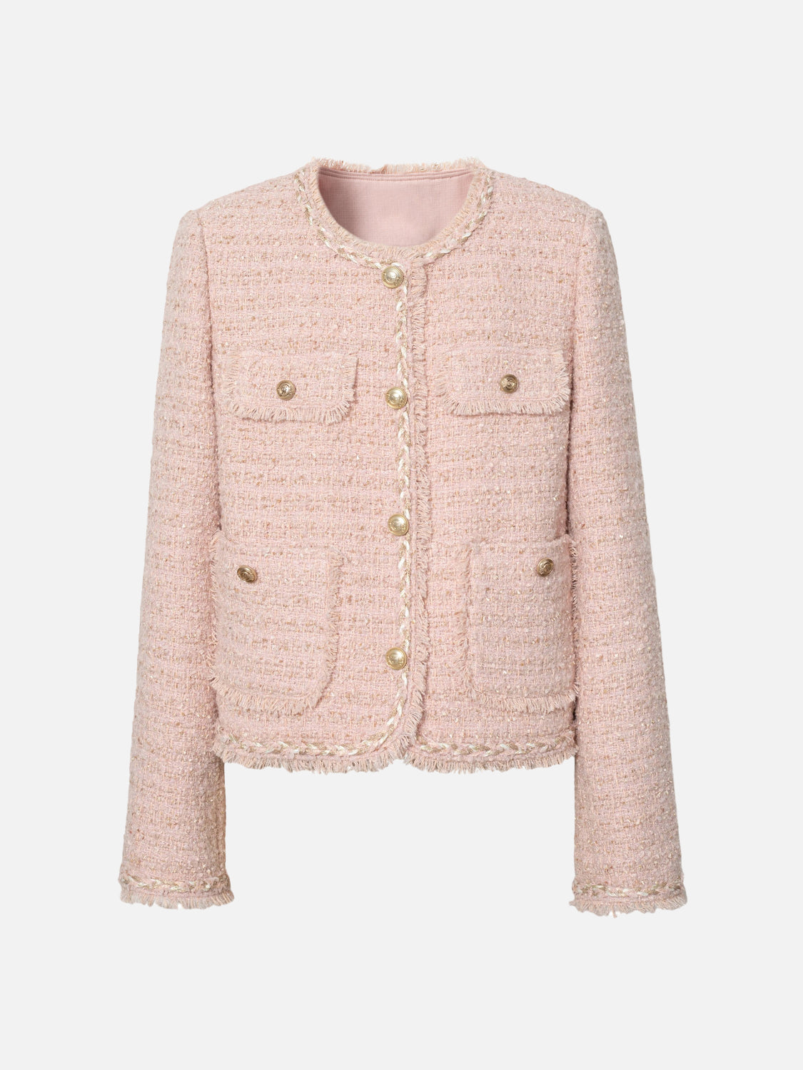 華やかさを演出してくれる、ラメ入りのツイード生地を使用しております。