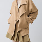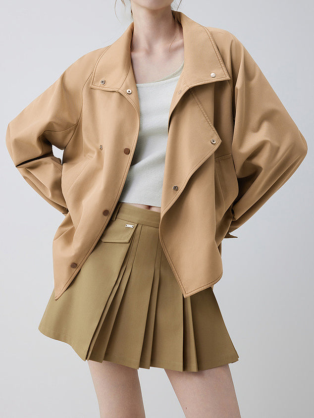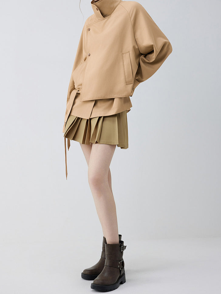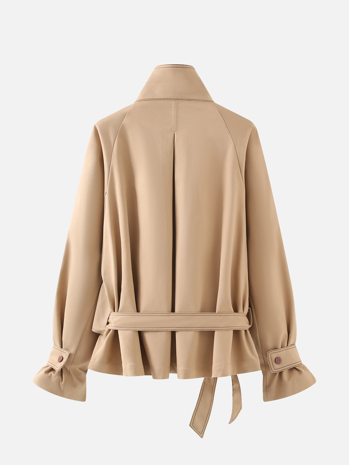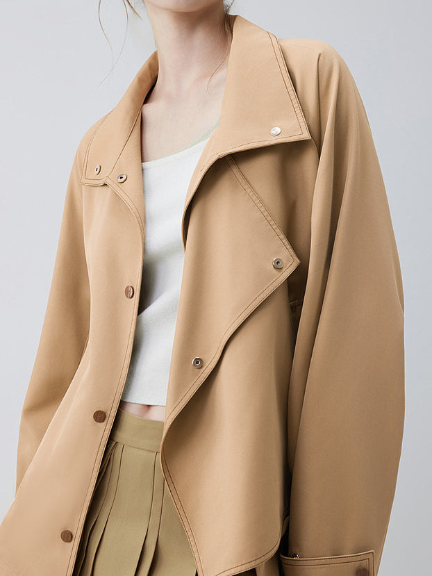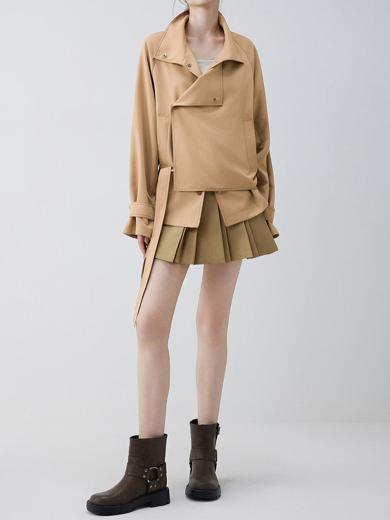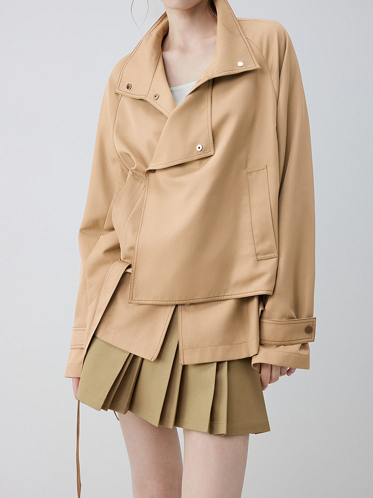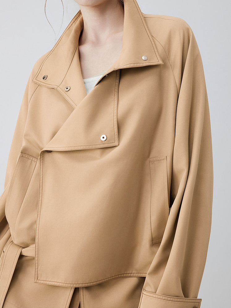 Wear it open in front or just around the neck for a clean, trench-like collar.