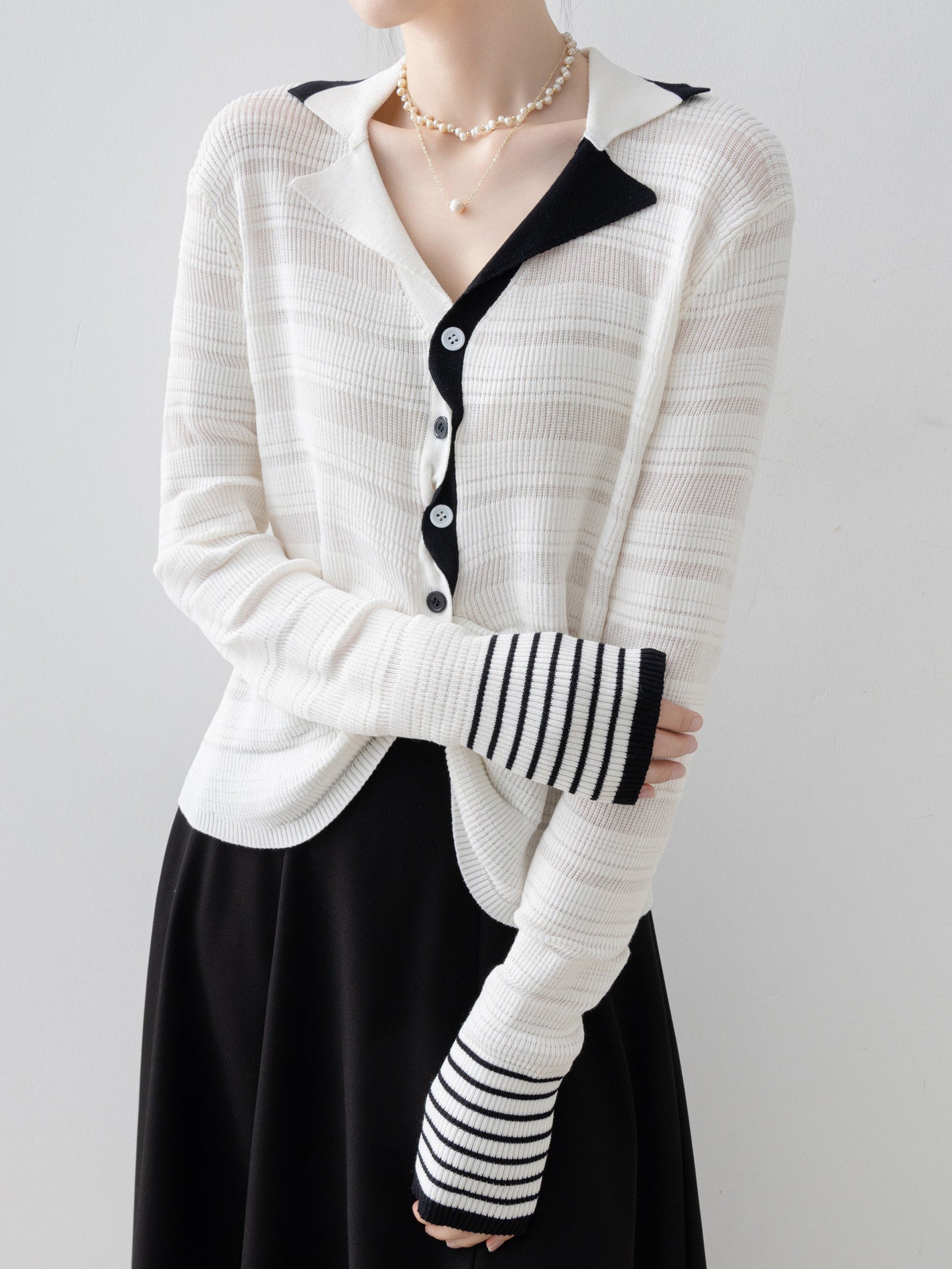 V-neck fitted knit with color-coordinated scarf (3 colors)