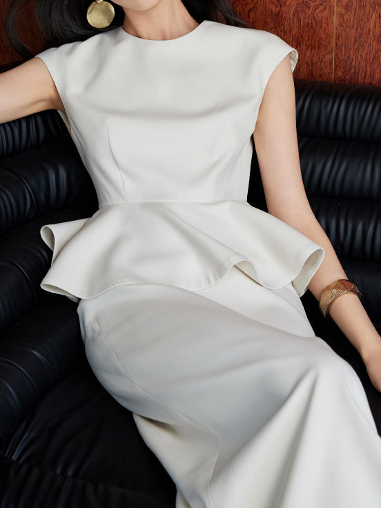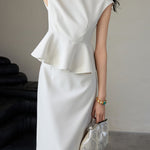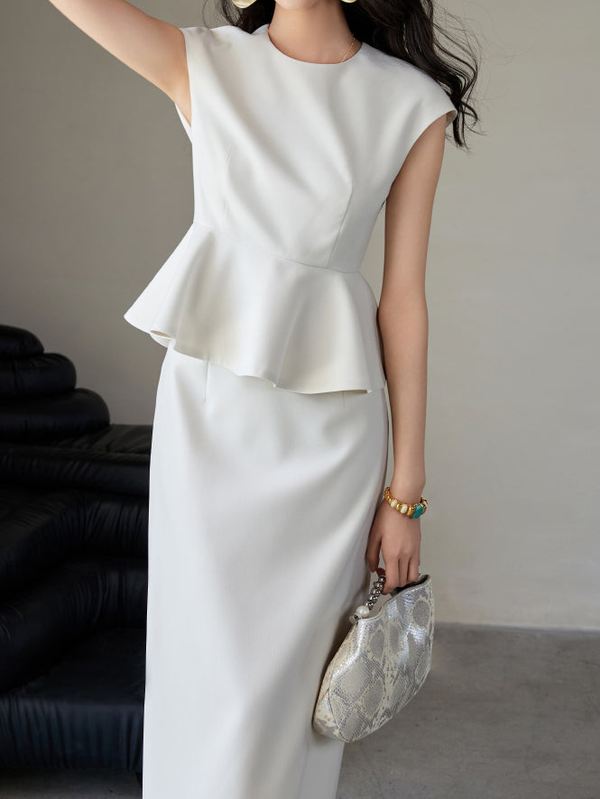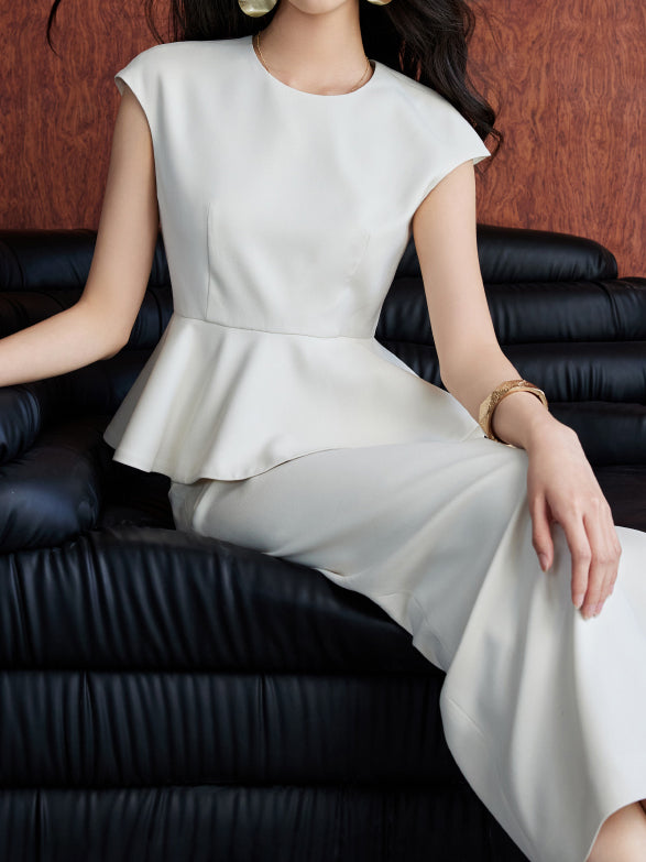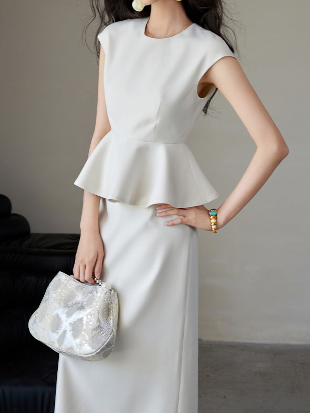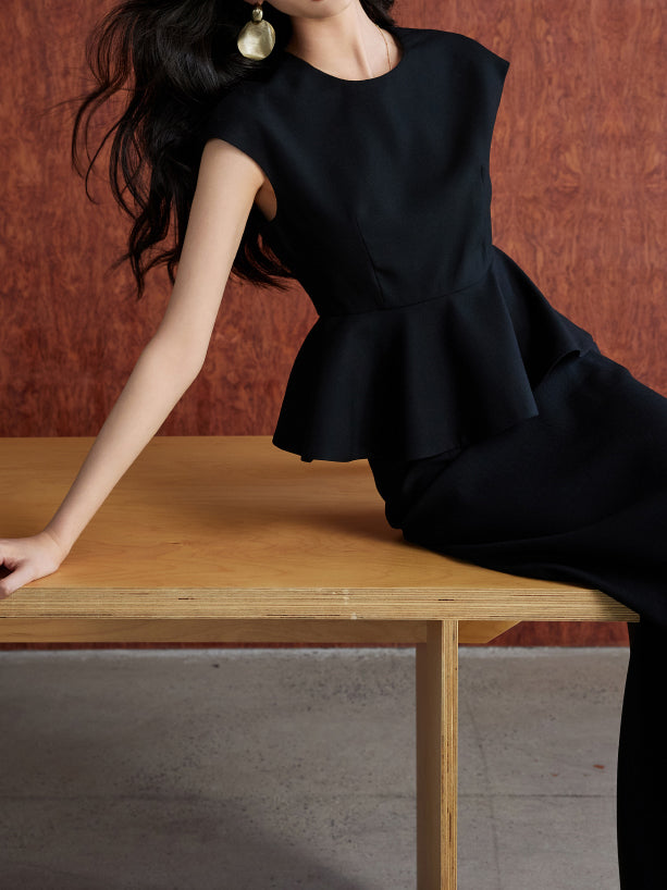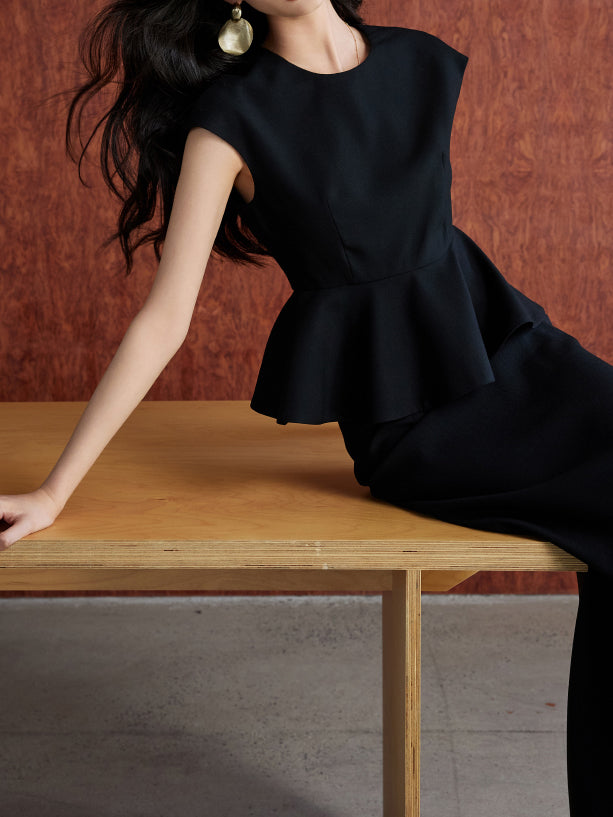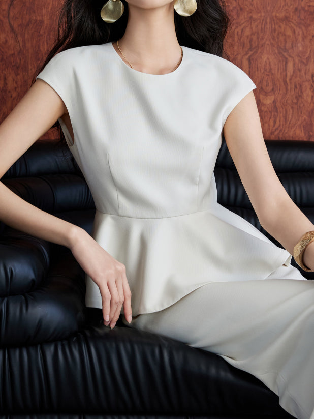 French Sleeve Peplum Blouse (Can be Set Up) 2 Colors