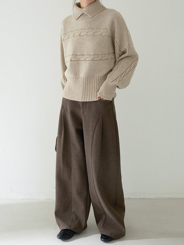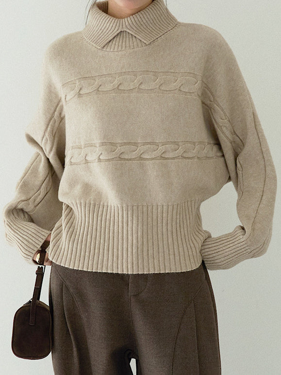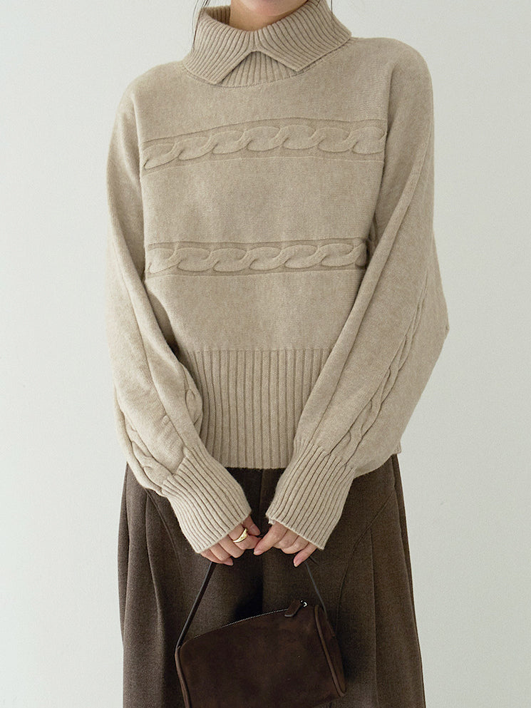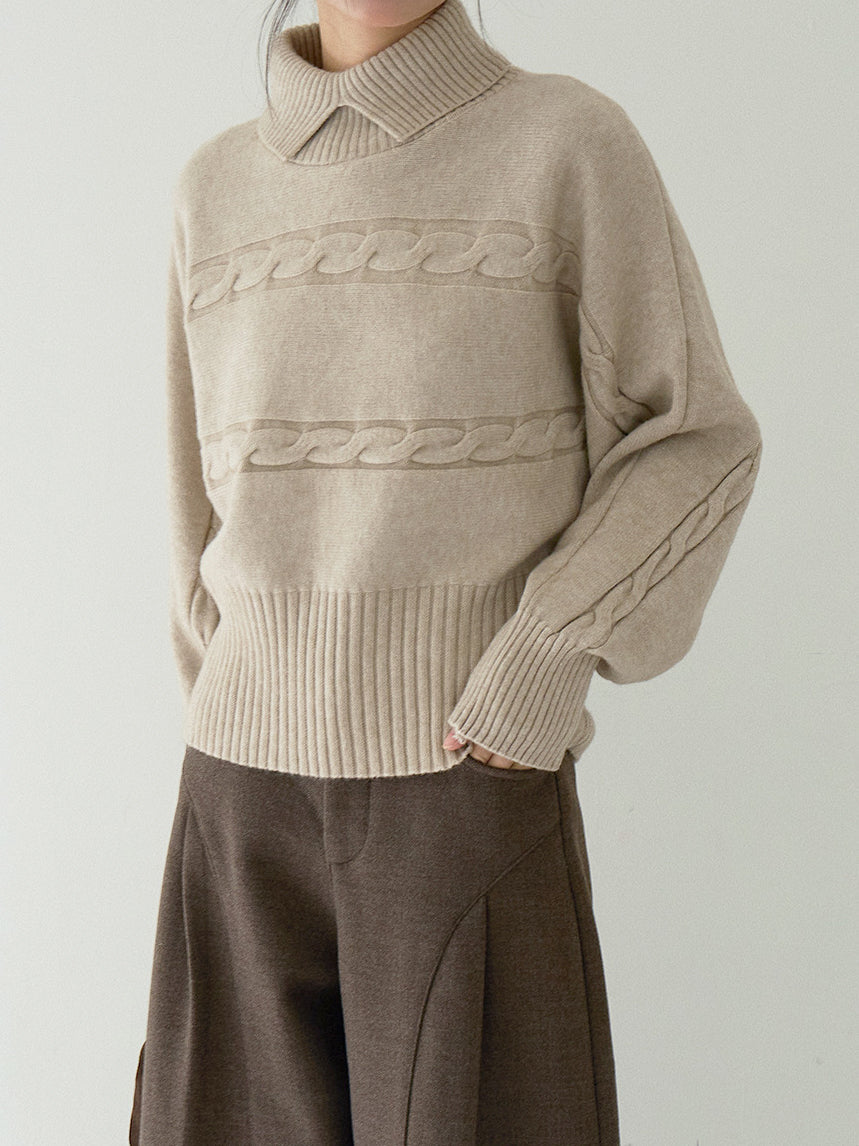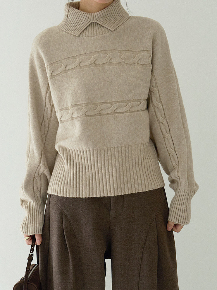 With its retro collar design and elegant cable knit, this piece will add a lovely update to your winter outfits.