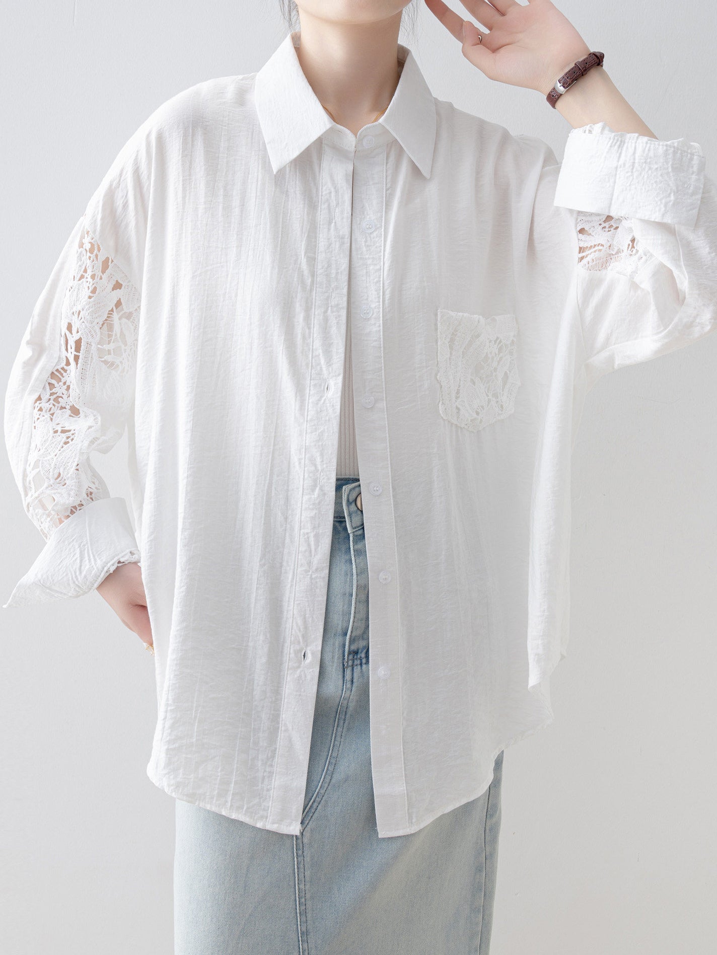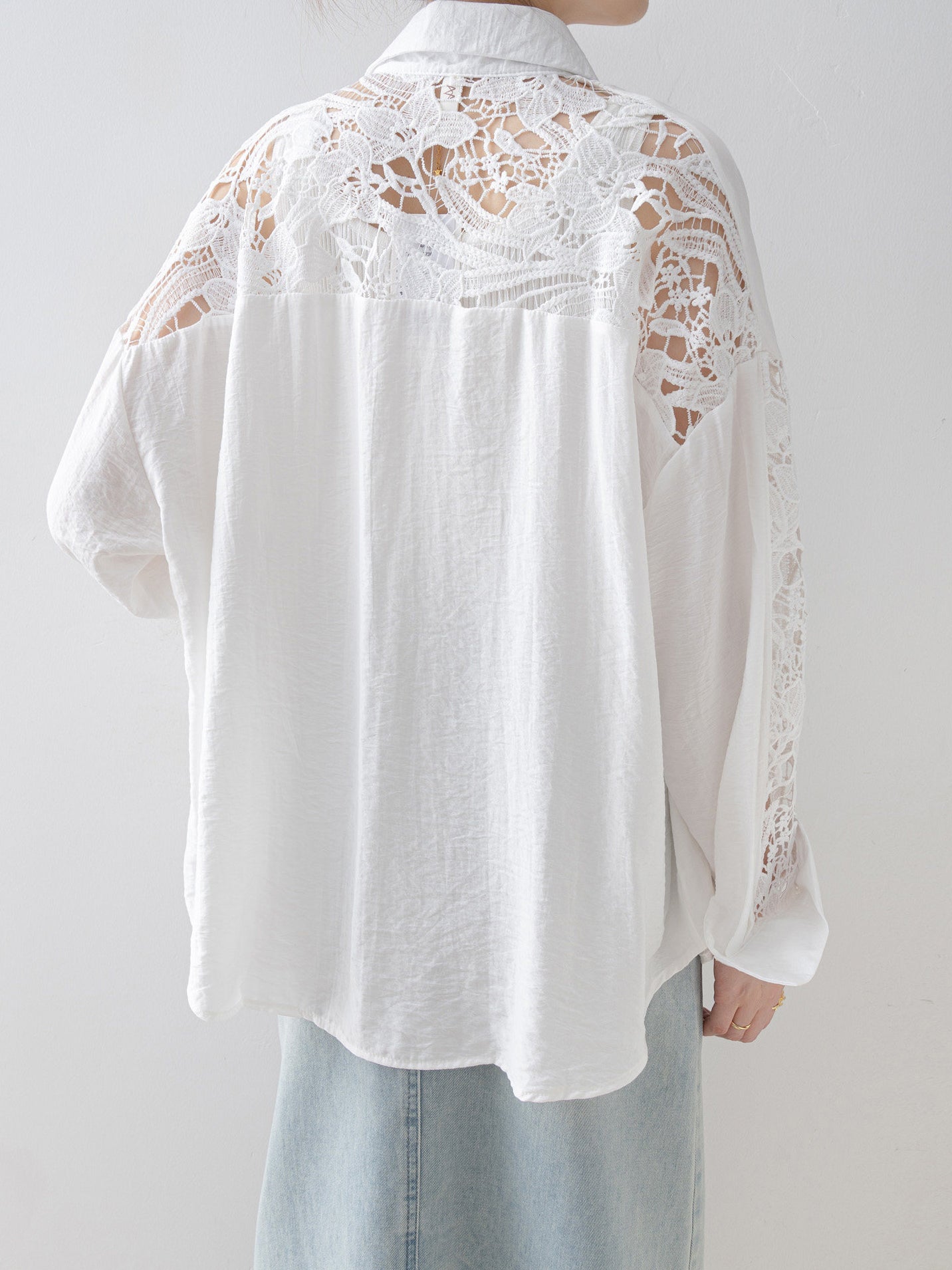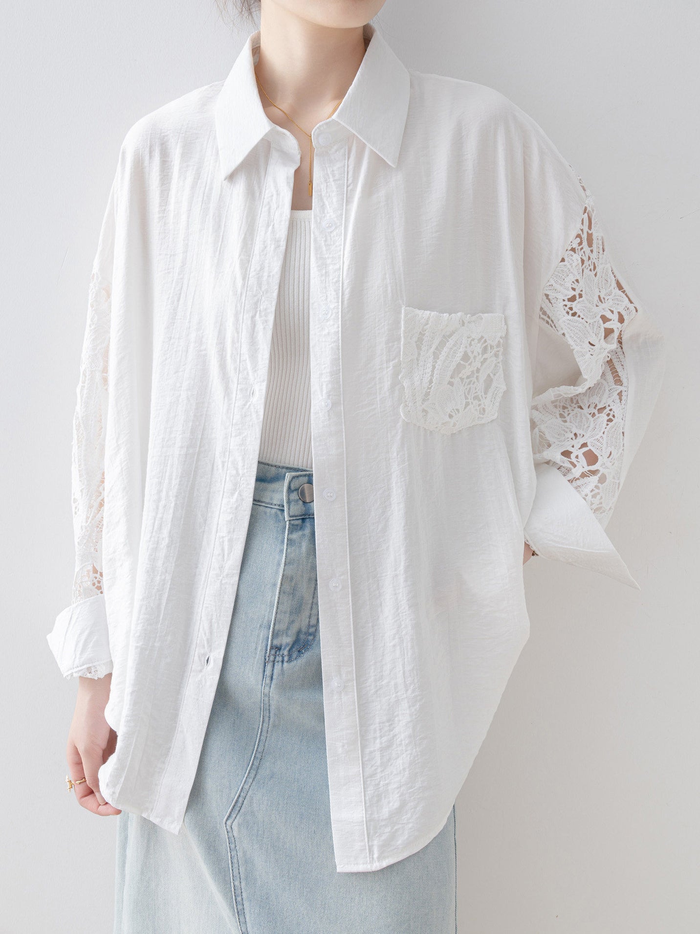 Lace sleeve docking shirt