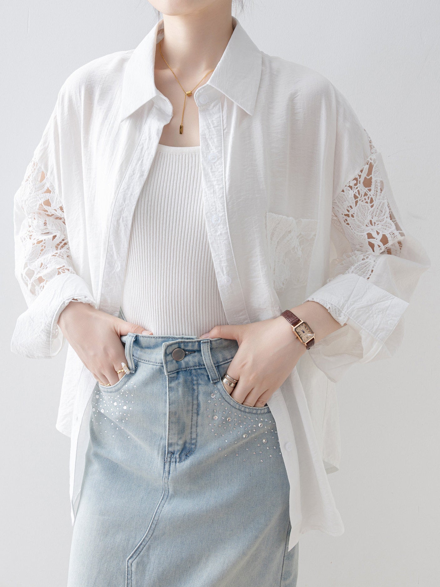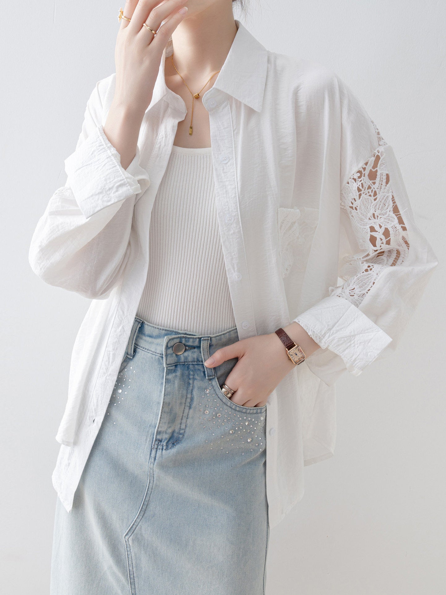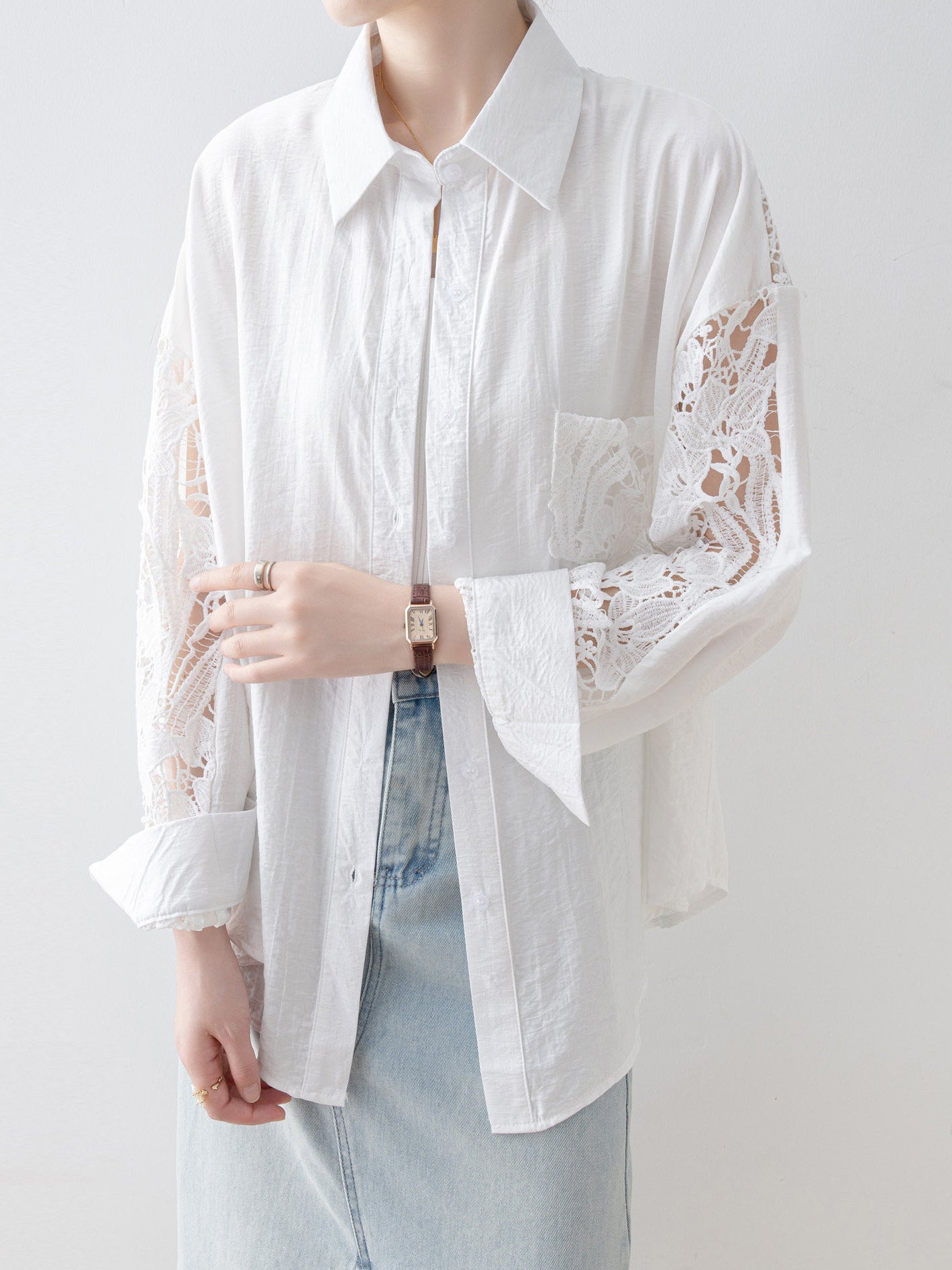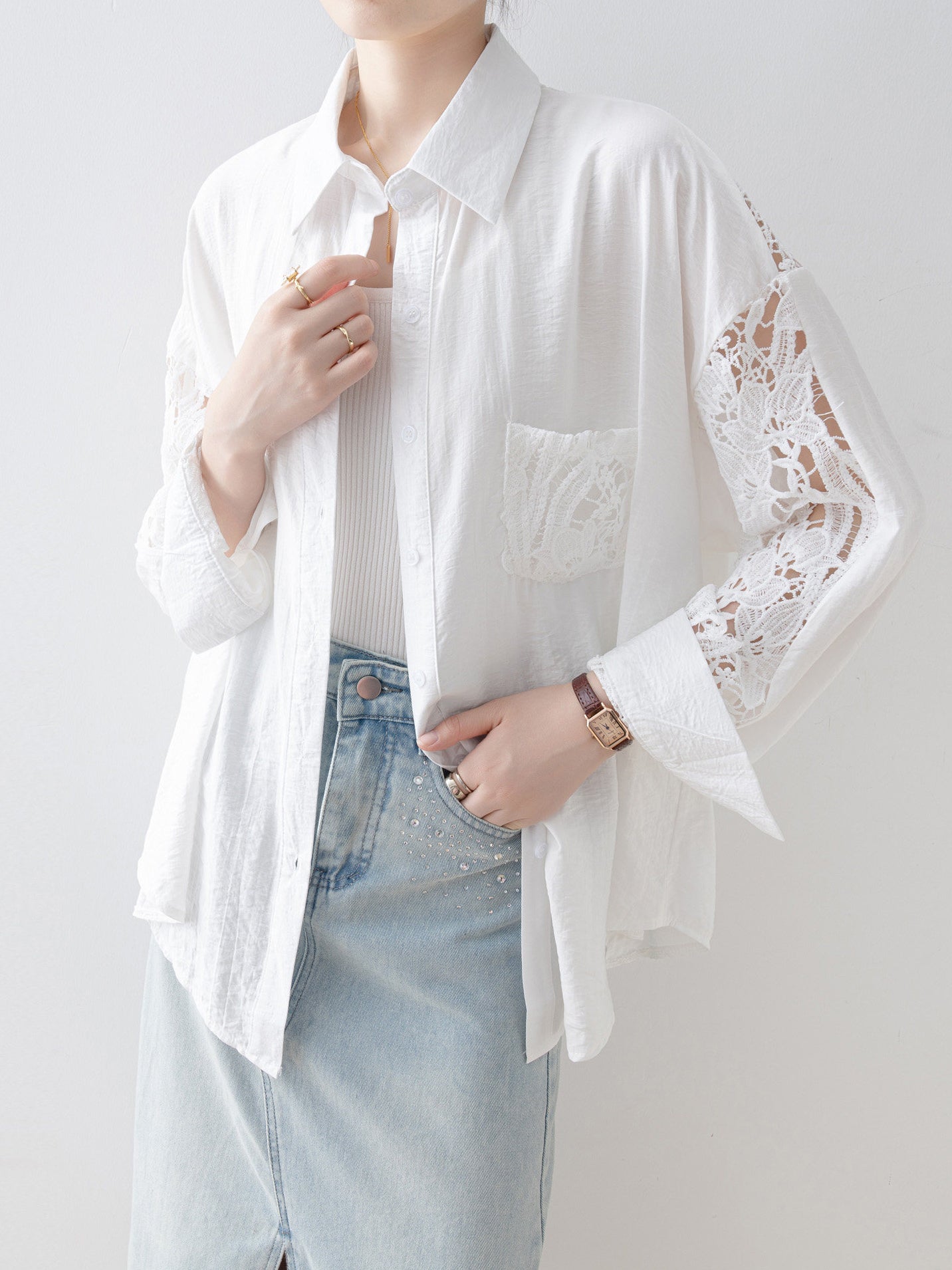 Lace sleeve docking shirt