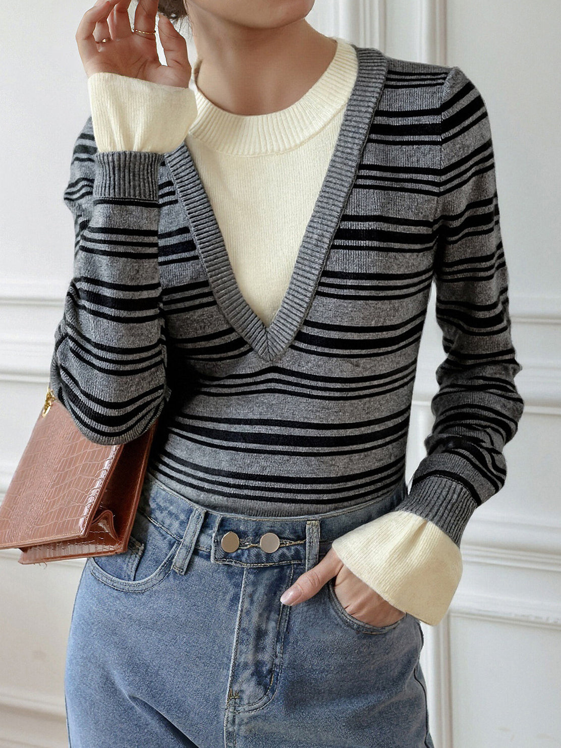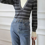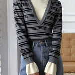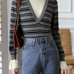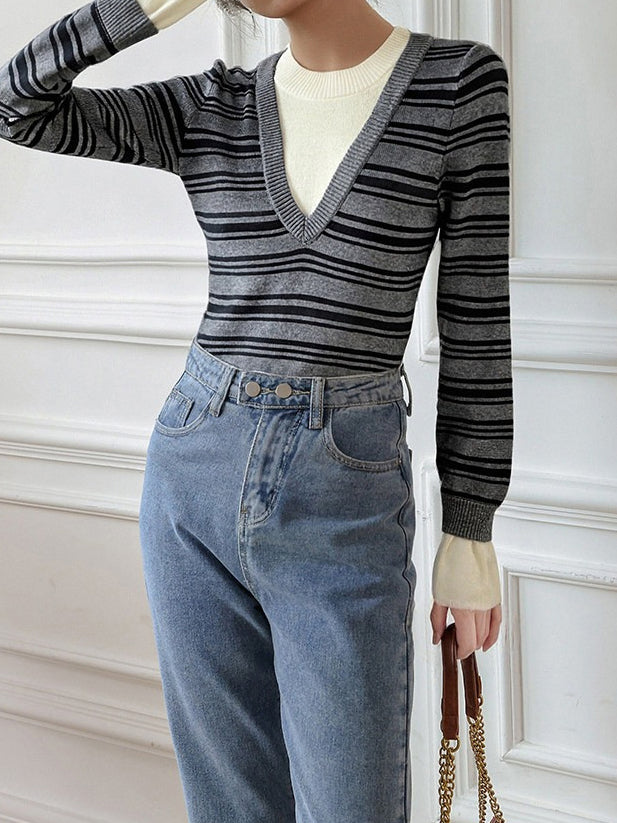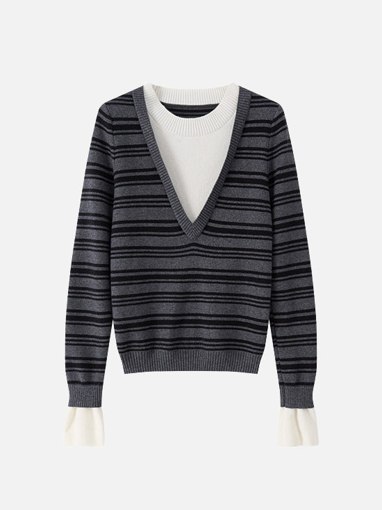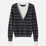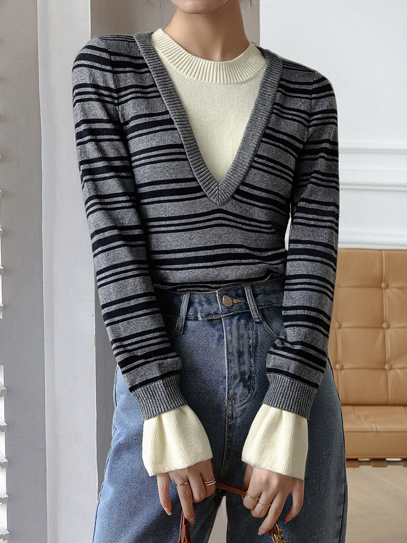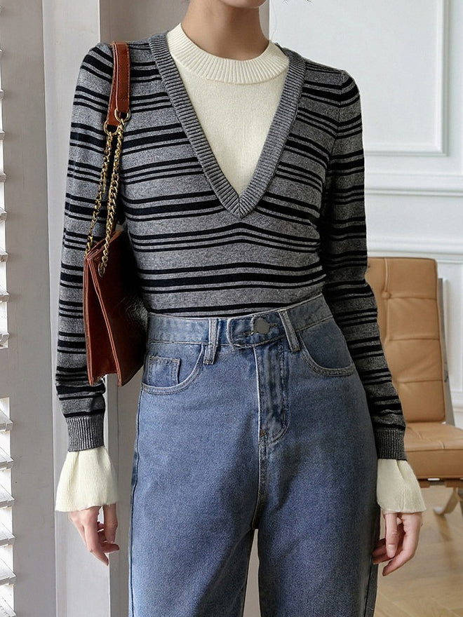 Layered V-shaped docking striped knit in 2 colors