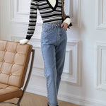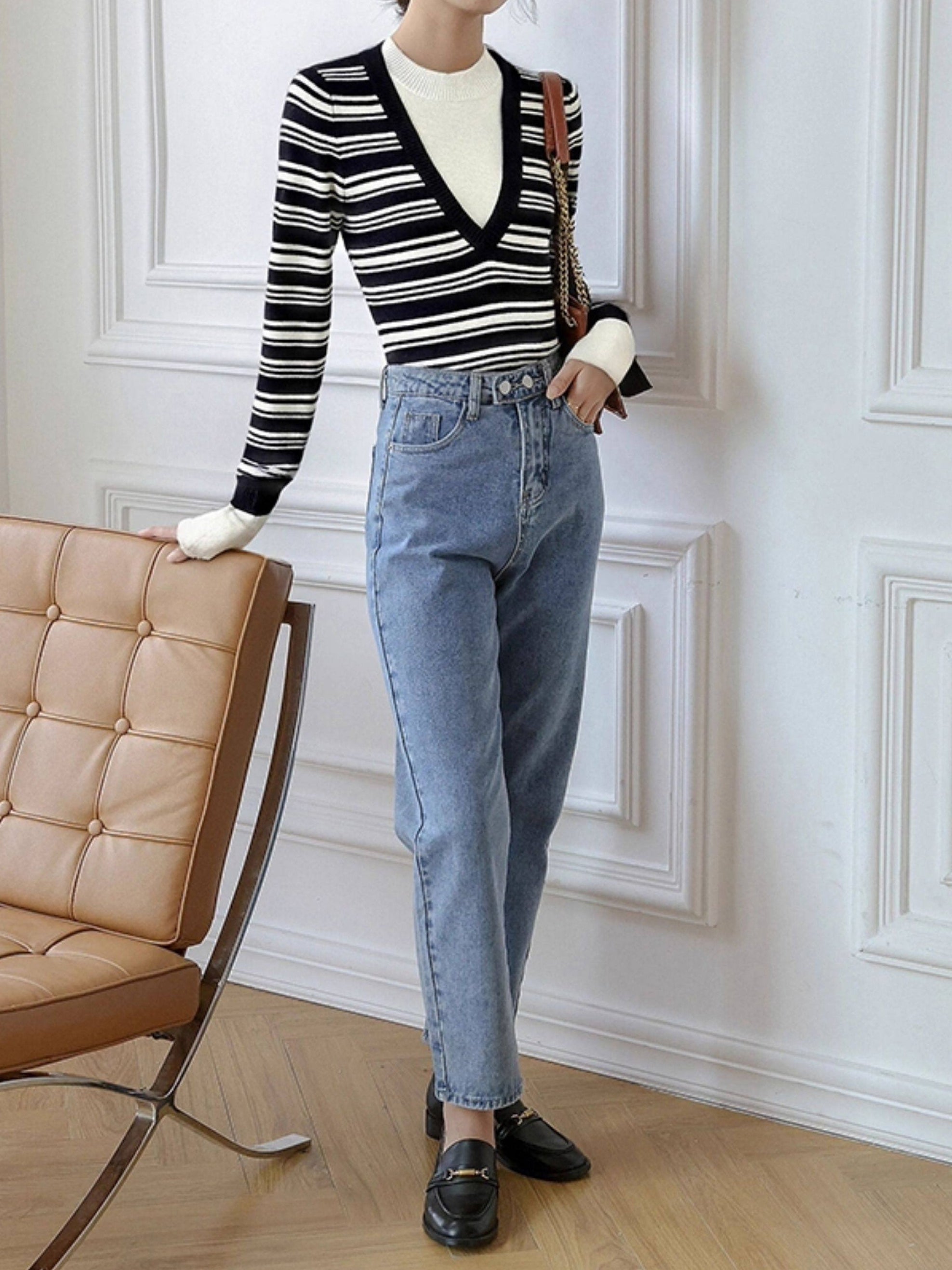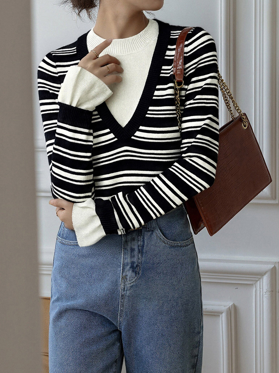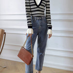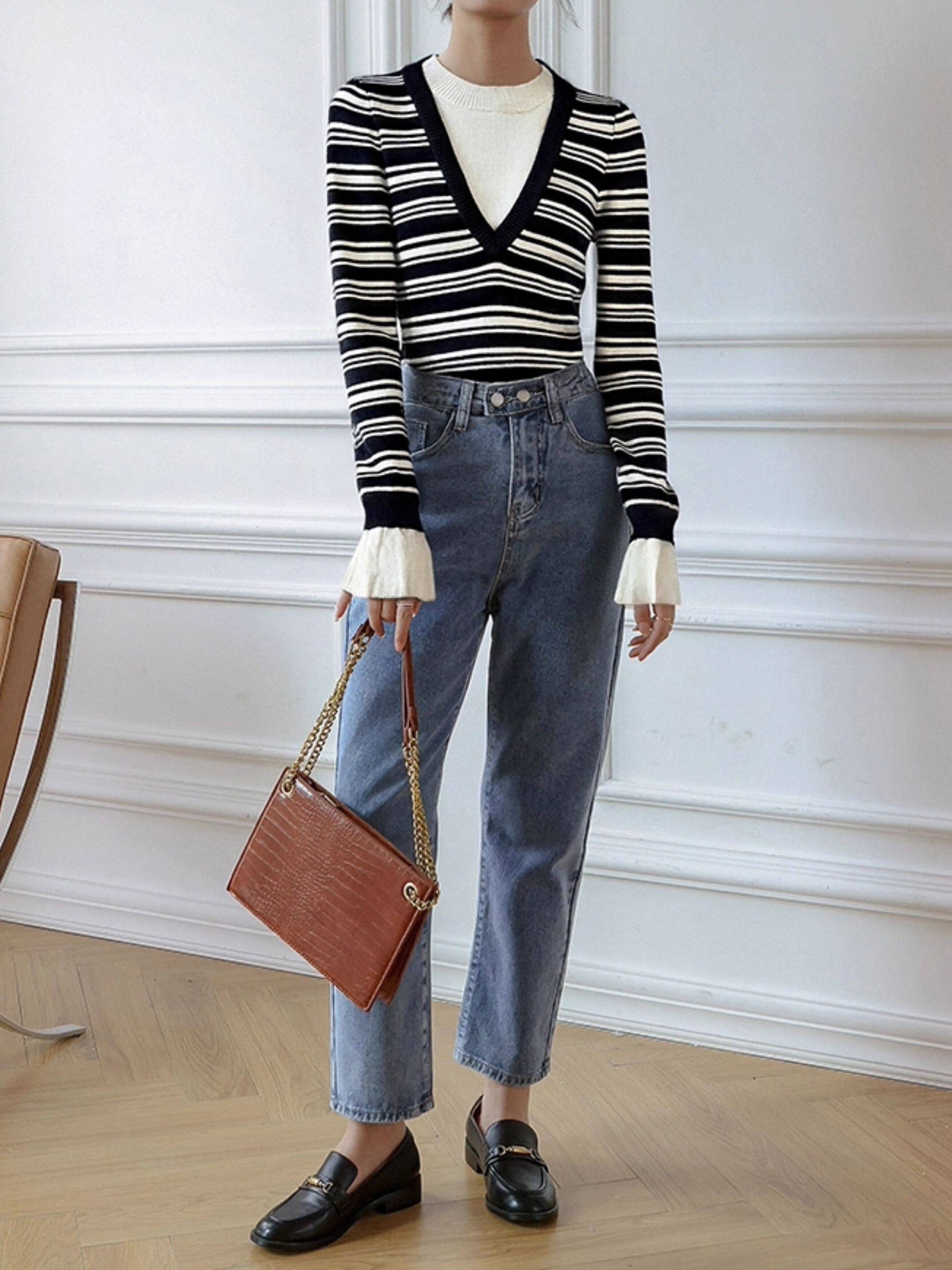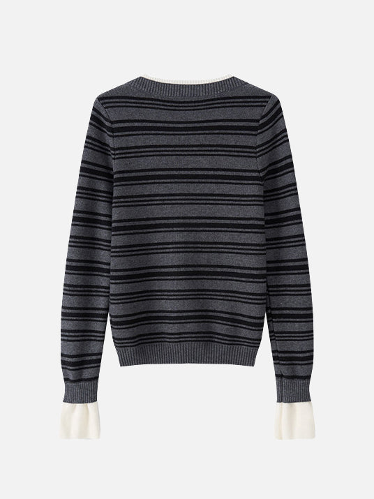 Layered V-shaped docking striped knit in 2 colors