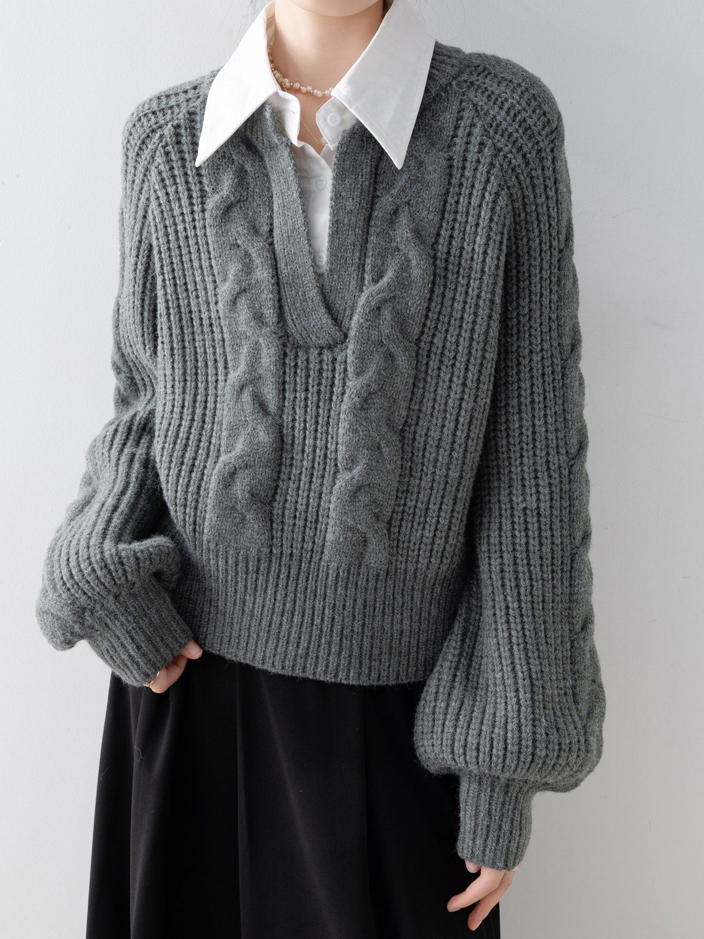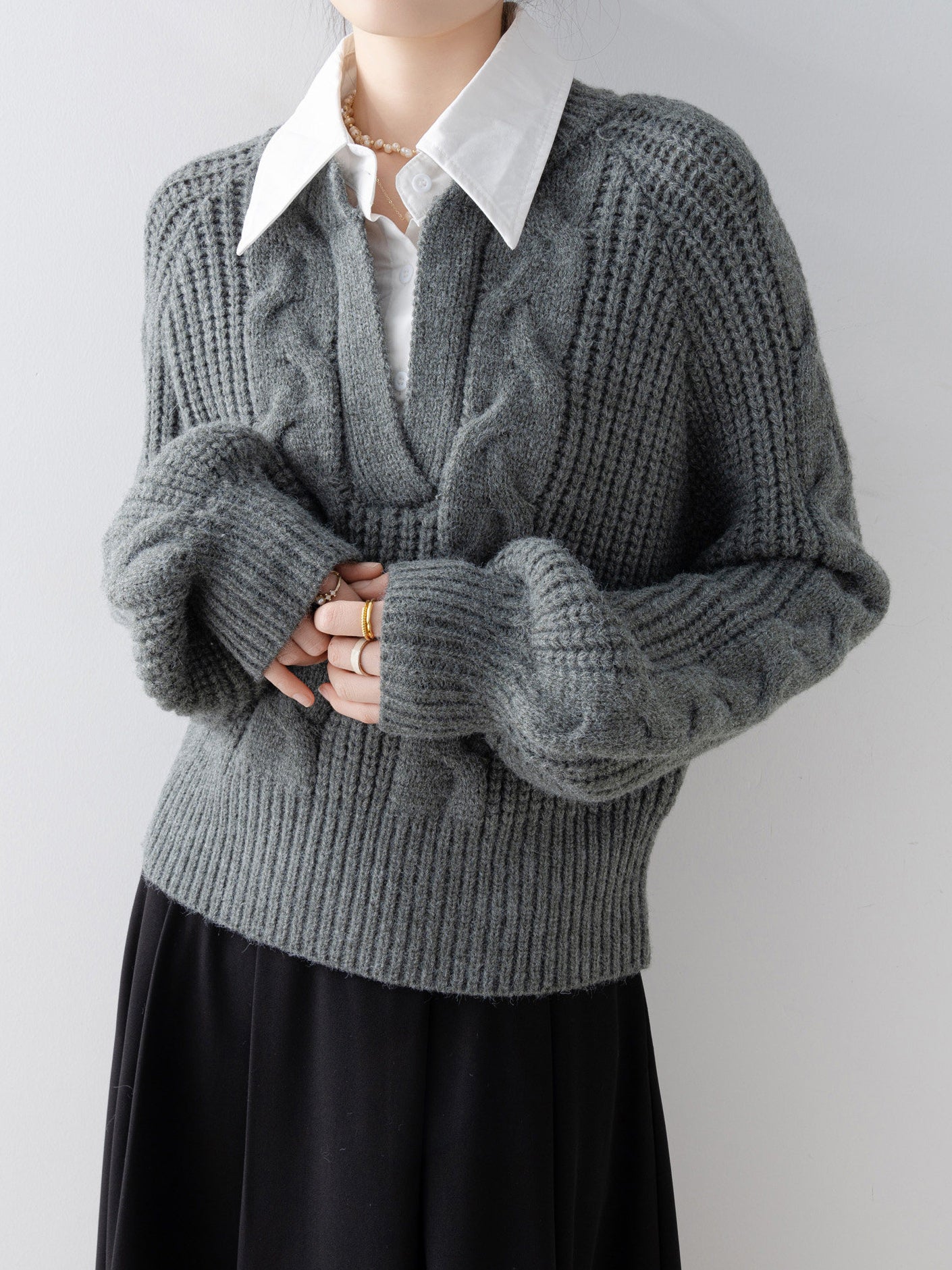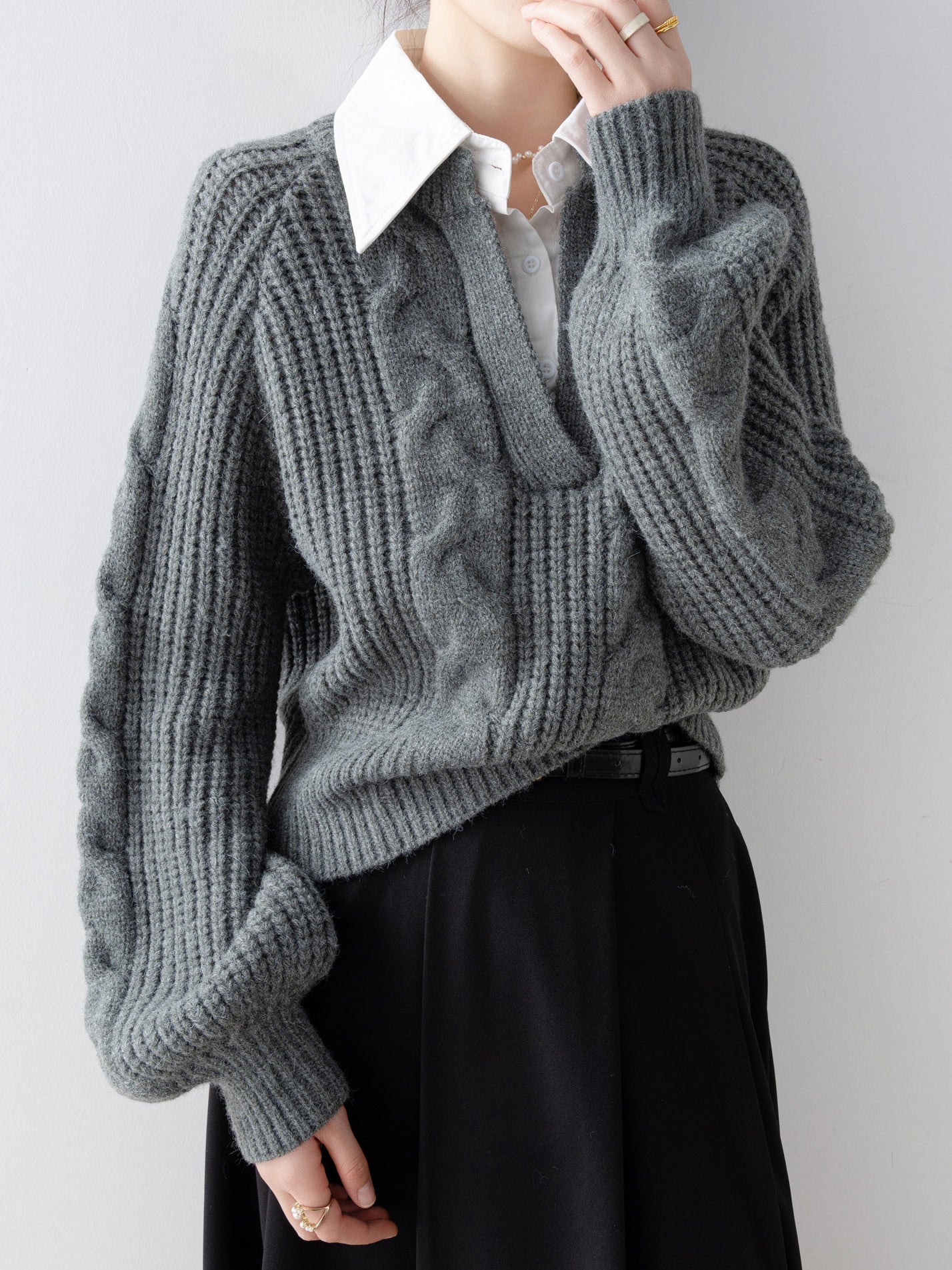 Shirt-docking Aran knit (4 colors)