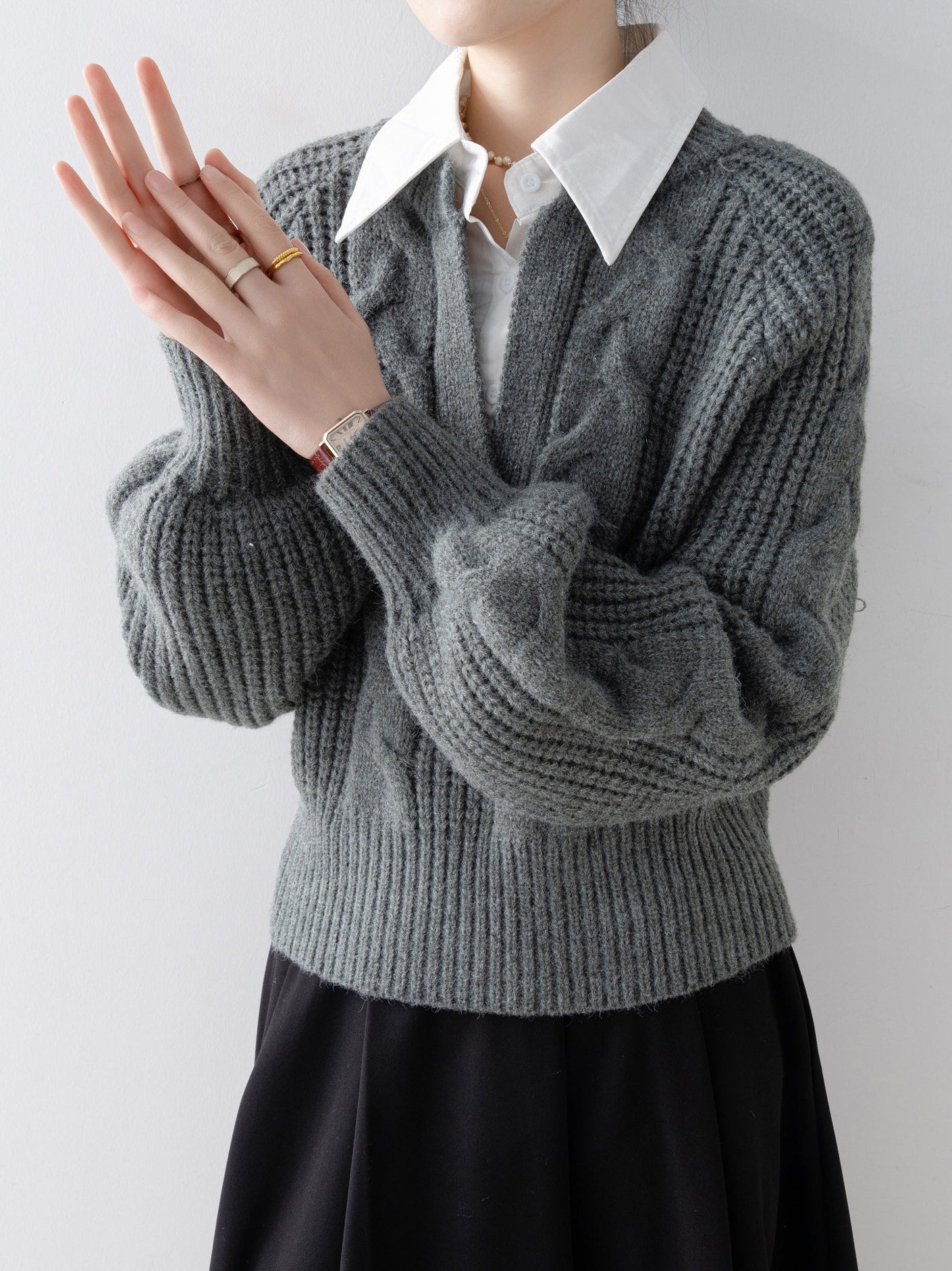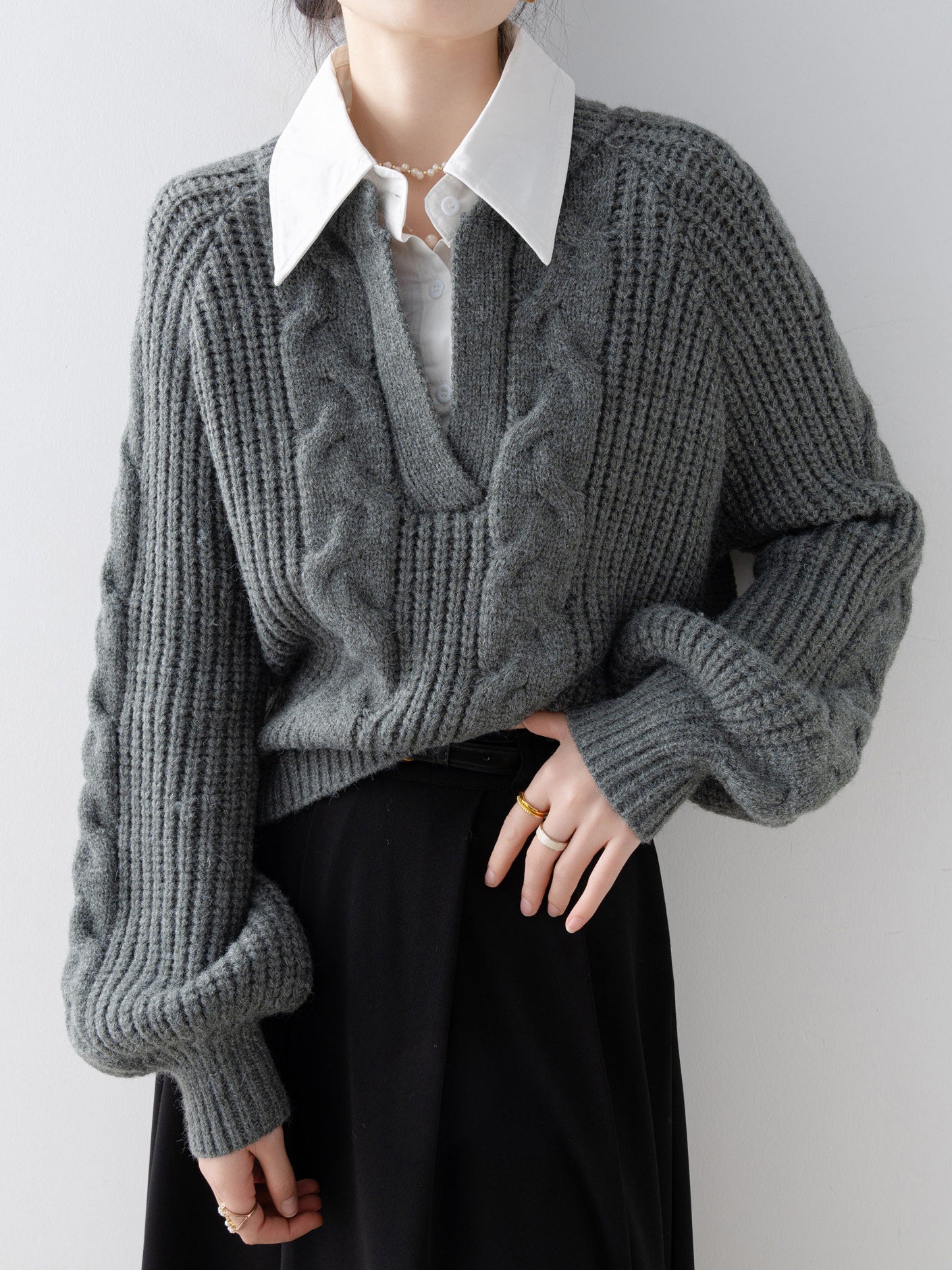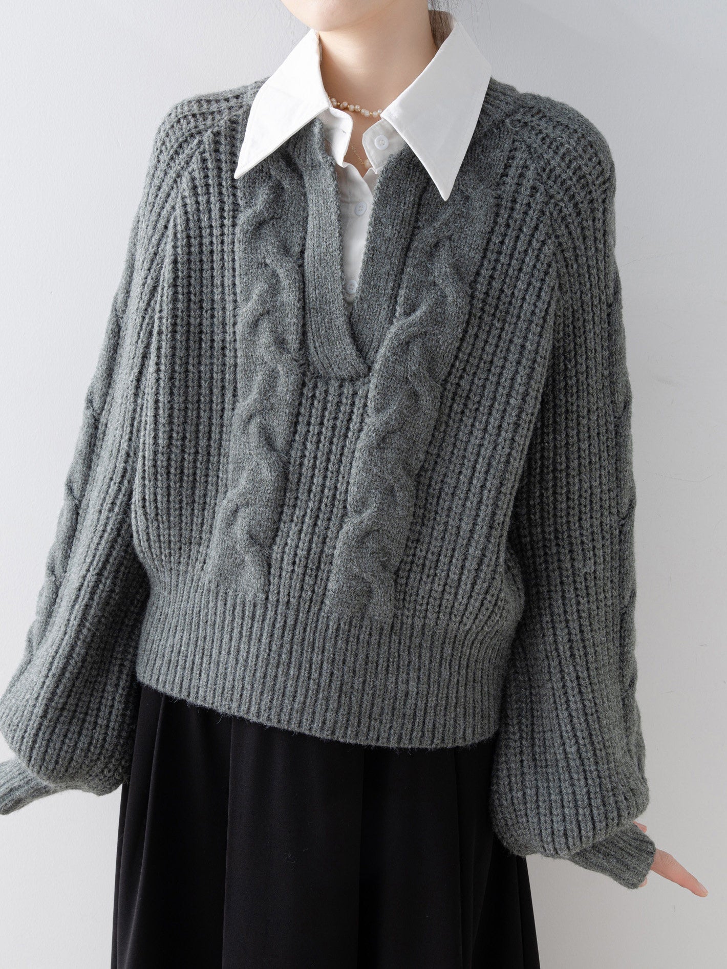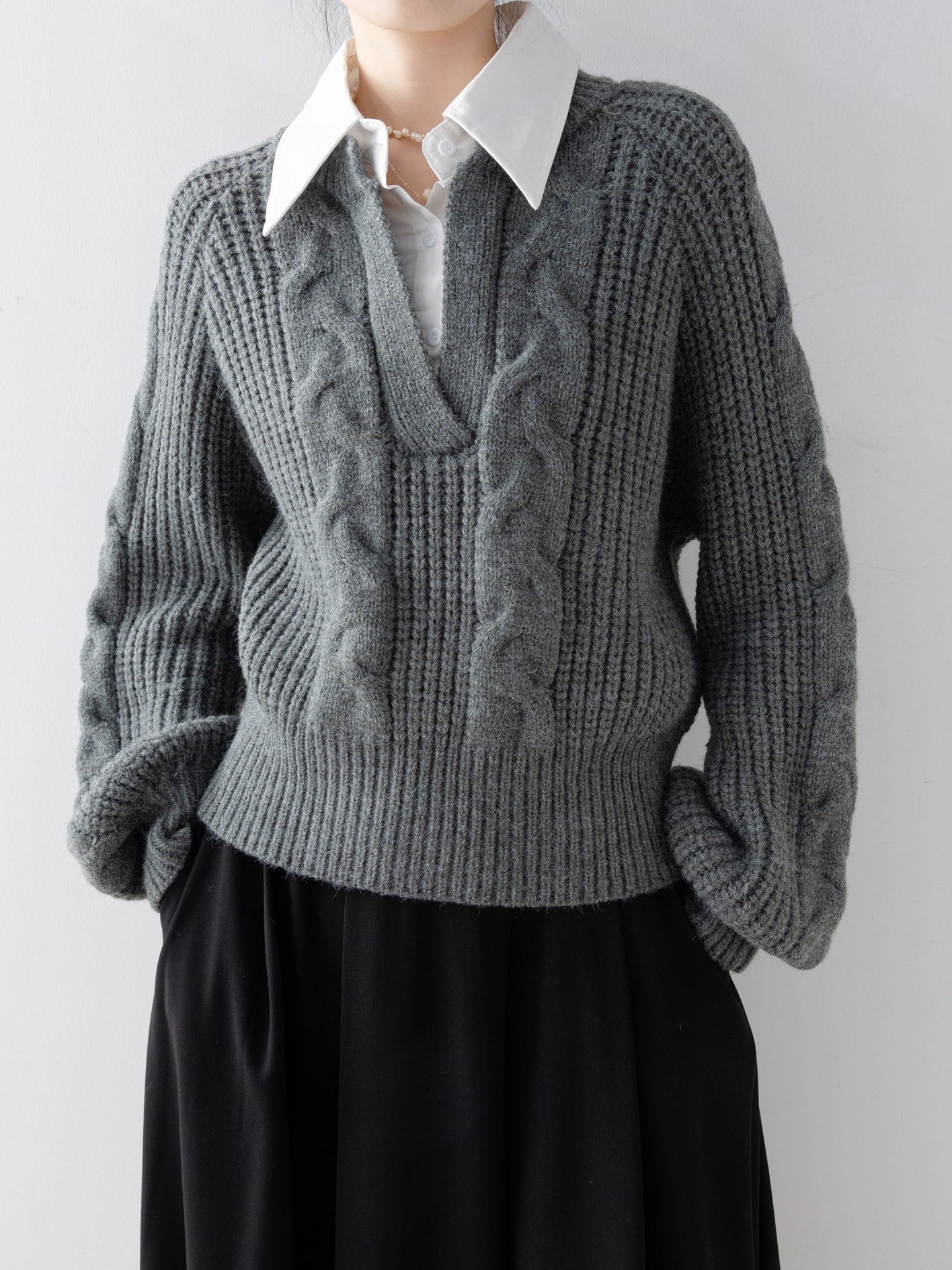 Shirt-docking Aran knit (4 colors)