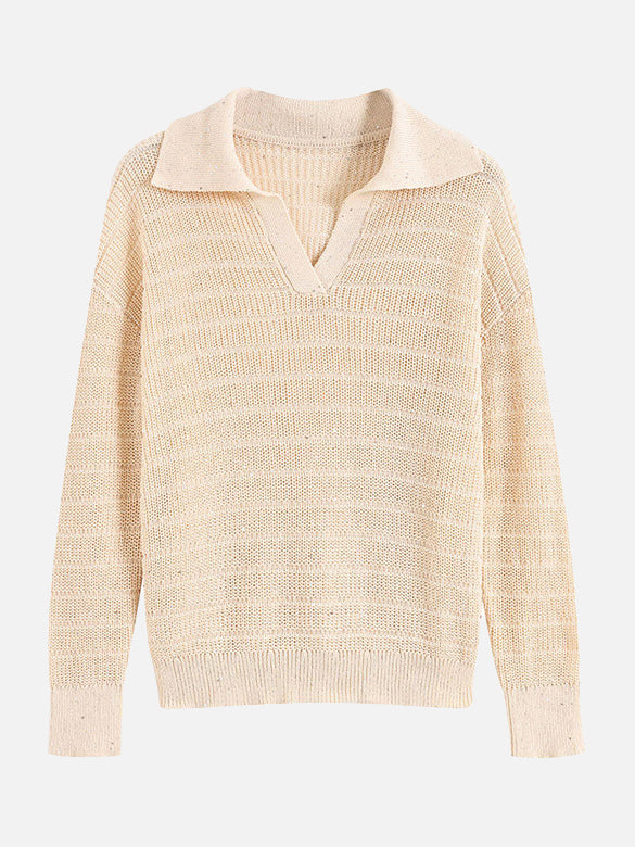 This skipper knit is easy to incorporate into casual styles and has a collar that adds a touch of formality.