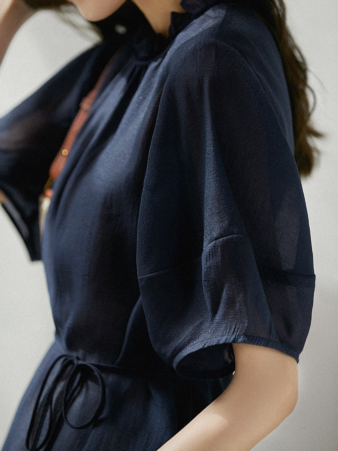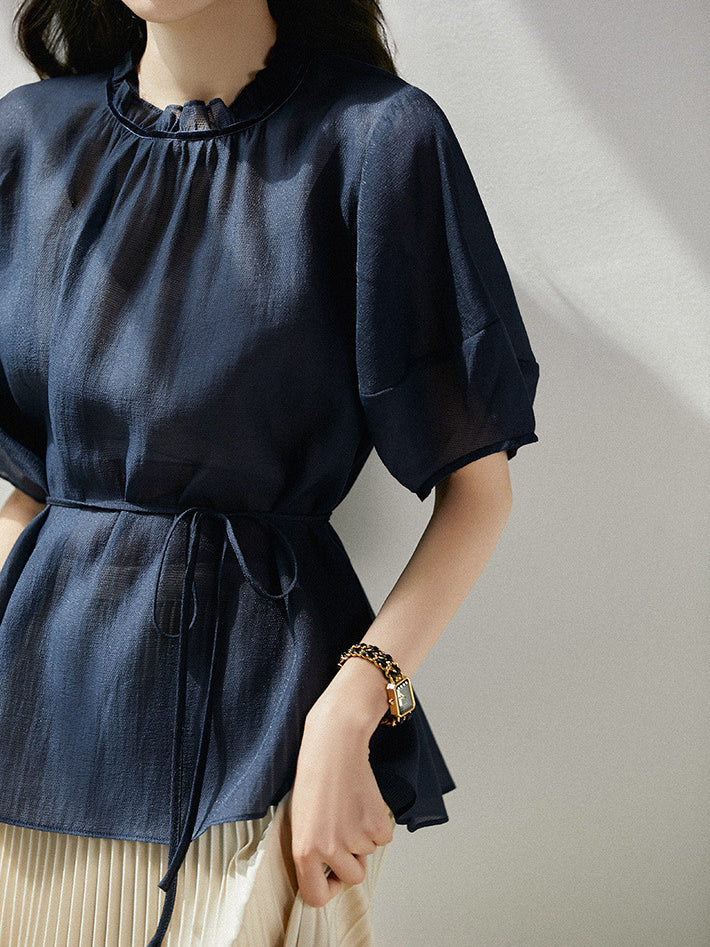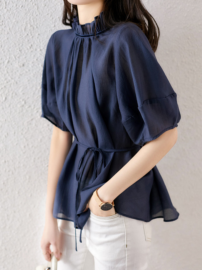French Sleeve Peplum Blouse (Can be Set Up) 2 Colors