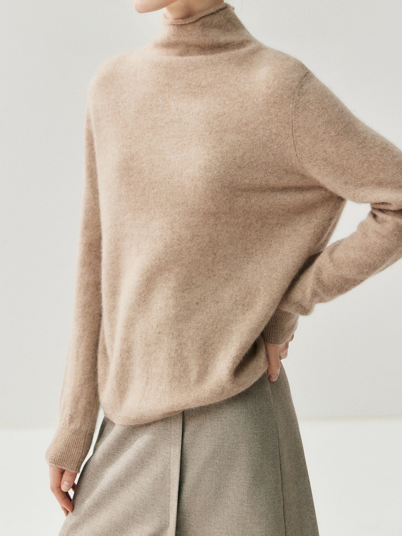 ☆The high neck, which is not too high, has the effect of creating an elegant look around the face and can also be used as an inner layer under a jacket.