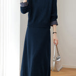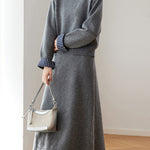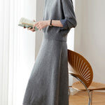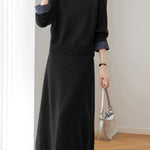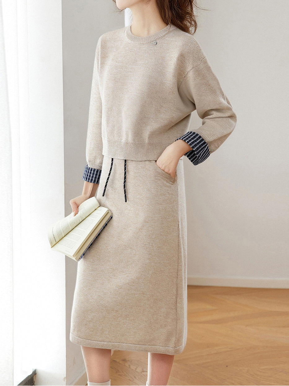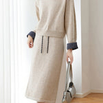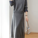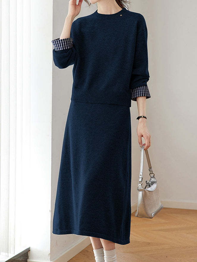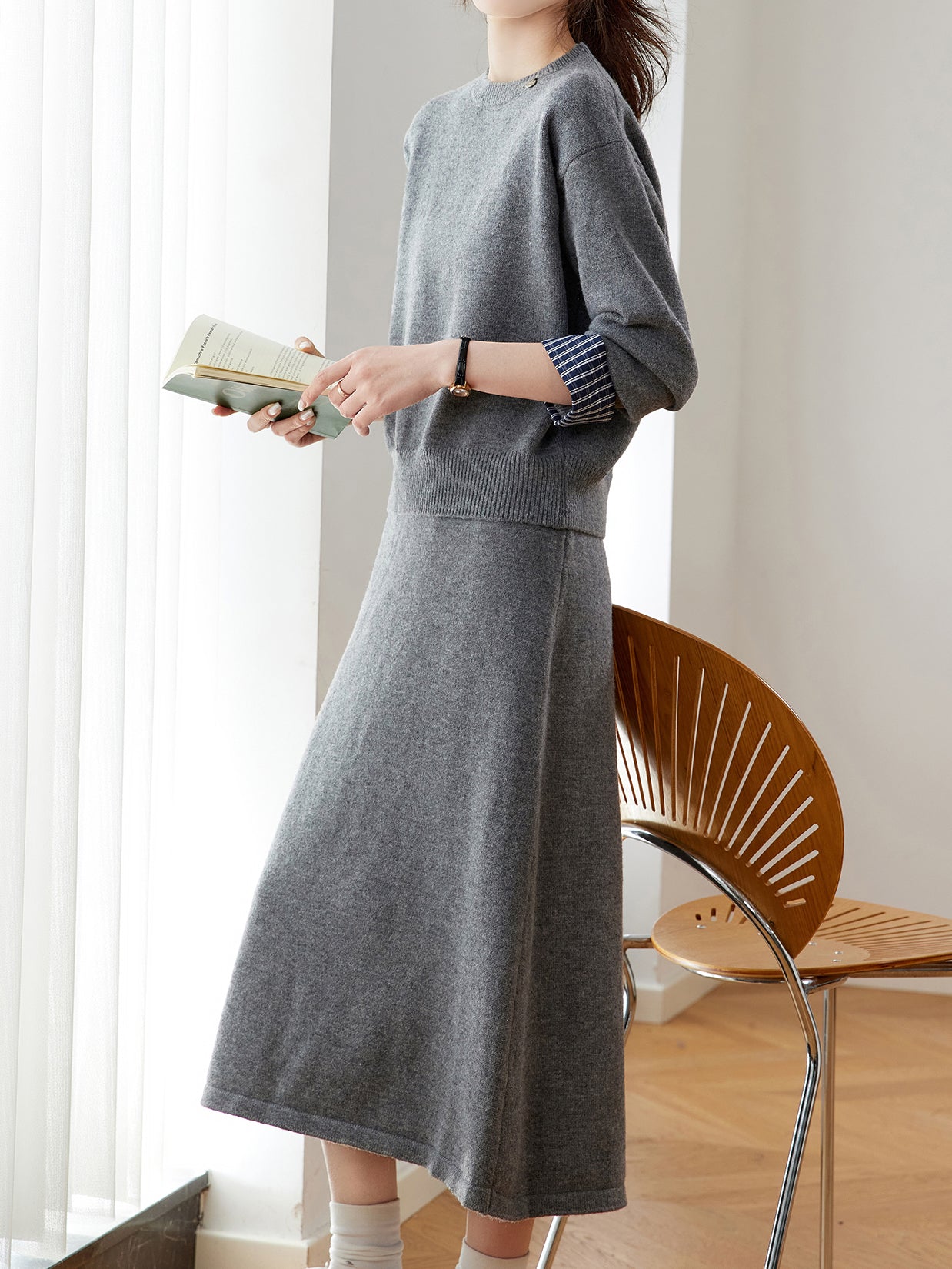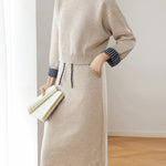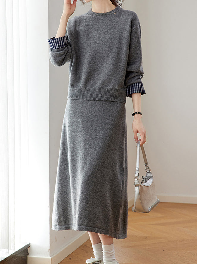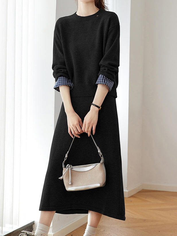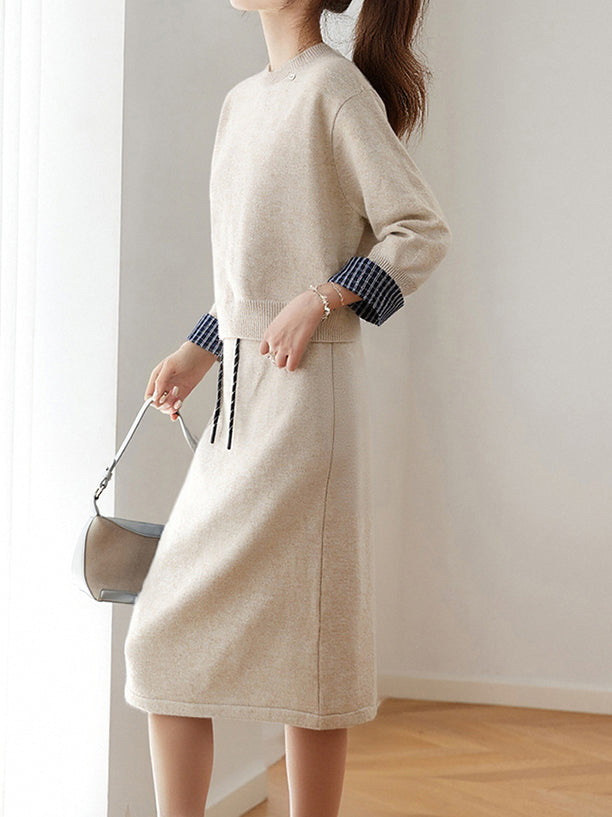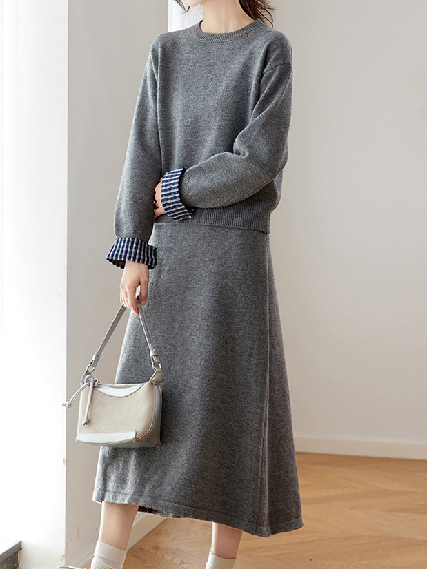 Checkered Cuff Knit + Knit Flare Skirt Set (4 Colors)