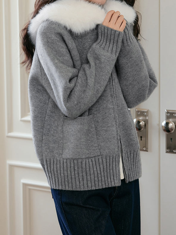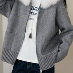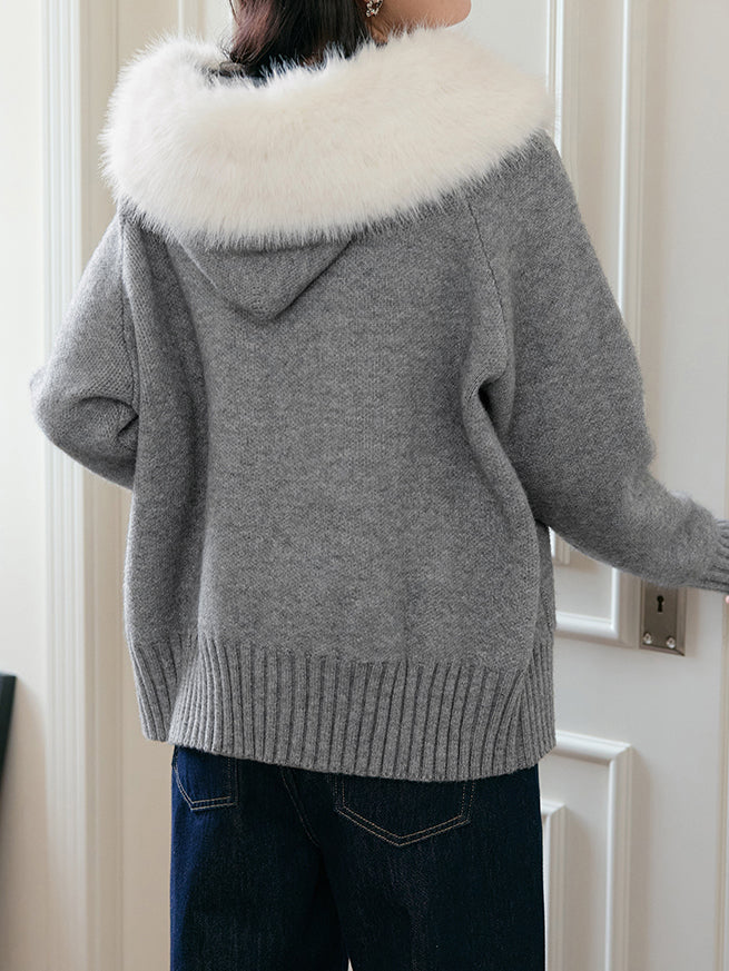 ☆The hood is three-dimensional and decorated with fluffy fur , keeping your neck warm .