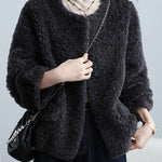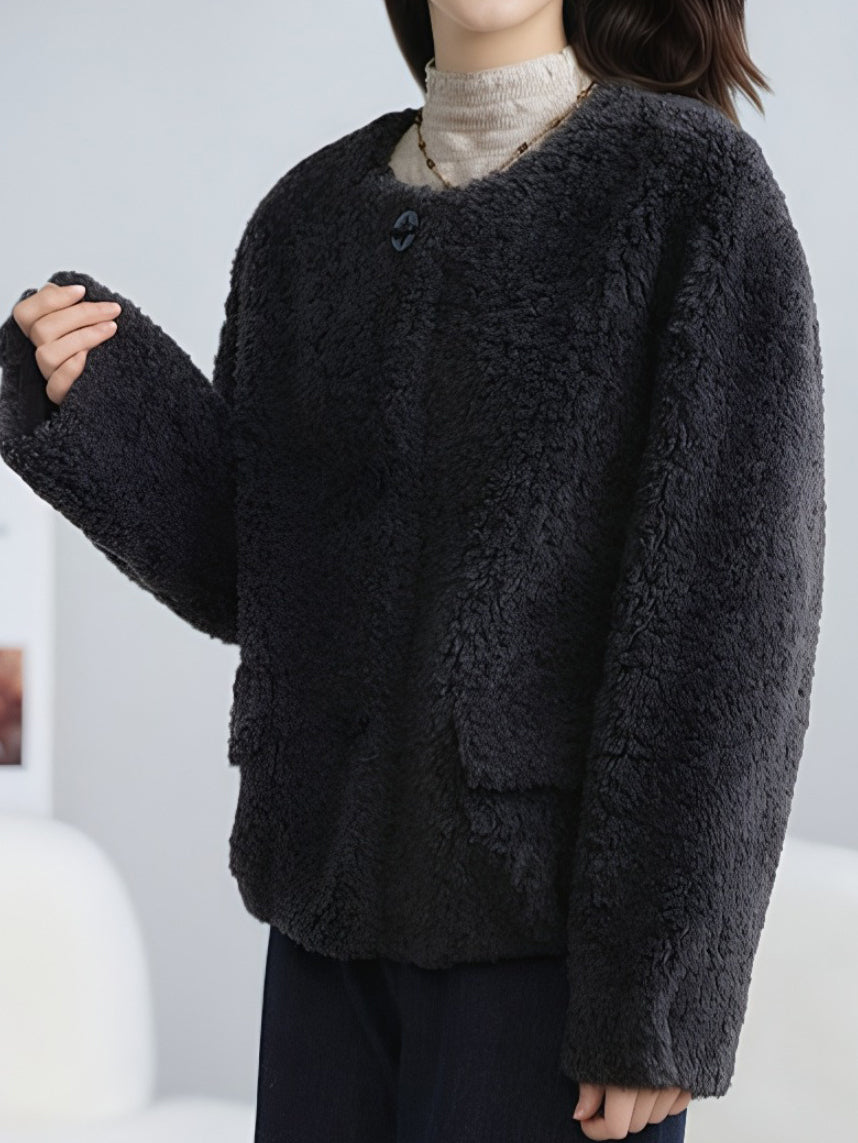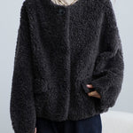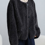 No-collar fur blouson