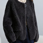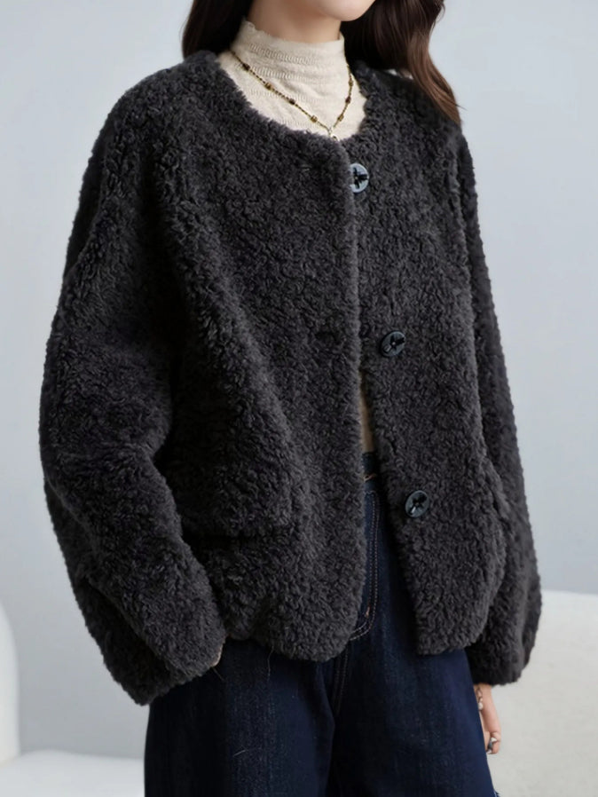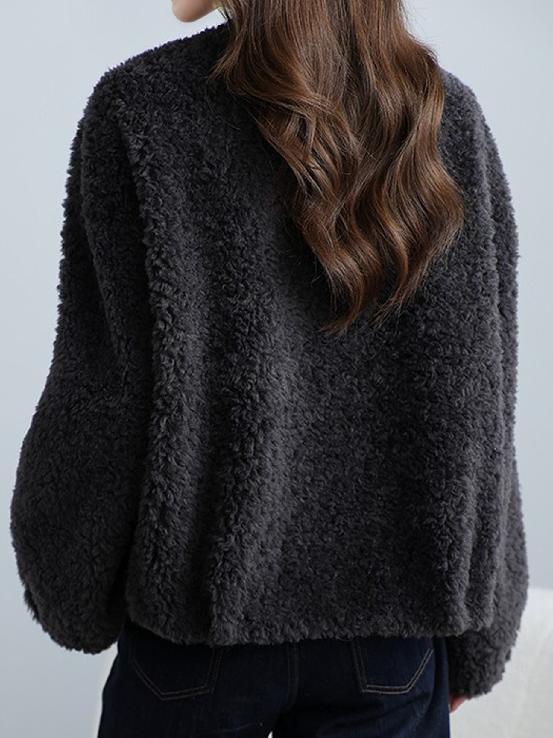 Fur blousons tend to be bulky, but this one has a clean, no-collar finish.