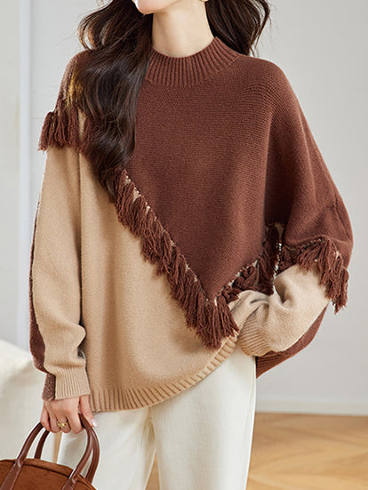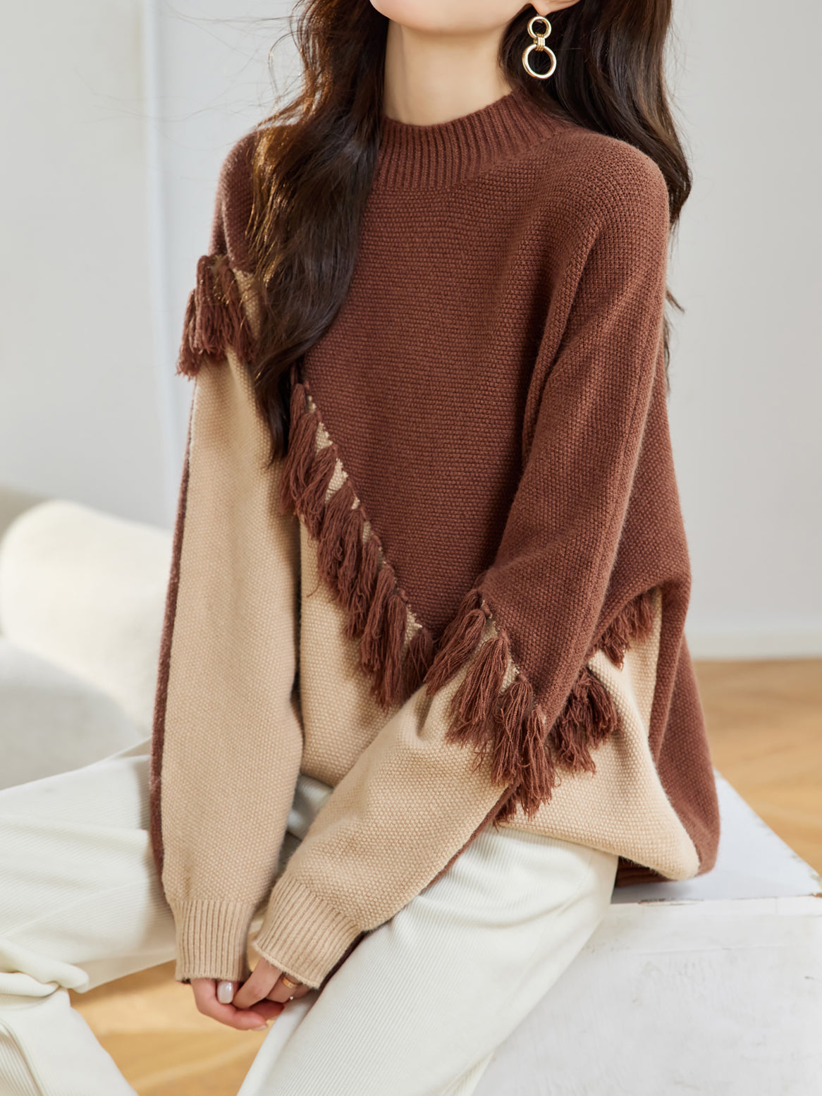 Front and back 2-way cut jacquard fringe deep V-neck vest (2 colors)