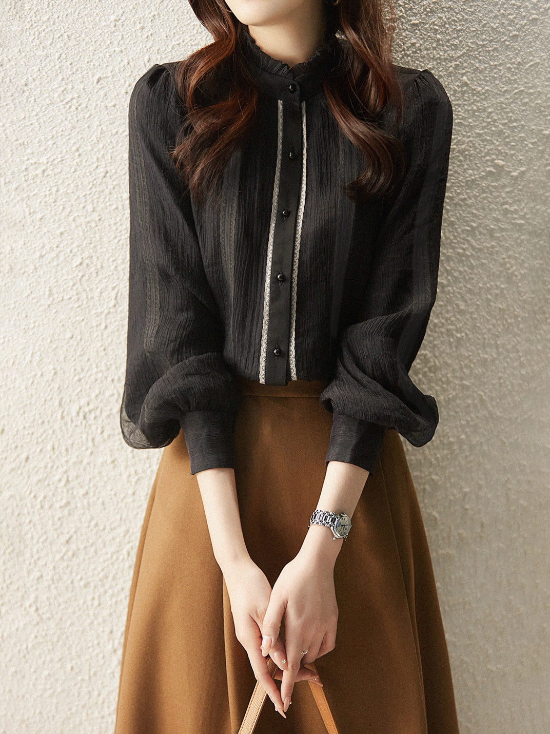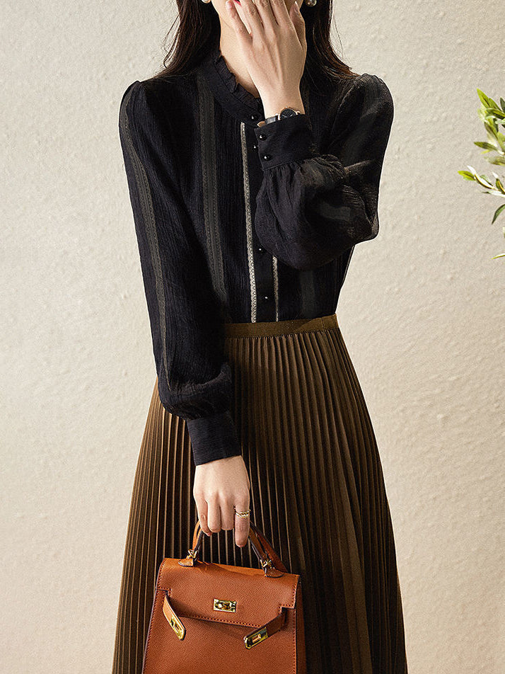 Frill collar lace crepe blouse in 2 colors