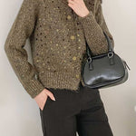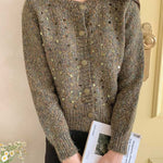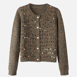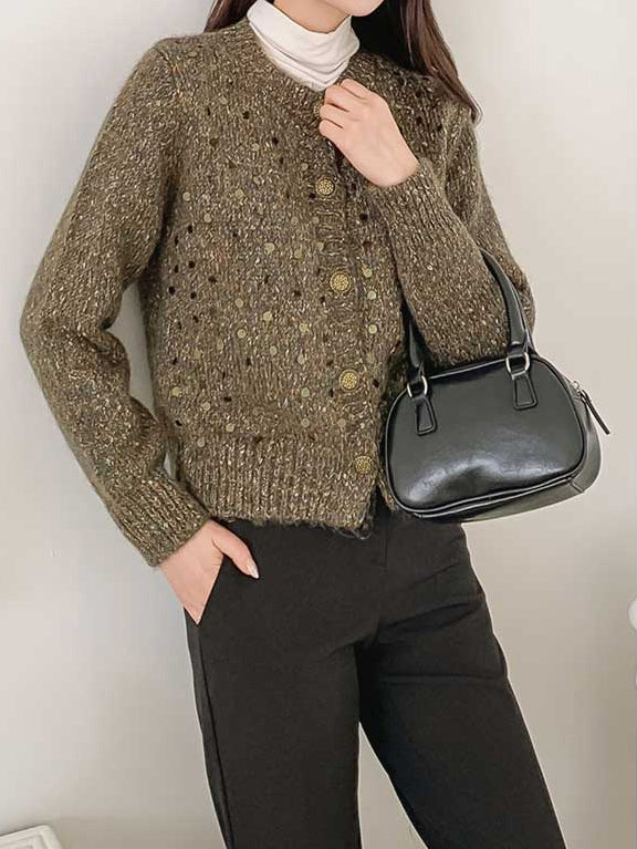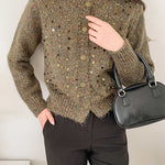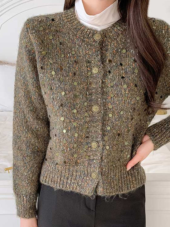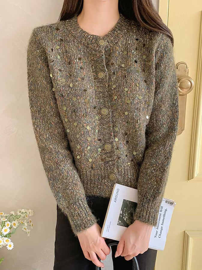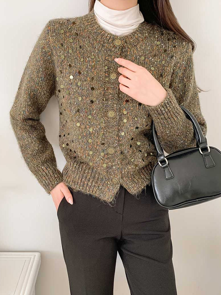 Sequin design mixed yarn cardigan