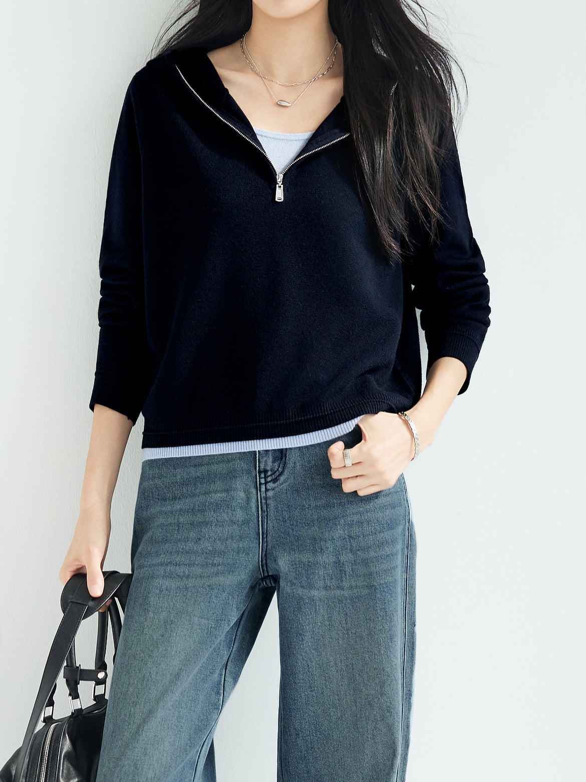 ☆The half-zip design allows you to easily adjust the look around your neck by adjusting the zipper.