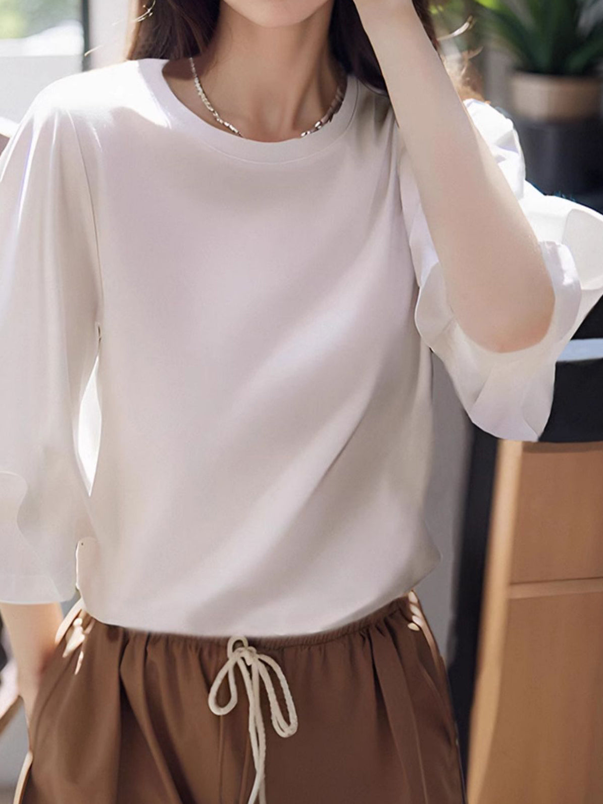 A classic summer 5/8 sleeve T-shirt that is both stylish and comfortable .