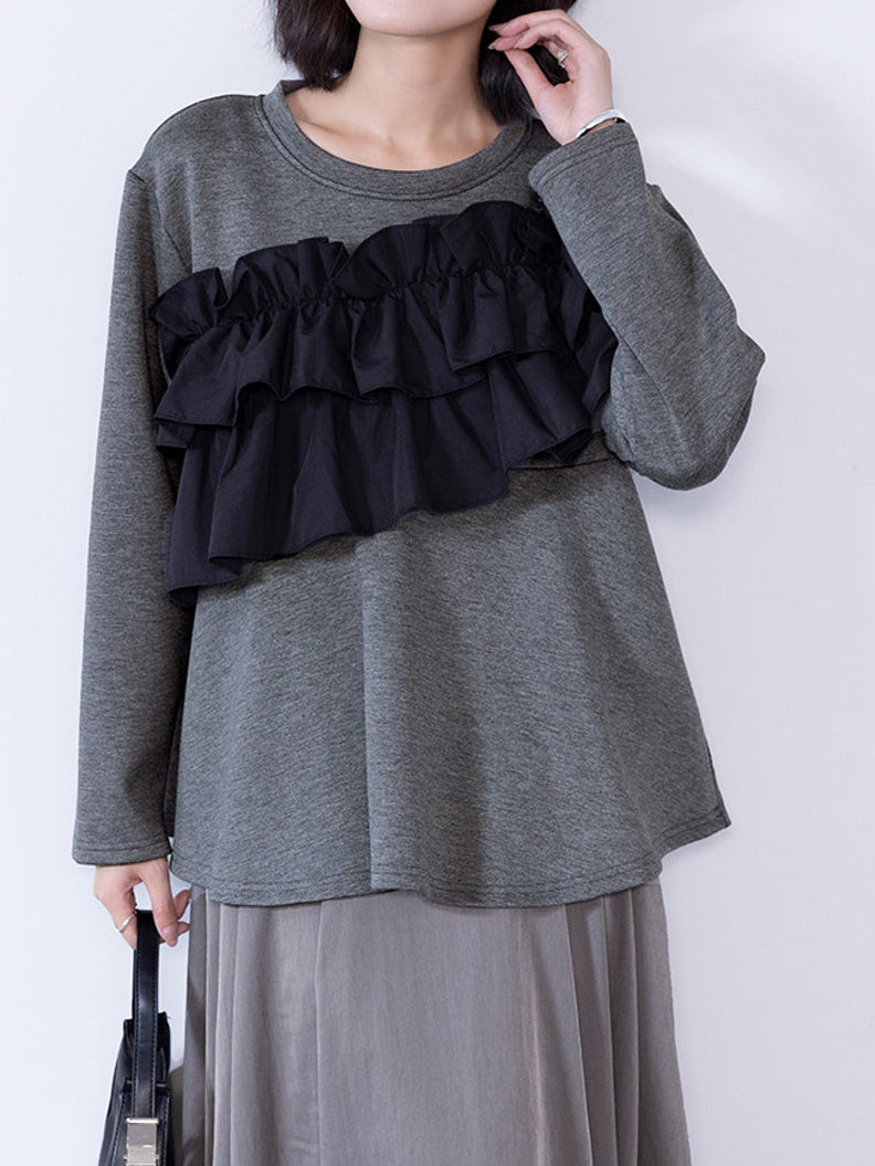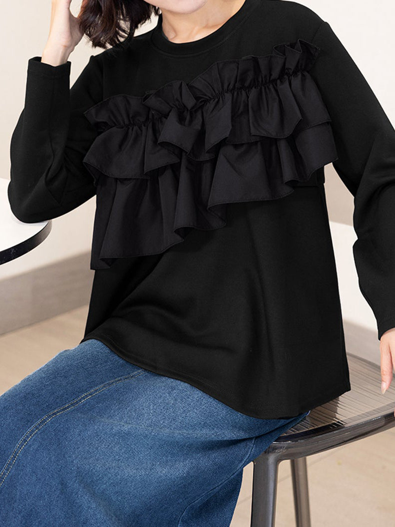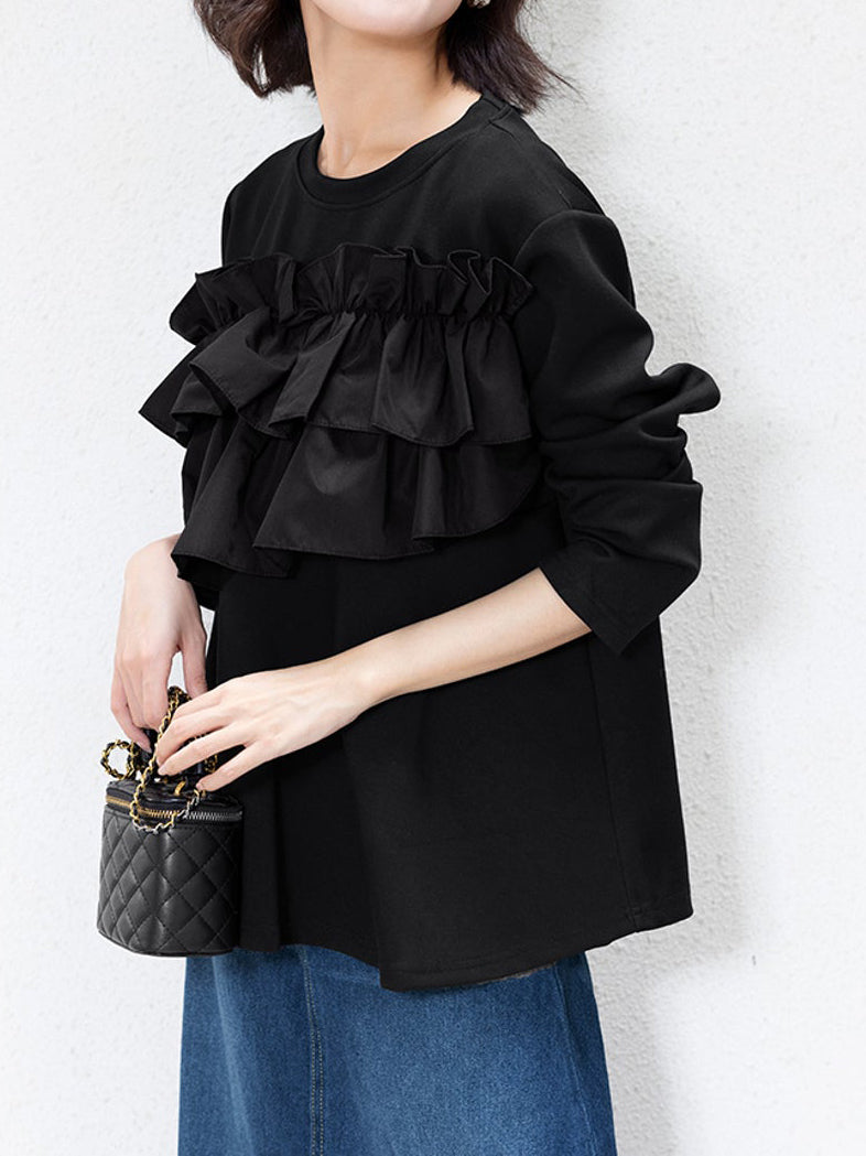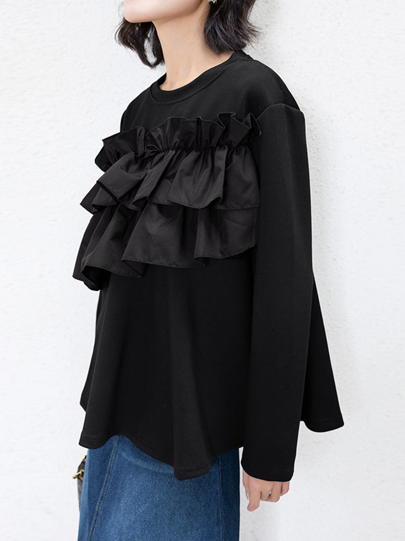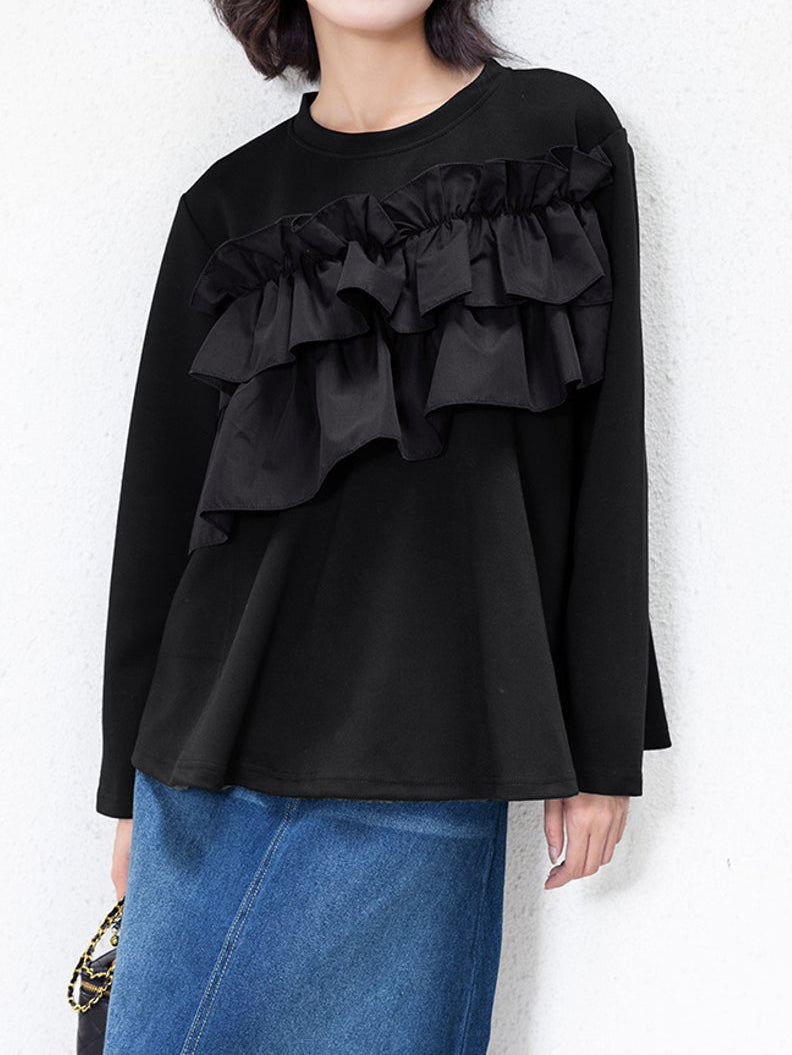 A docking peplum cut and sew top with plenty of ruffles.