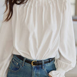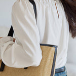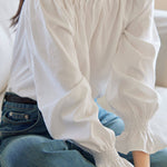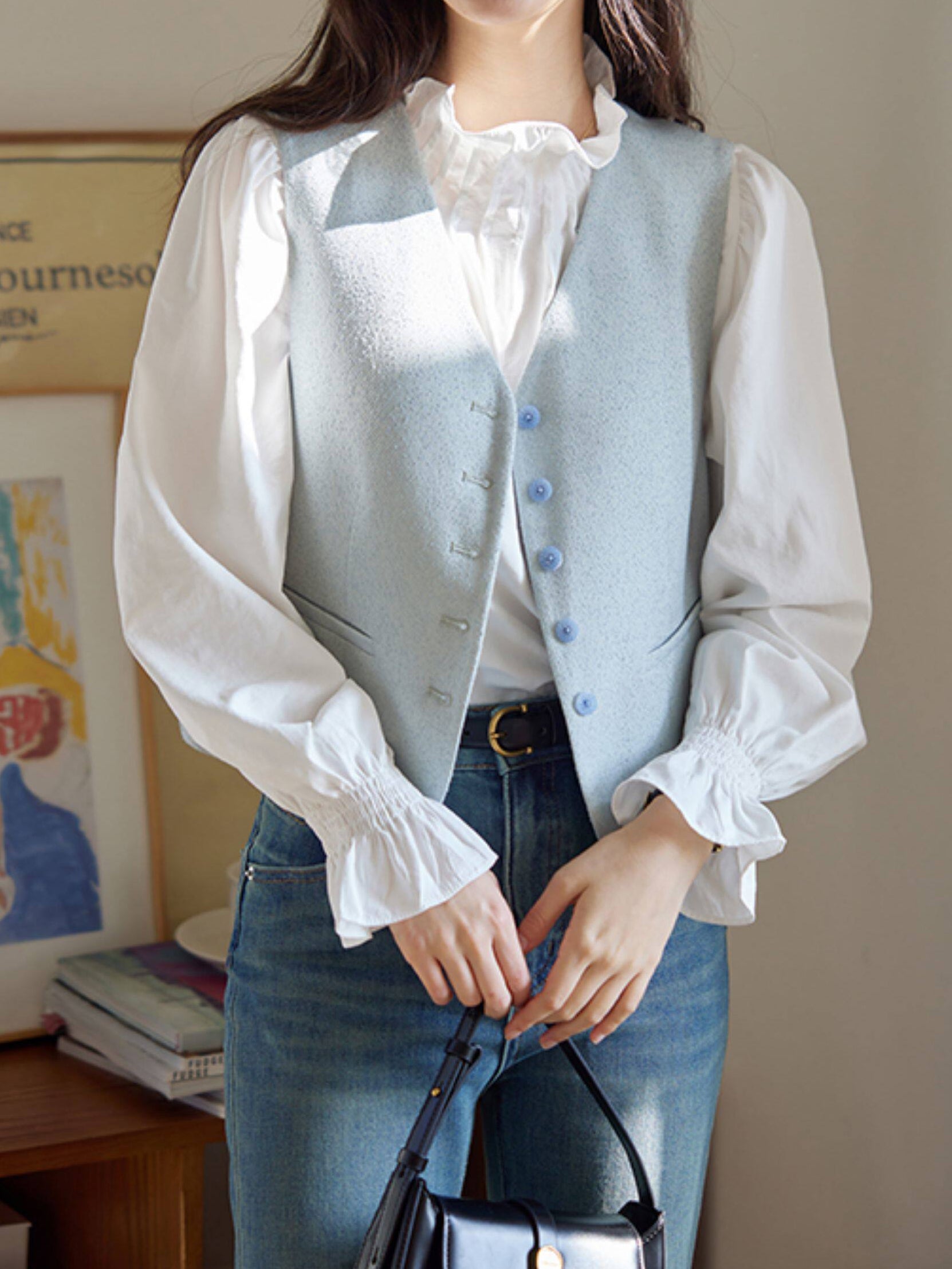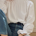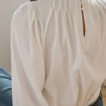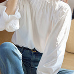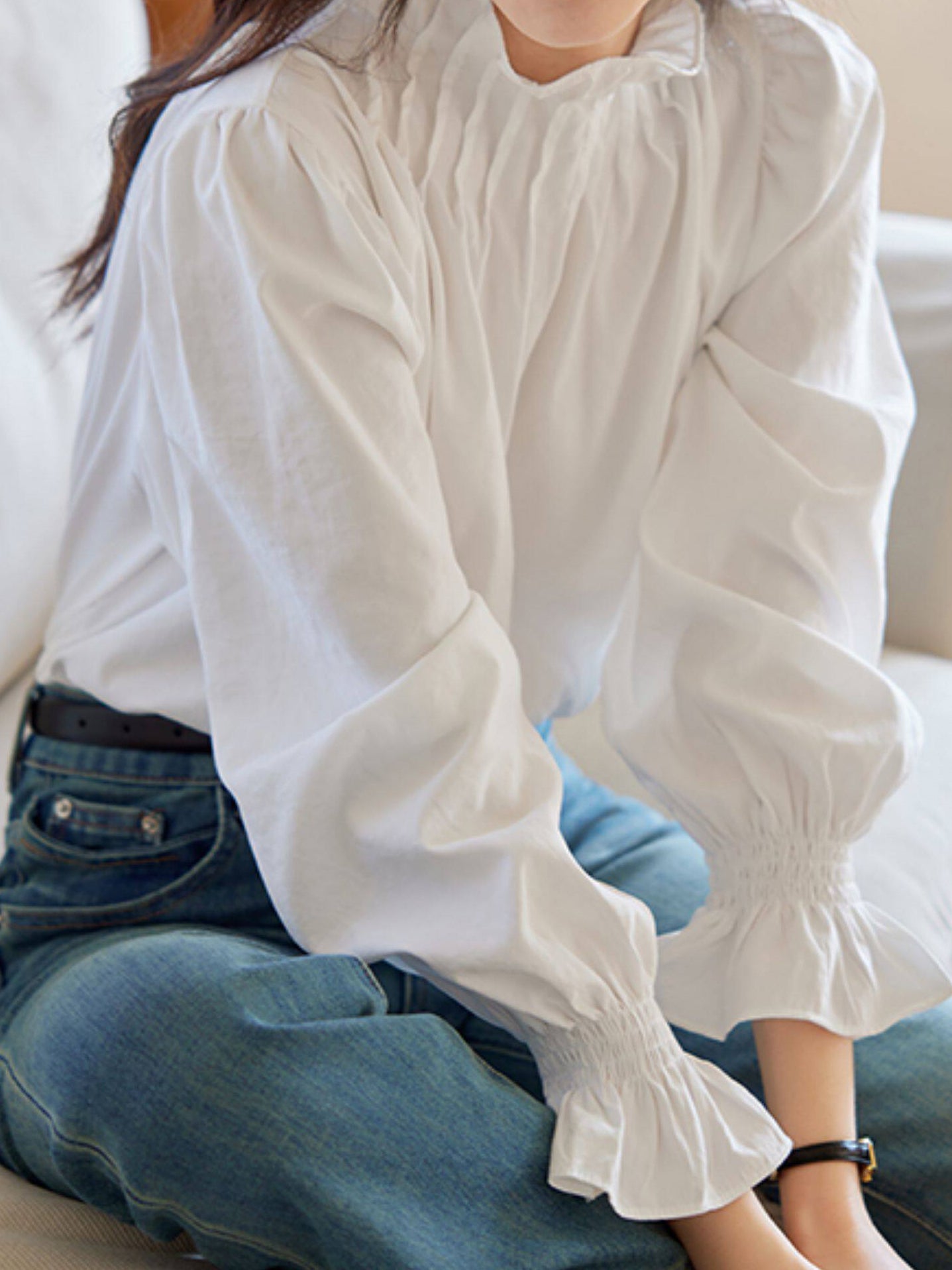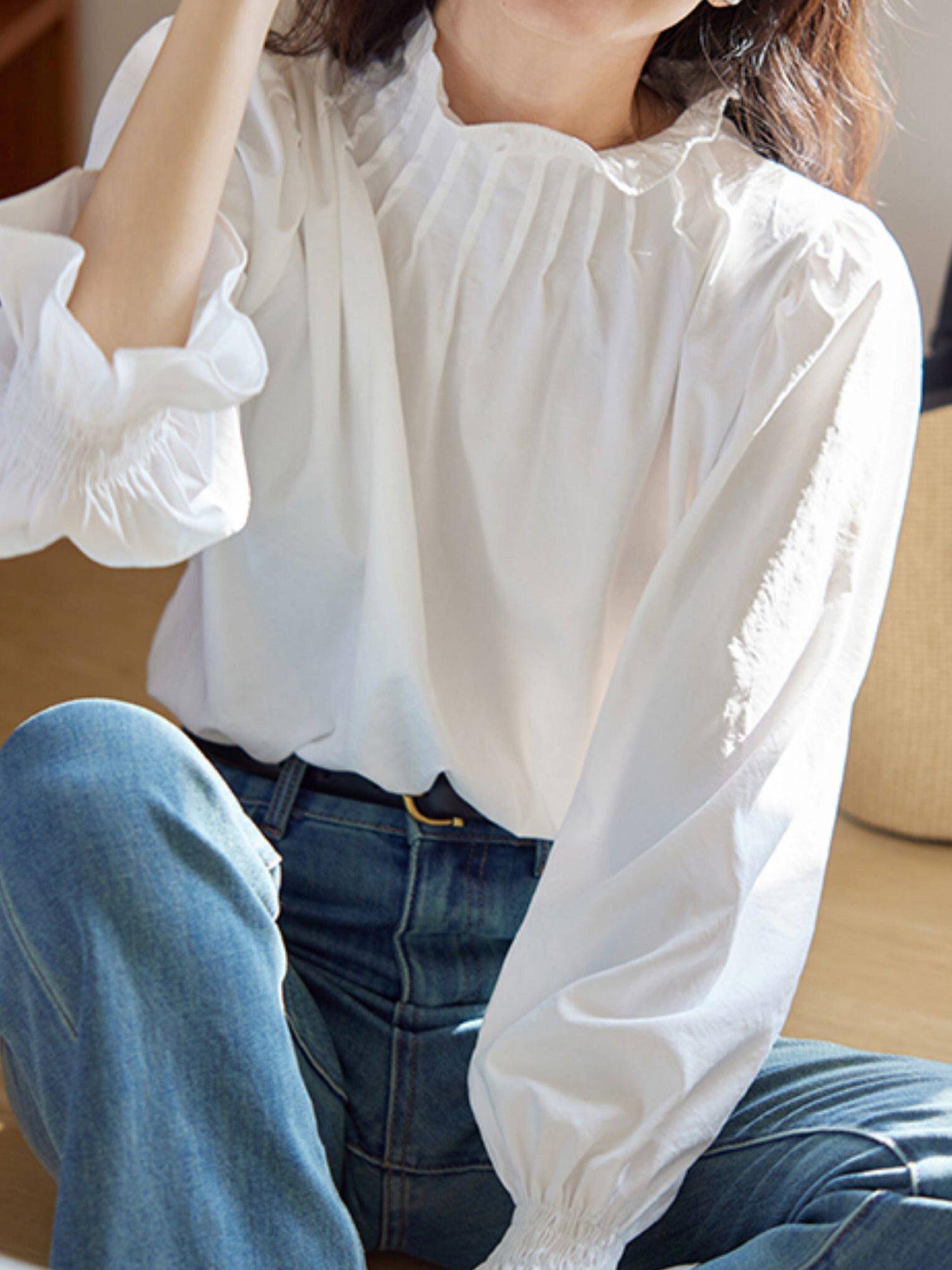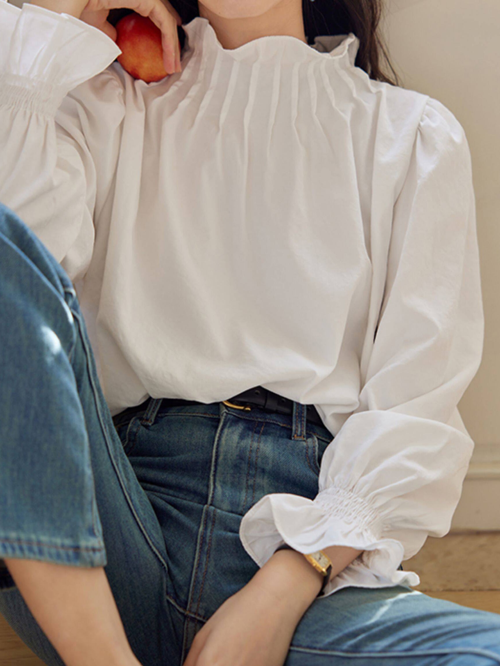 フロントのピンタックとボリュームのある袖が華やかさをプラスしてくれます。