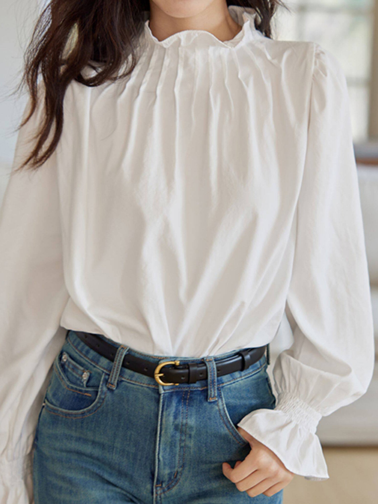 エレガントなスタイルを楽しめるピンタックブラウス。