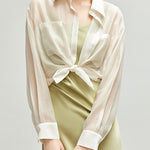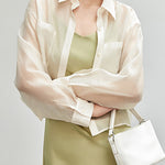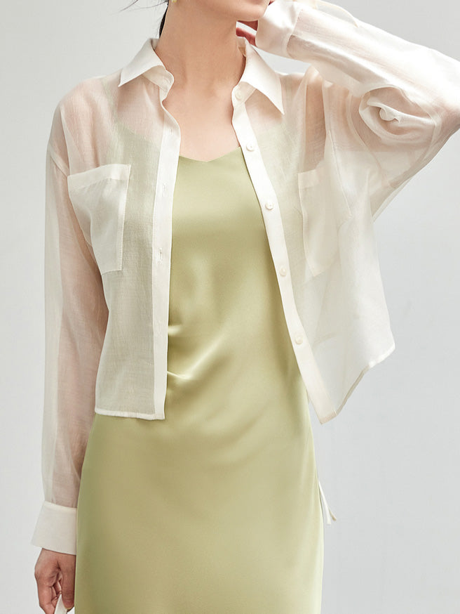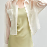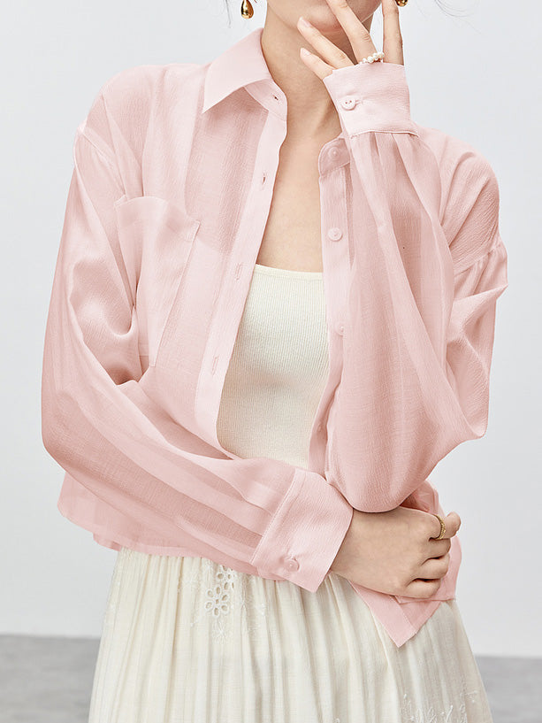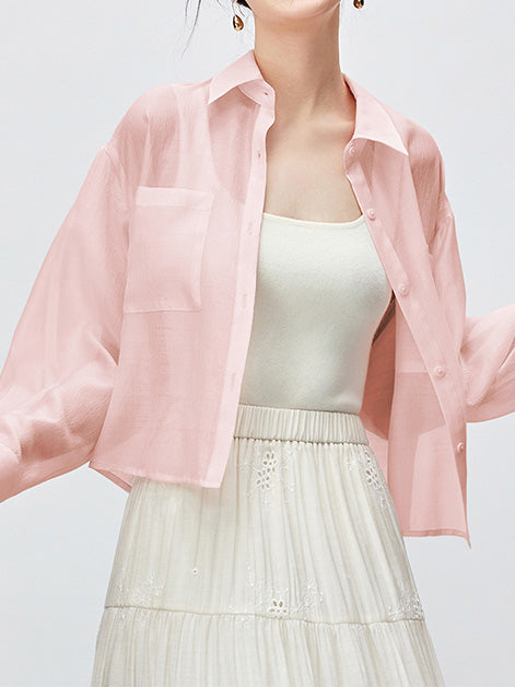 A sheer shirt that can be worn in a mature way without being too sweet.