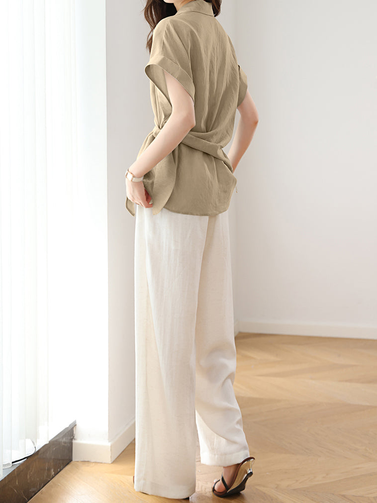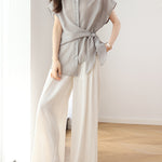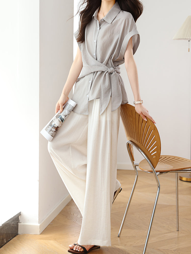 Side knotty wrap shirt, 2 colors available <suitable for set-up>