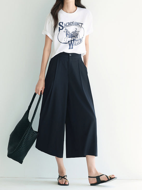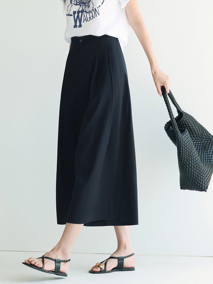 ☆The flared silhouette with tucks gives a clean look without showing the lines of your legs.