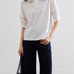 クラシックな襟付きデザインを、トレンドライクなディテールで現代的にアップデートしました。