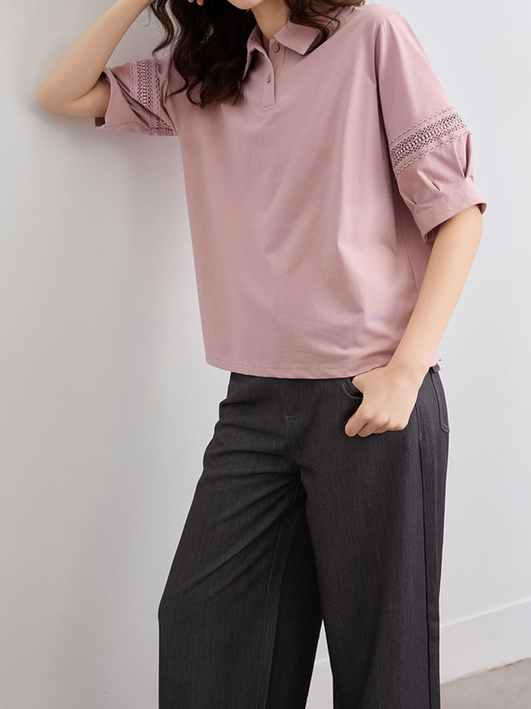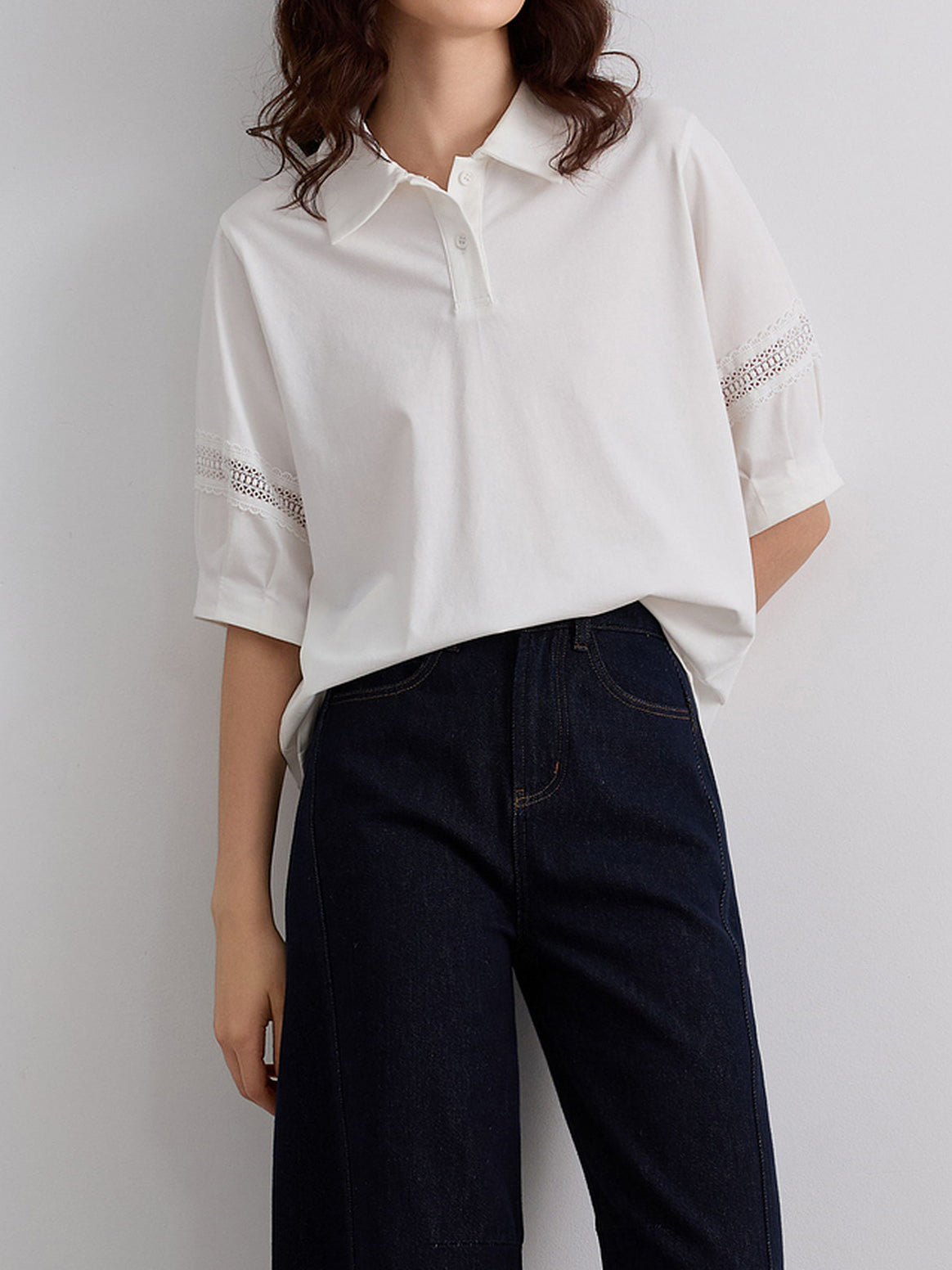 カットワークレースドッキングポロシャツ 2色入