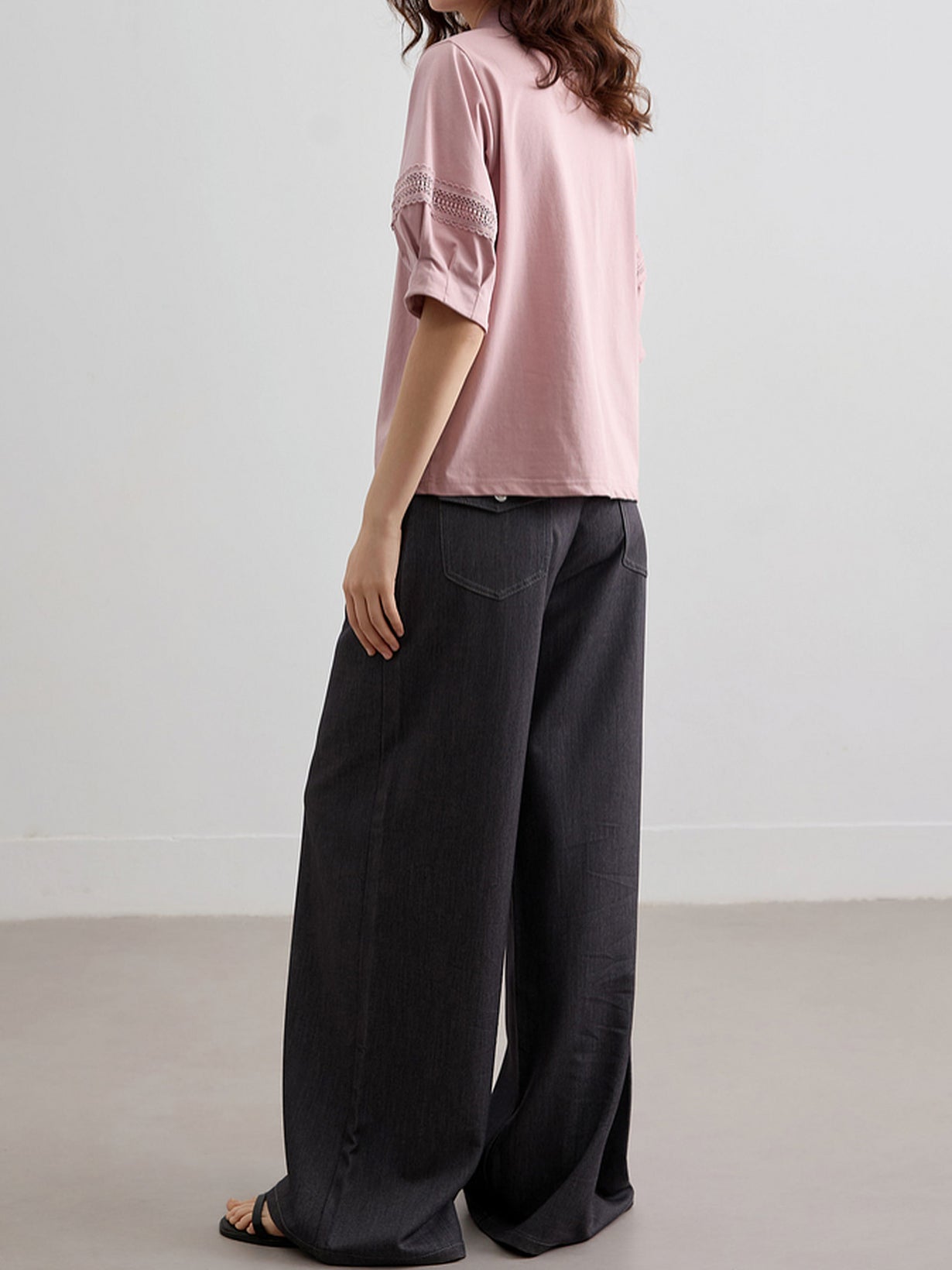 ☆袖に繊細なデザインのカットワークレースをドッキングされ、スタイリングを上品にアップデートしてくれます。