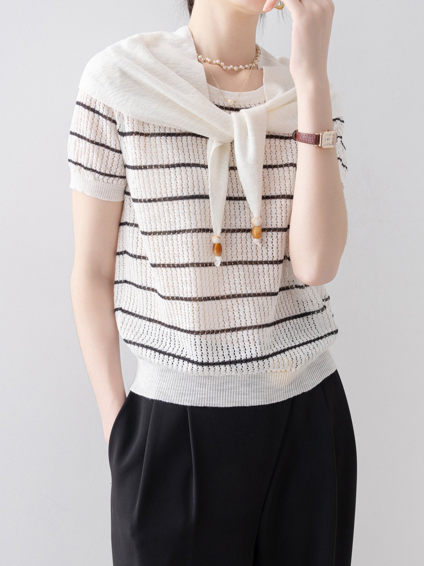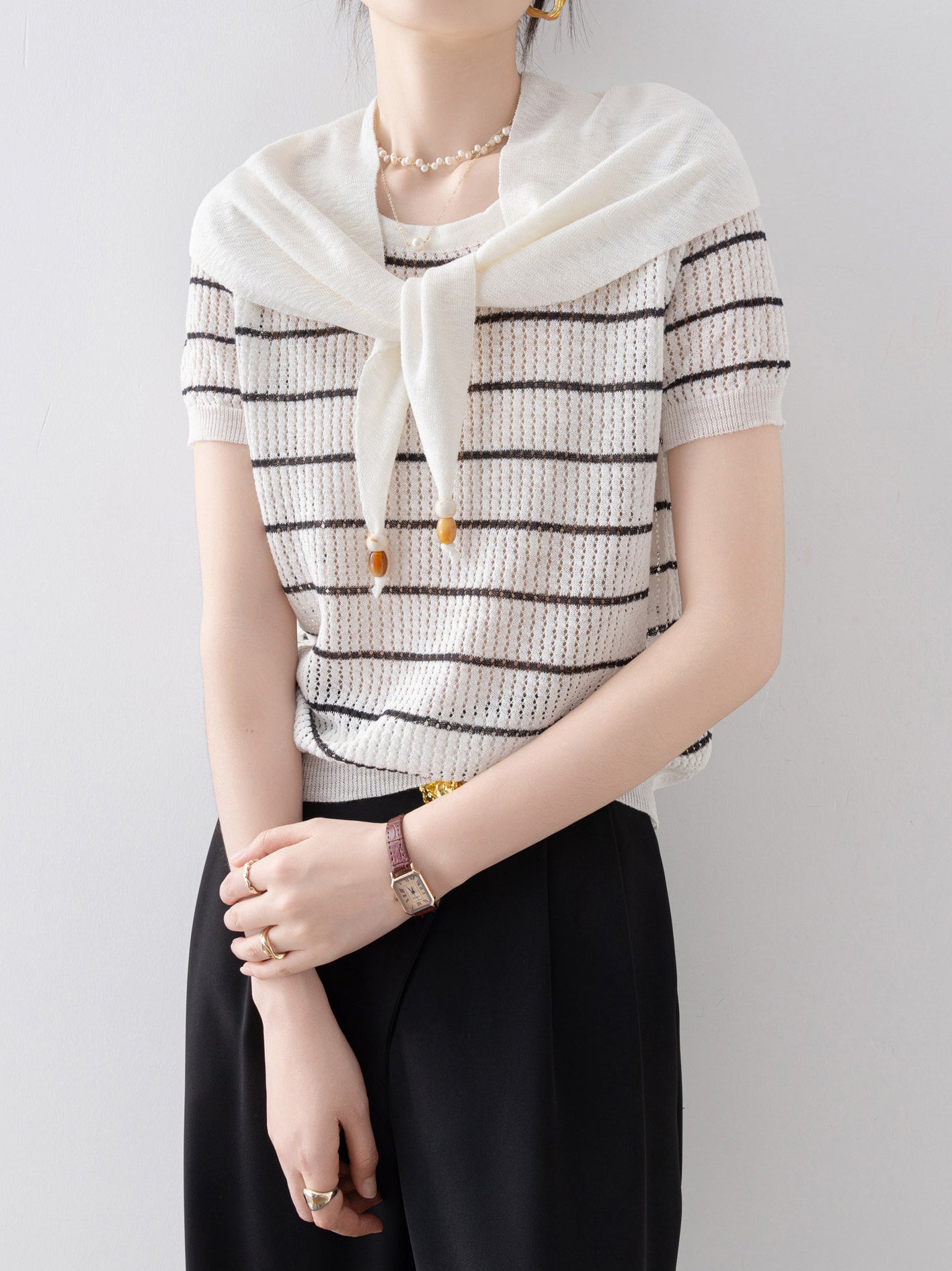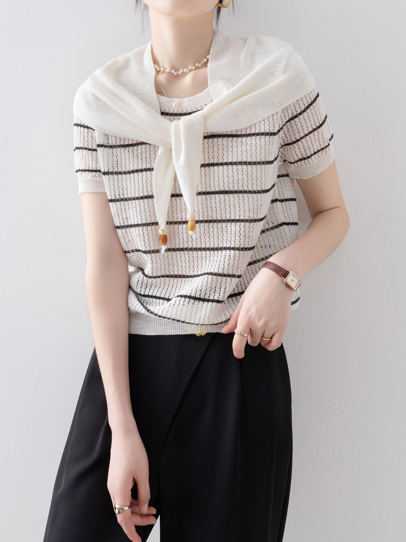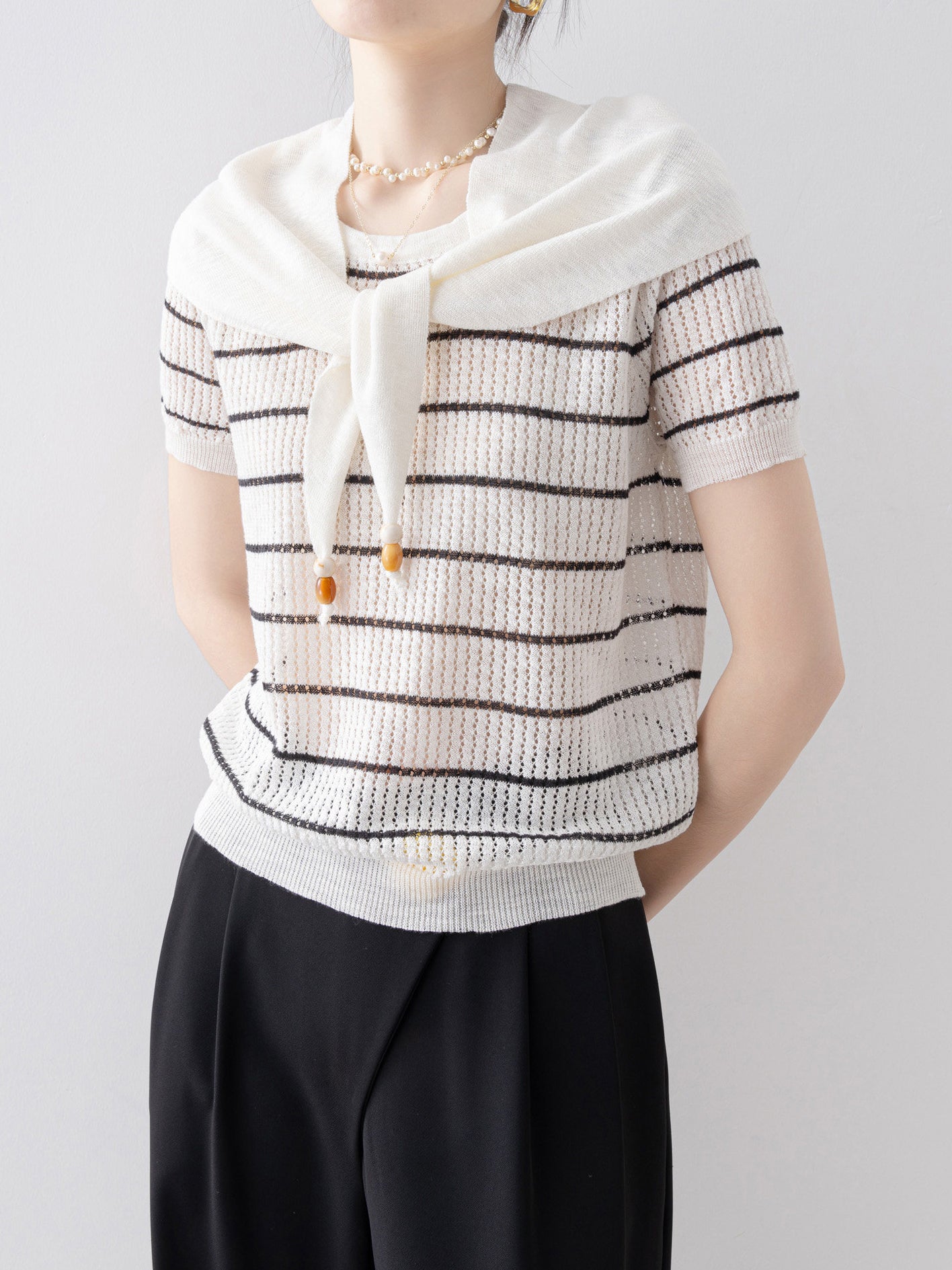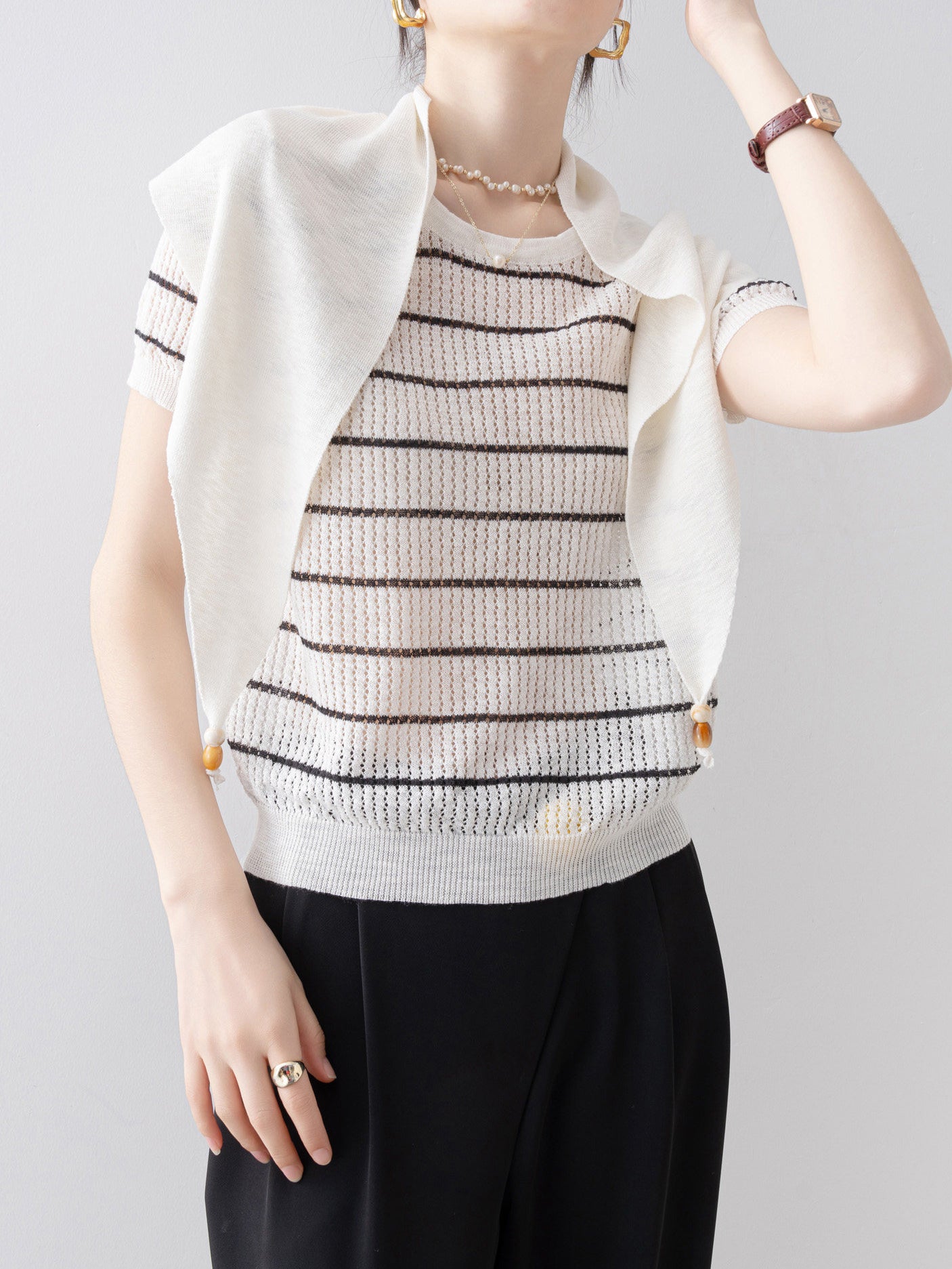 ☆程よく透け感のある編み地が、春夏の装いに抜け感をプラスします。