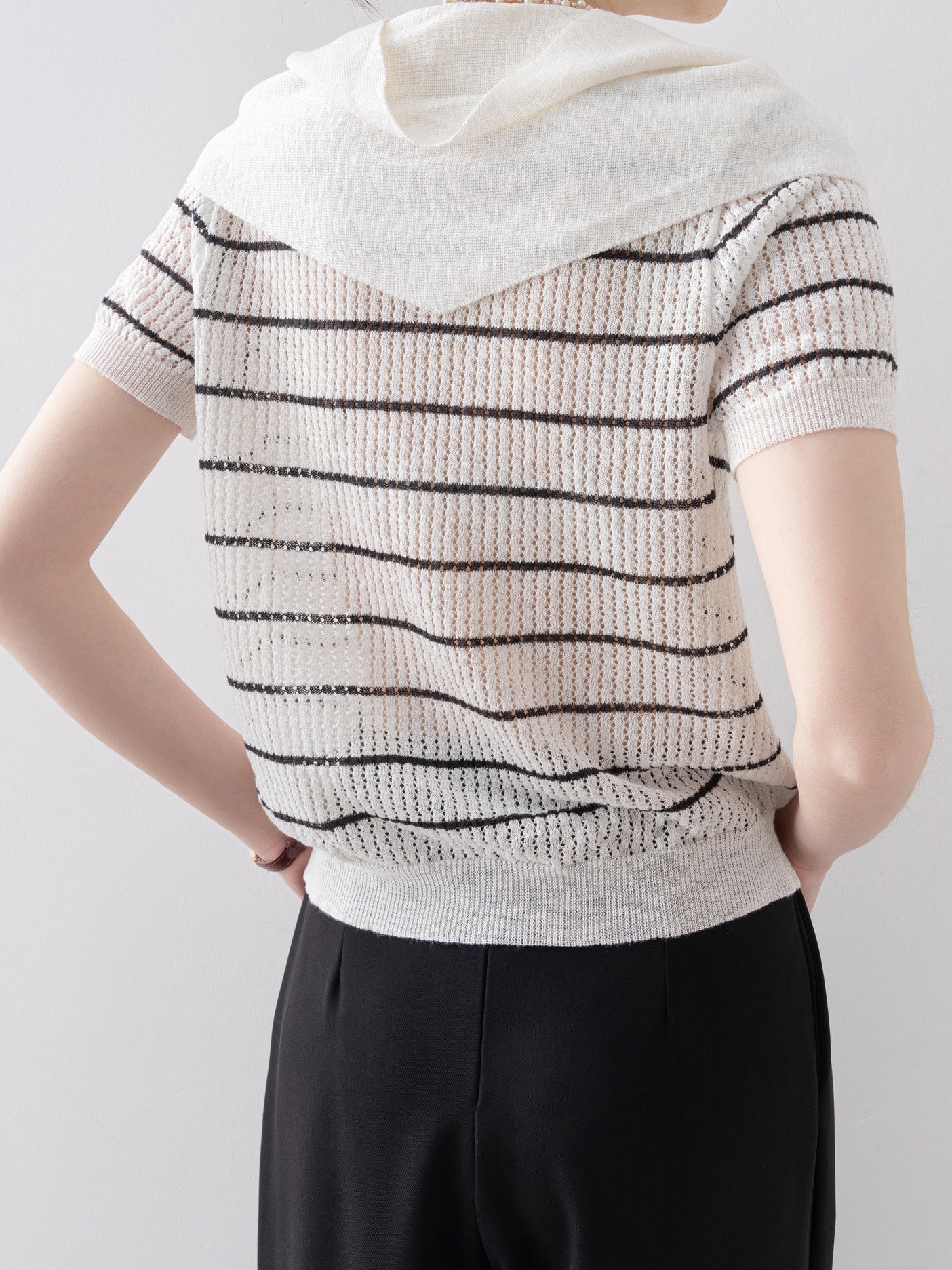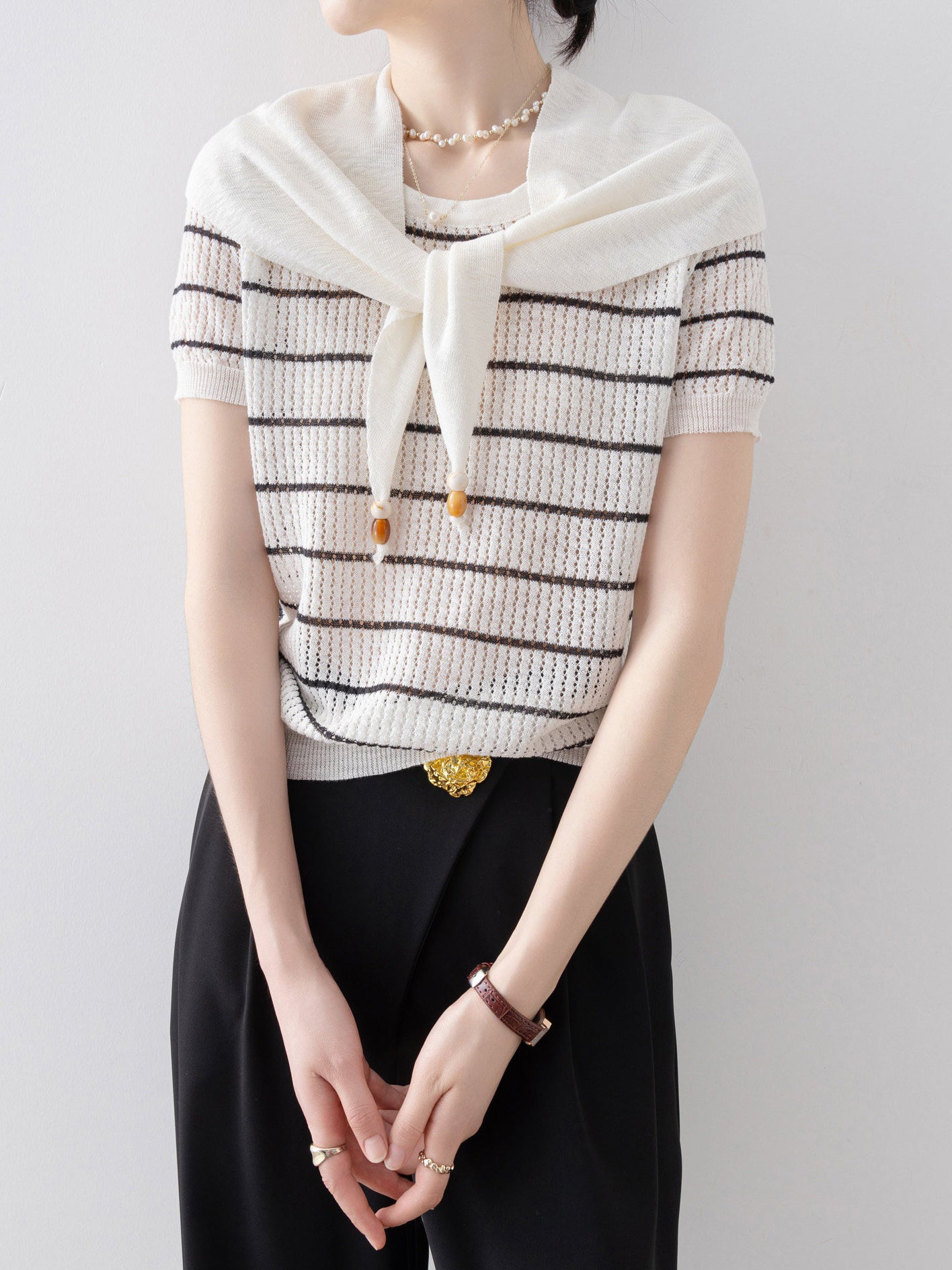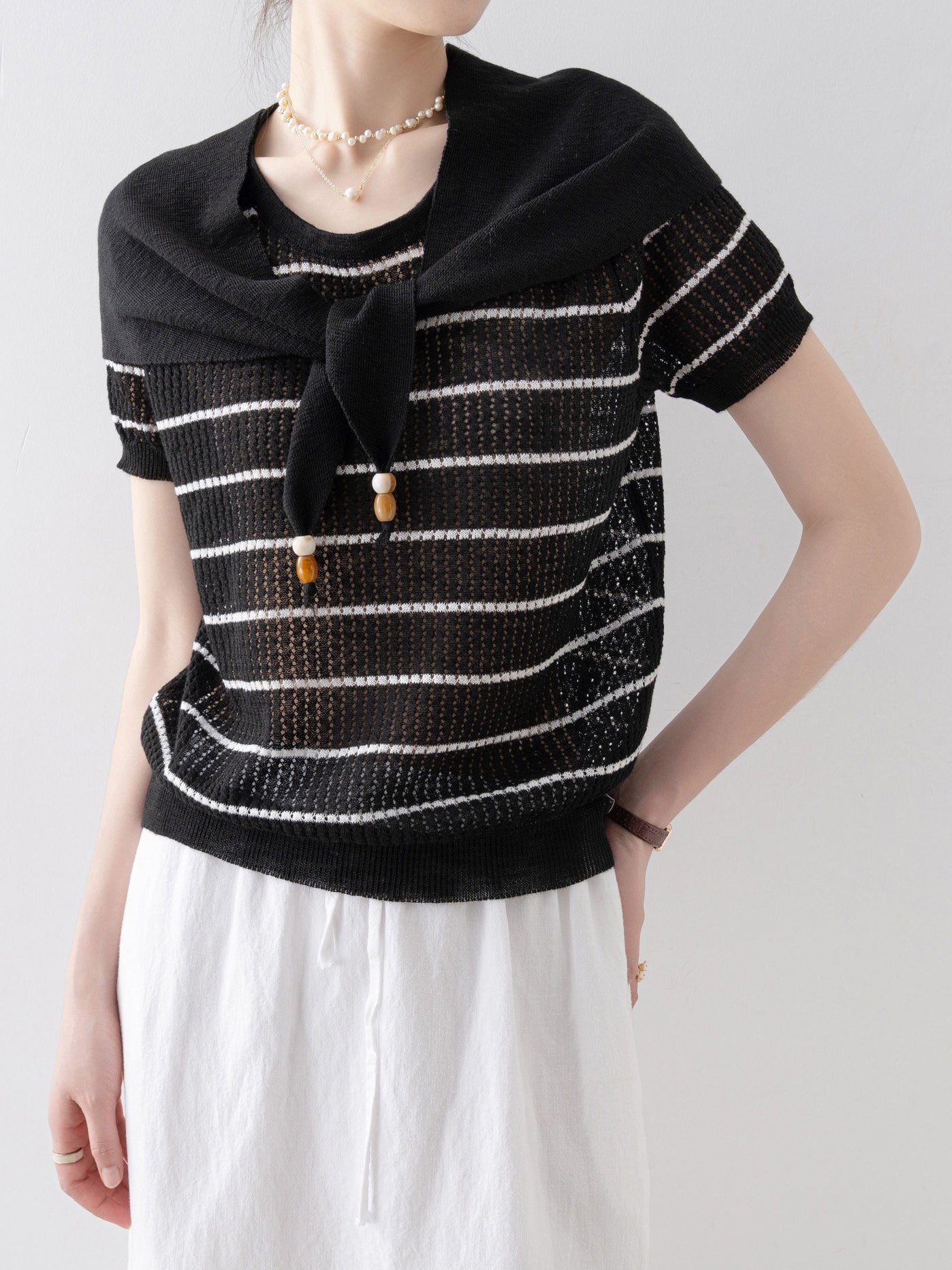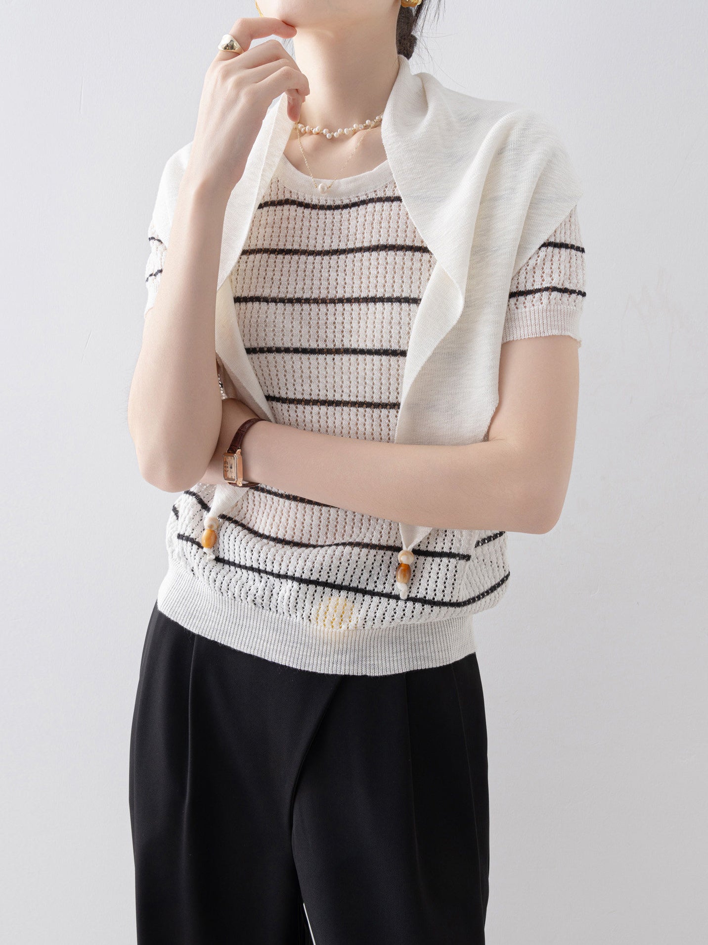 ☆程よく透け感のある編み地が、春夏の装いに抜け感をプラスします。