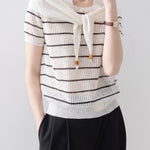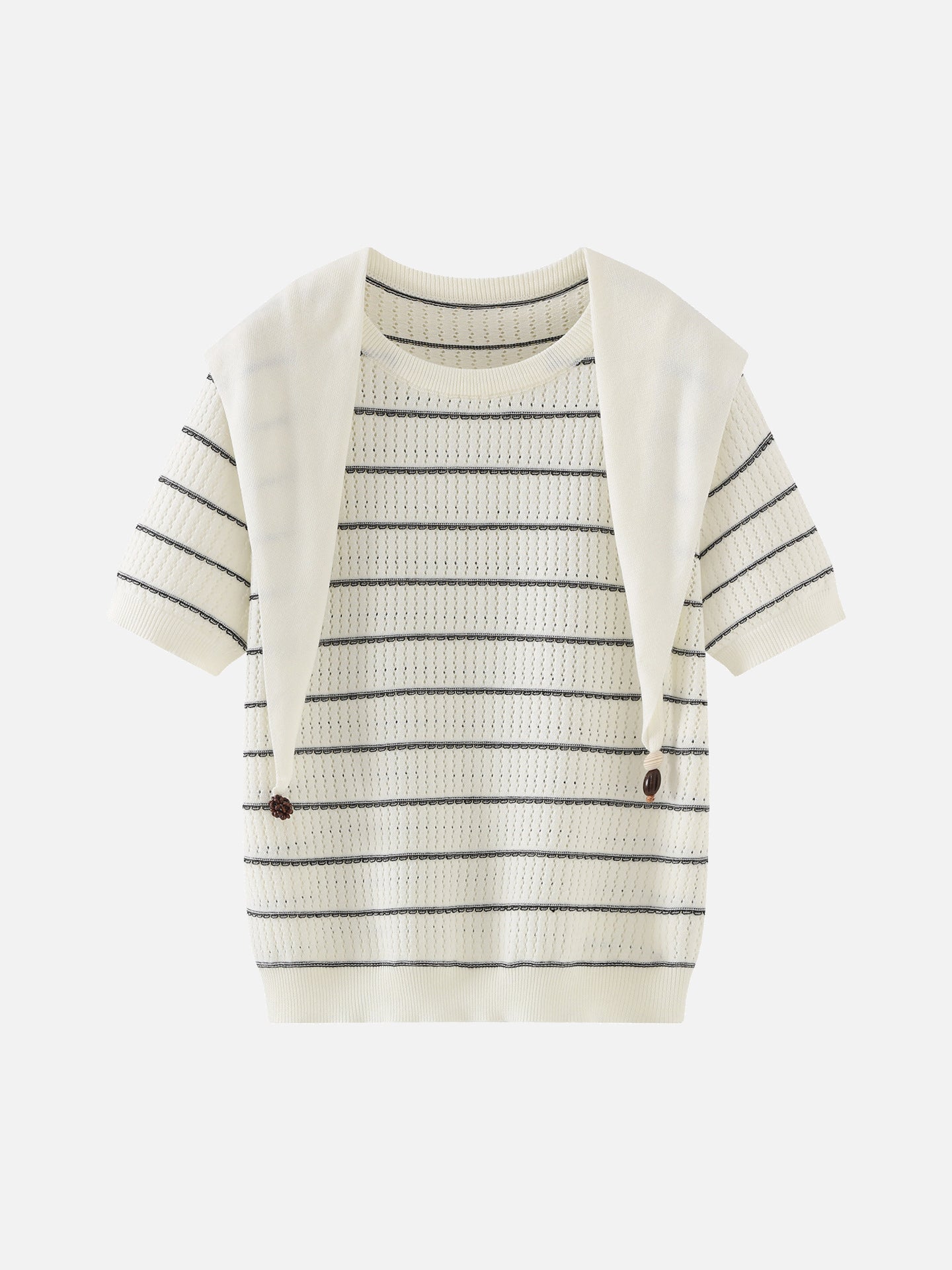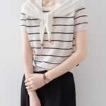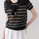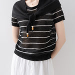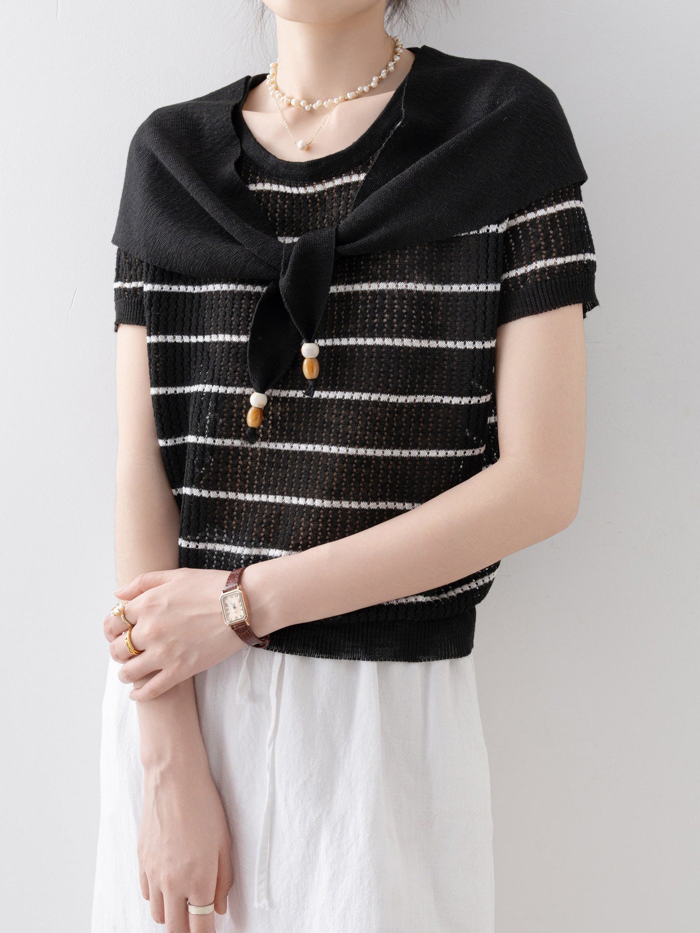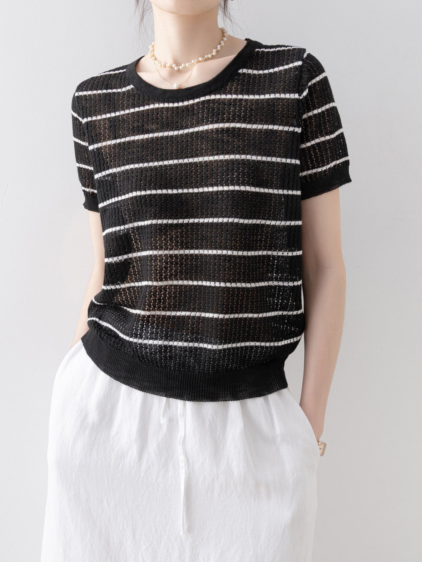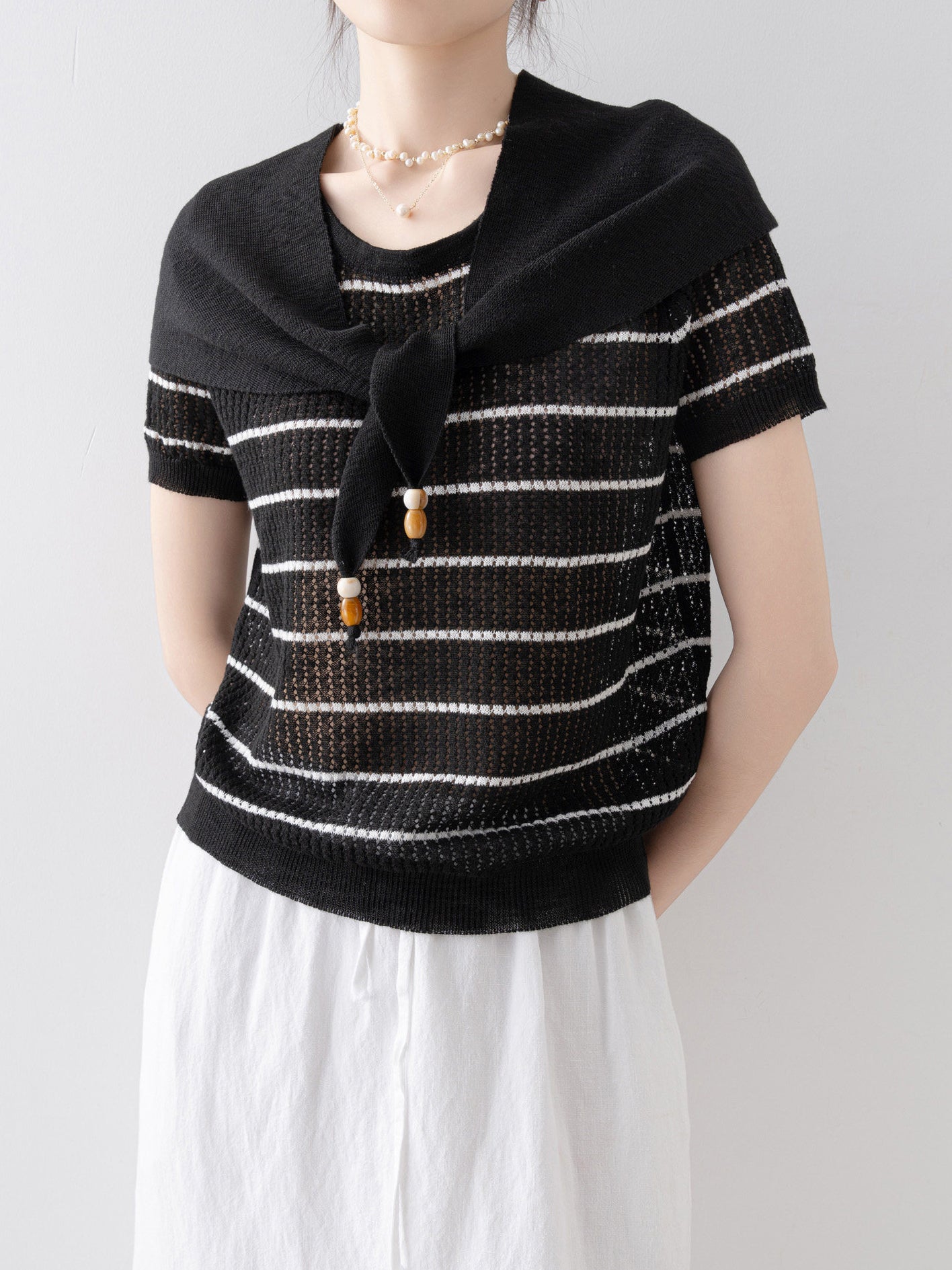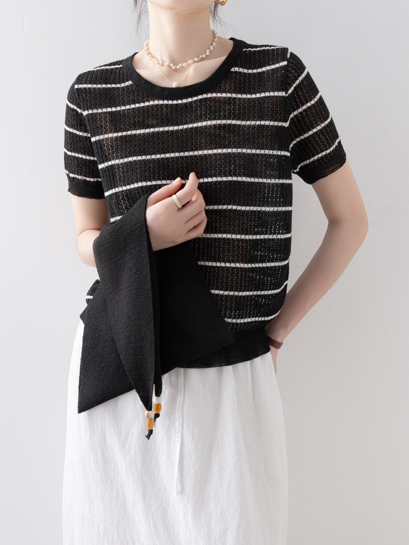 ☆程よく透け感のある編み地が、春夏の装いに抜け感をプラスします。