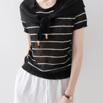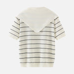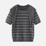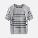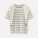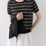 シンプルながらも着映えるパネルボーダーが印象的なニット。