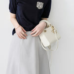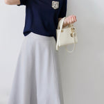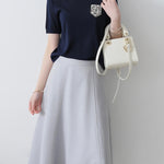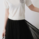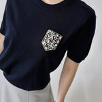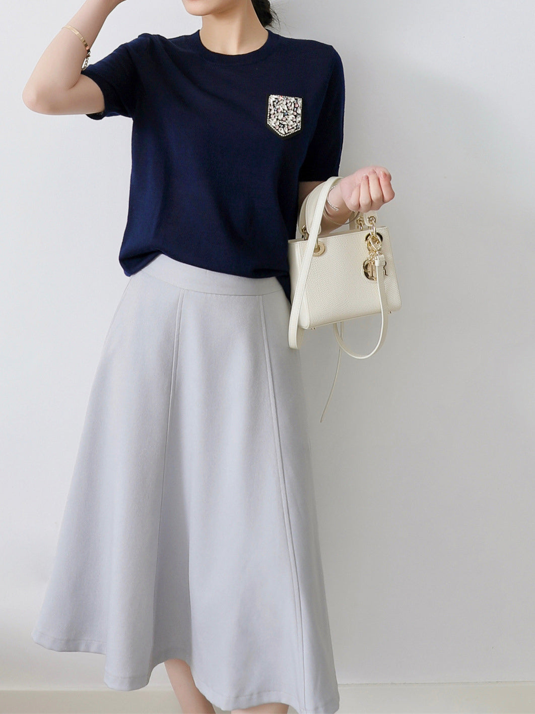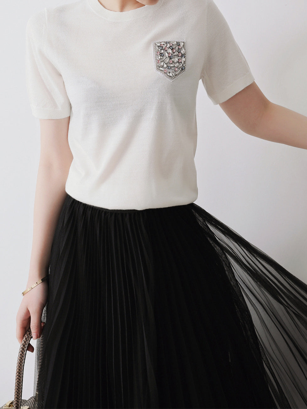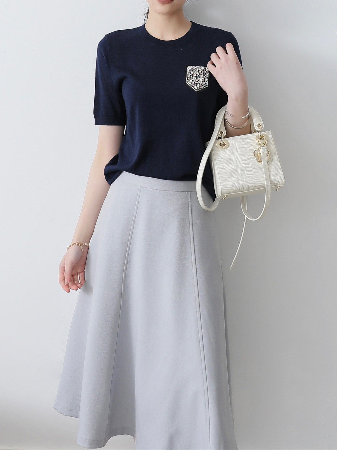 ホームベース型ビーズ飾り半袖ニット 2色入