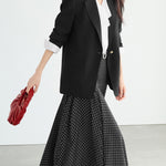 ・足元はパンプスやブーツで、大人っぽくまとめるのがおすすめです。