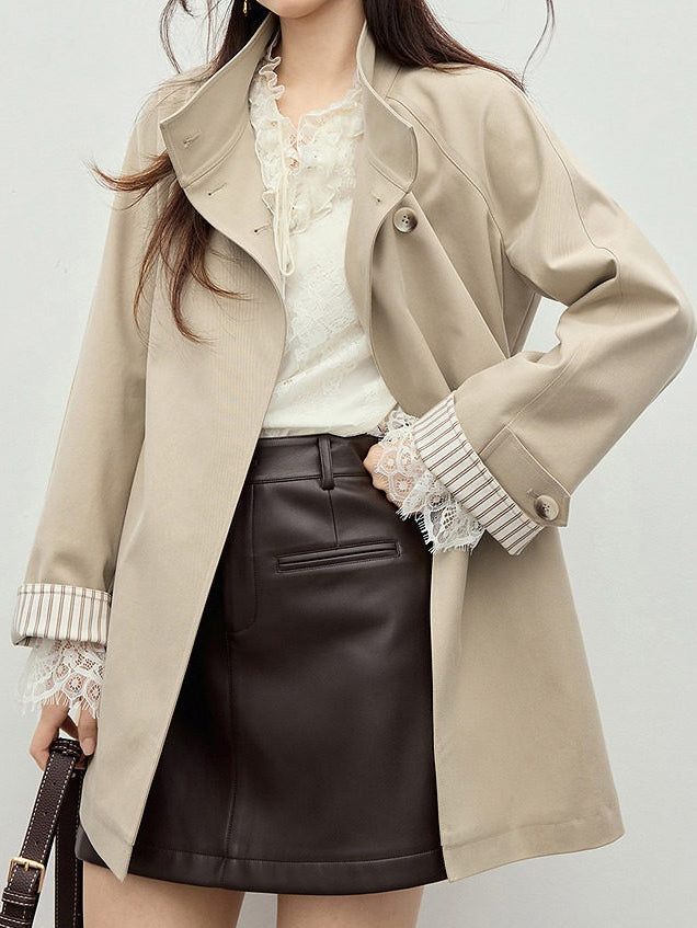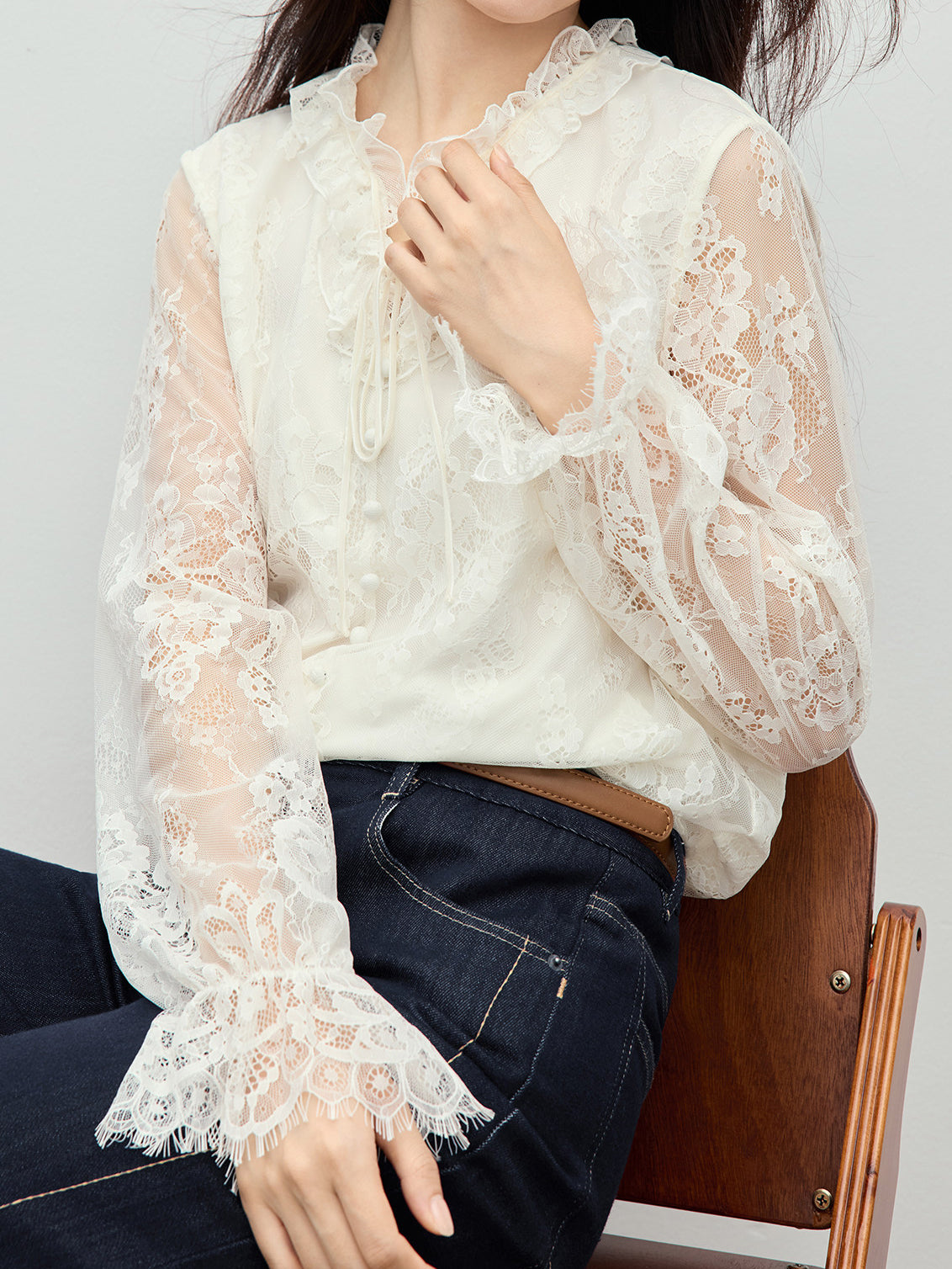 フリル襟のデザインが、シンプルなコーディネートに華やかさをプラスし、アクセサリーを使わずとも存在感を発揮します。
