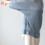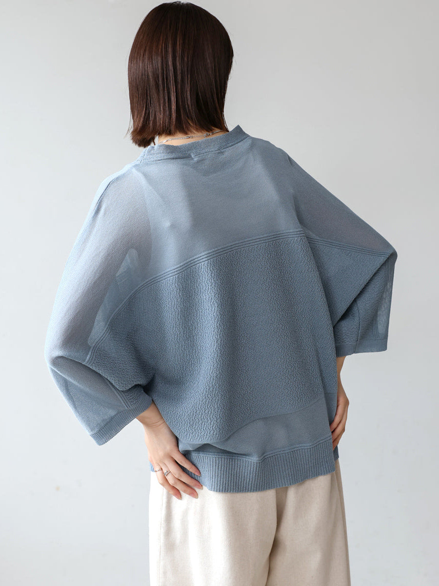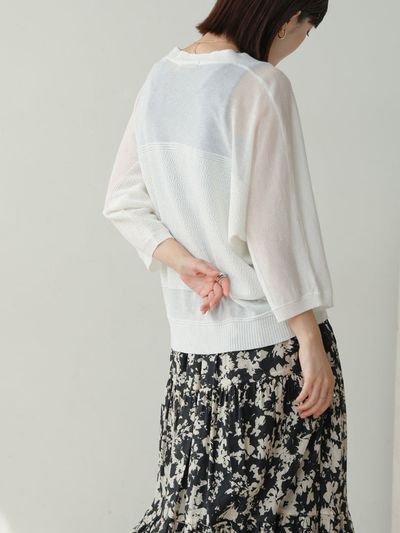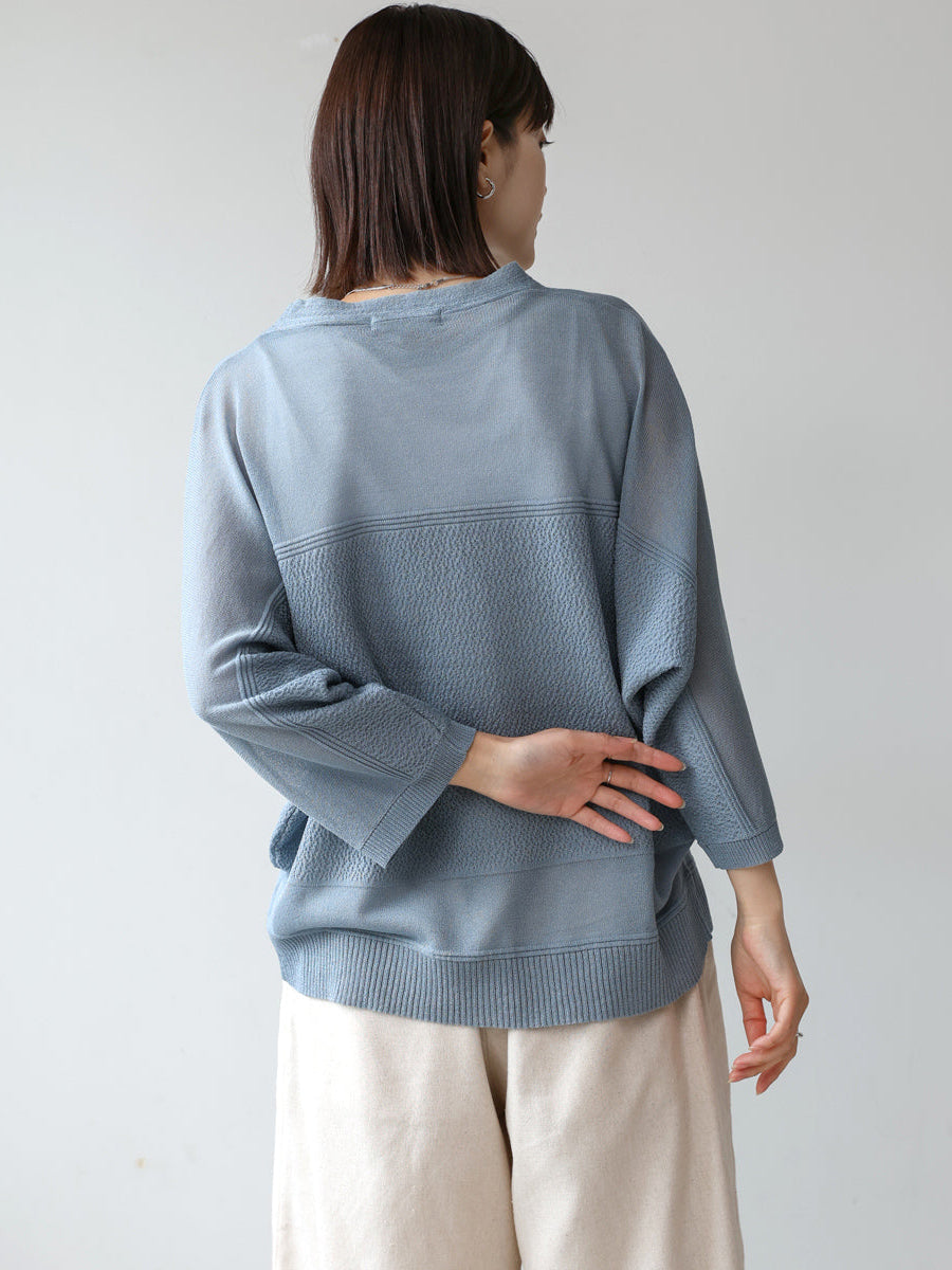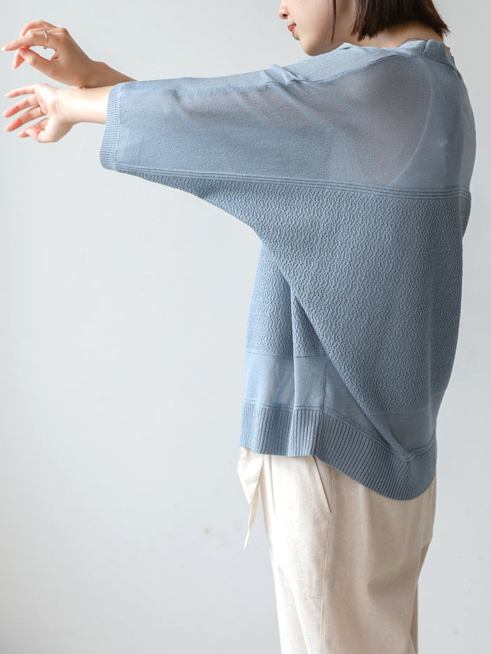 シャリのある強撚糸で編んだ夏にぴったりのサラサラニットです。