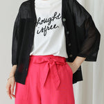 1枚でボタン止めても羽織としても着回し抜群なカーディガン。