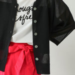 また、あえてデニムやチノパン、ショートパンツなどカジュアルなボトムスと合わせるのも可愛い!