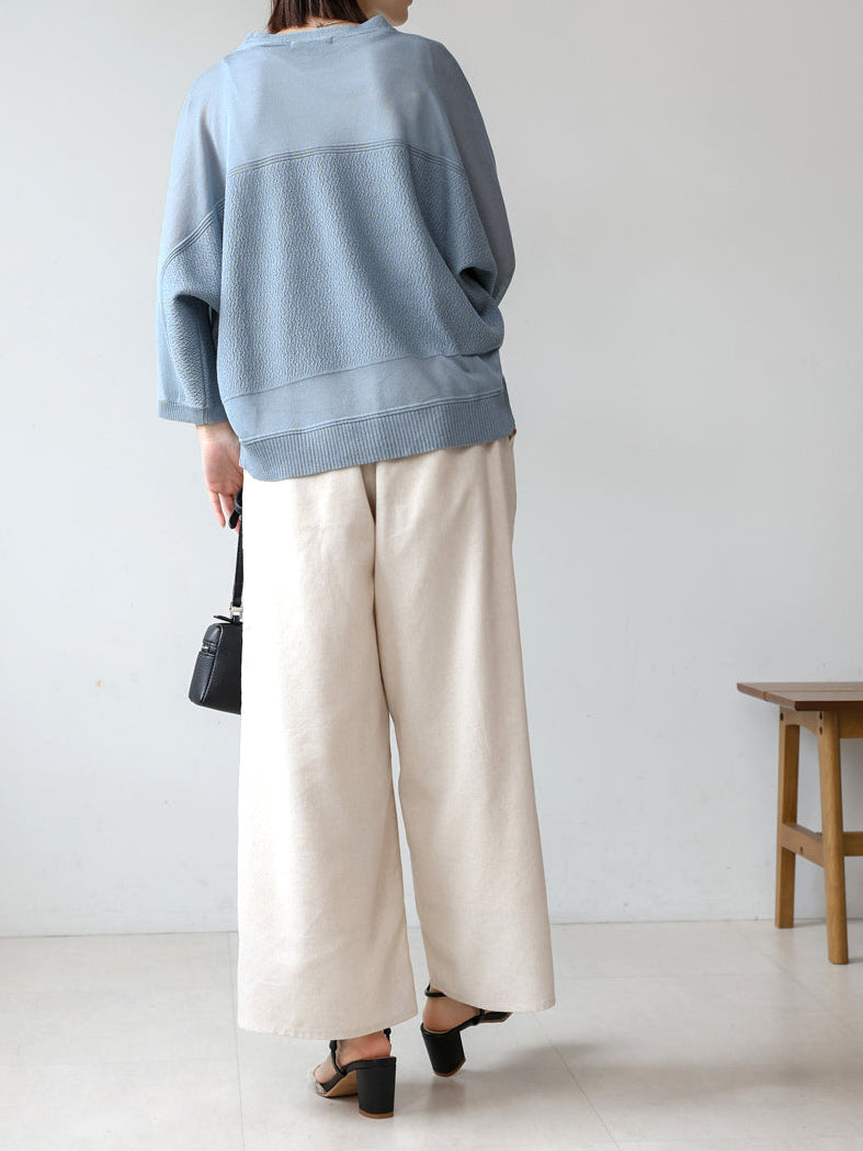 ドライ感のある梨地編みと鹿の子編みのコンビで肌離れがよく、蒸し暑い日にもさらっとノンストレスでお召し頂けます。