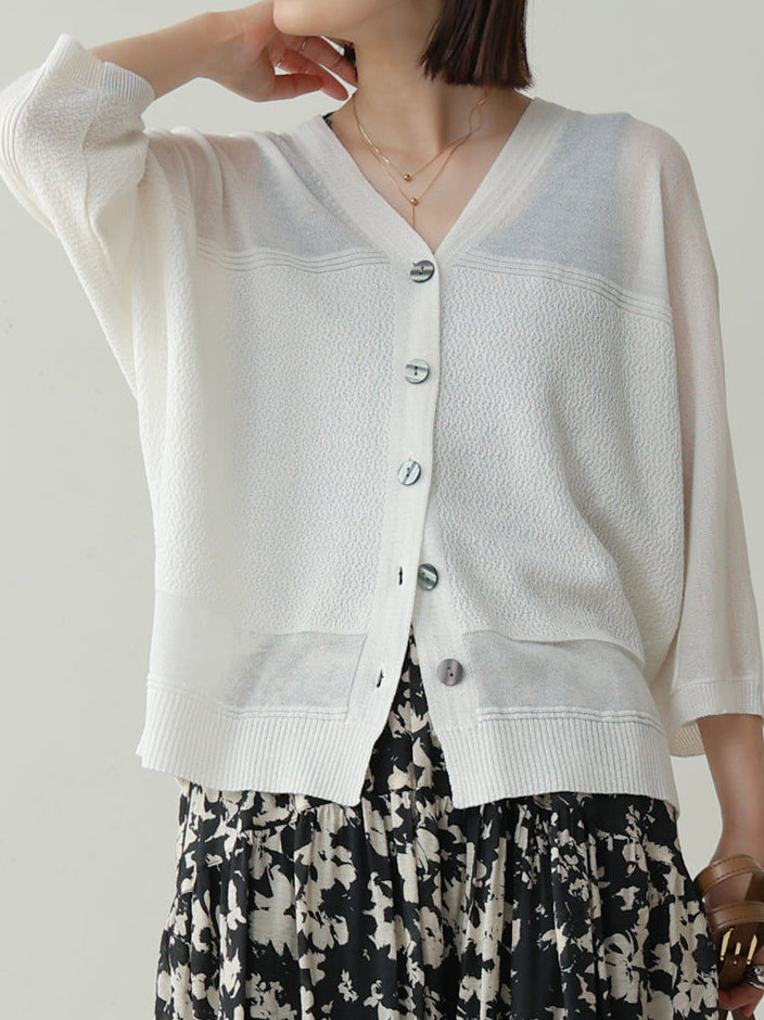 【編み方で変化をつけた夏の定番にしたいドルマンカーディガン】