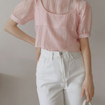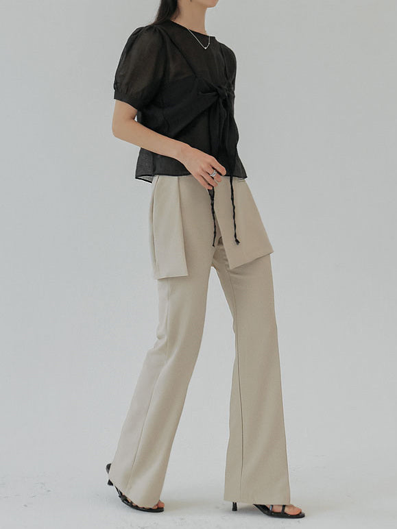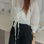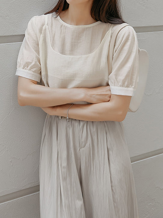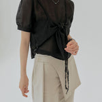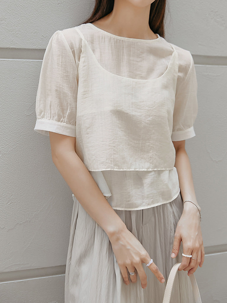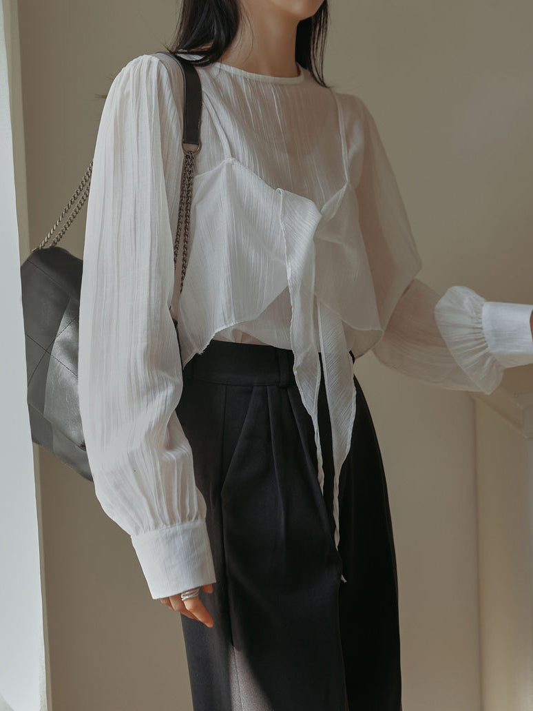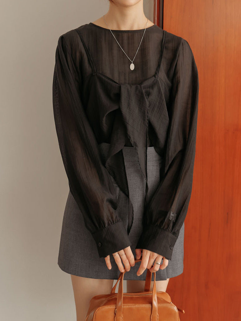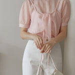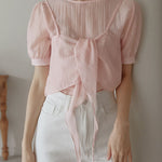 前後2WAYリボンビスチェ+楊柳ブラウスアンサンブル 5色入