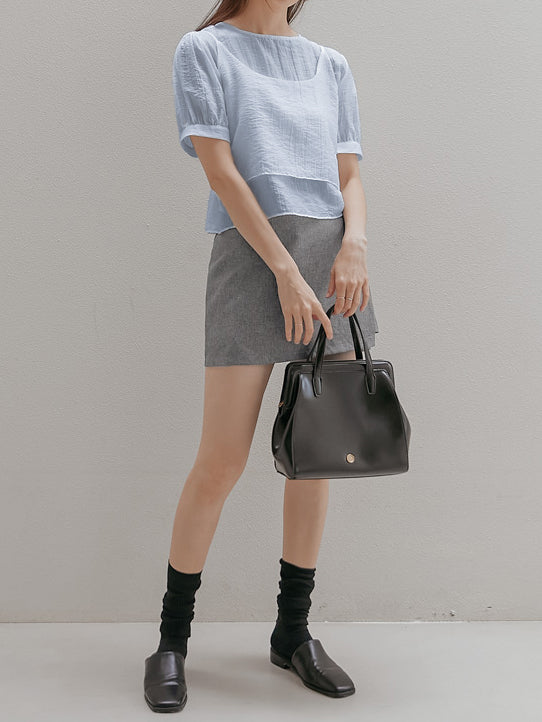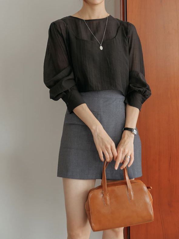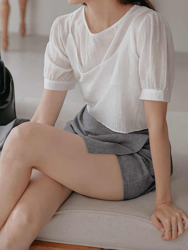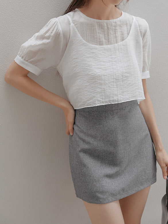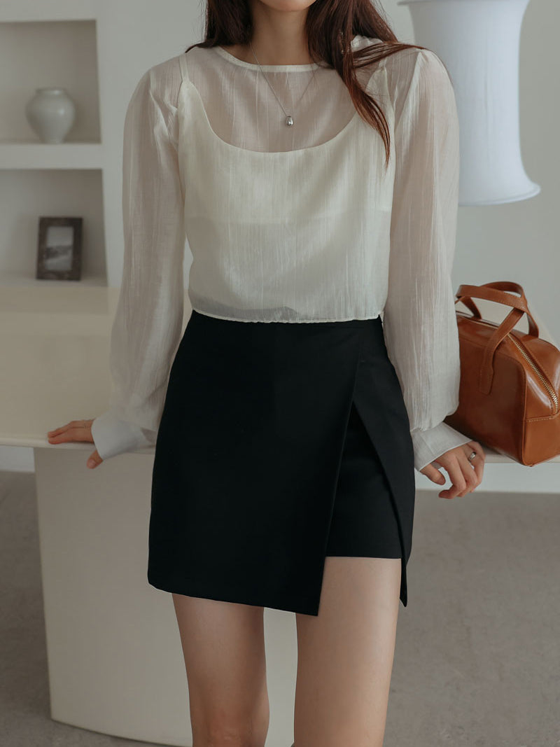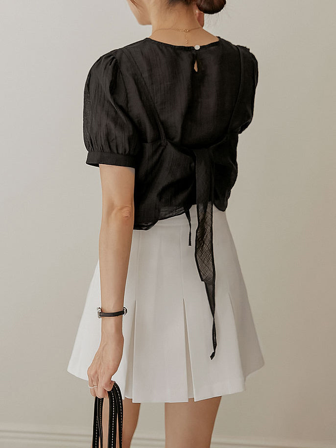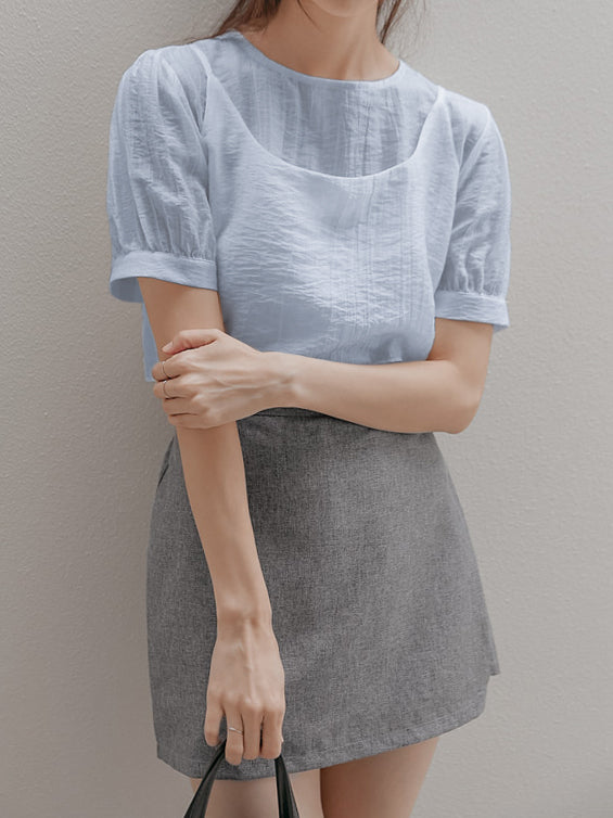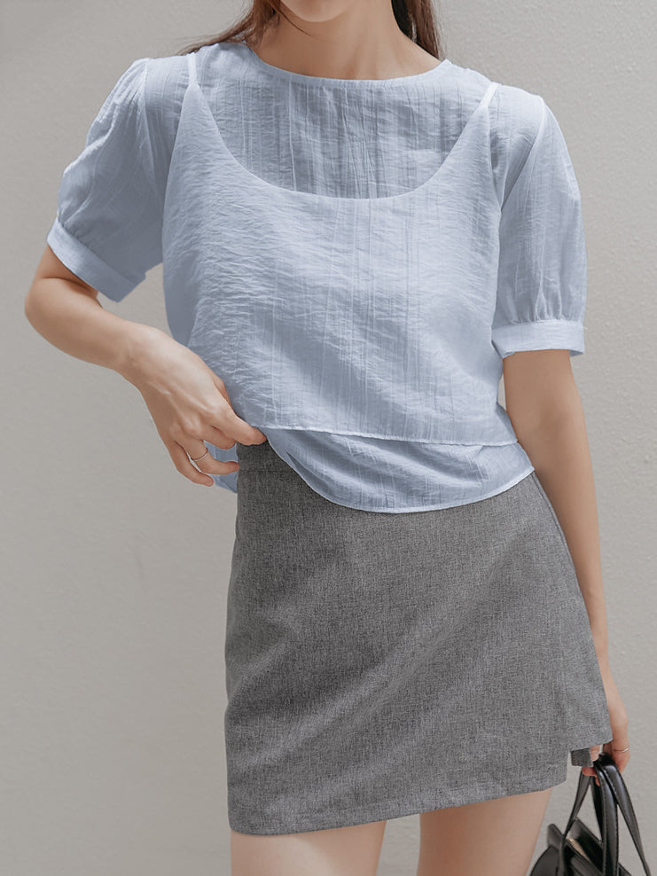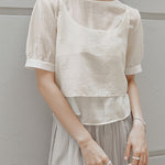 前後どちらでも着用可能なビスチェと半袖のブラウスがセットになっております。