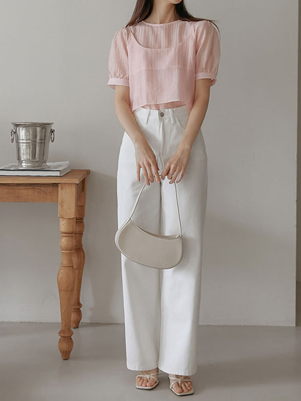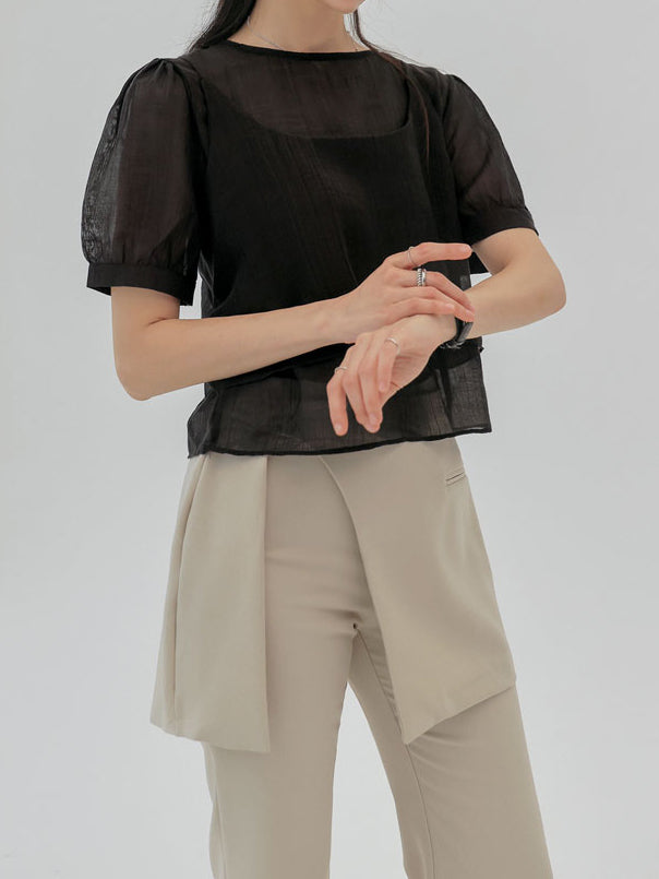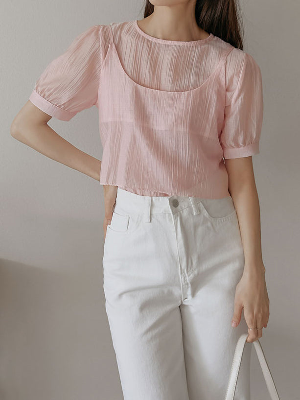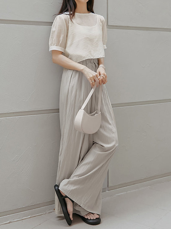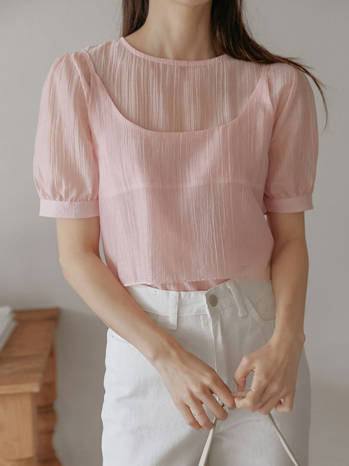 さらっとした、ナチュラルなしわ感やシアー感のある楊柳素材を使用した1枚。