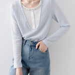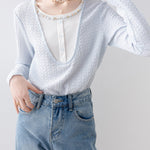 インナーと重ね着たようなデザインが特徴のカットソー。